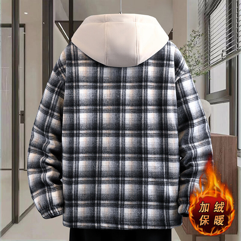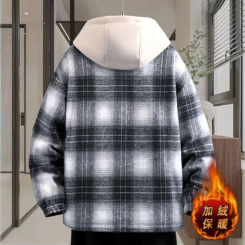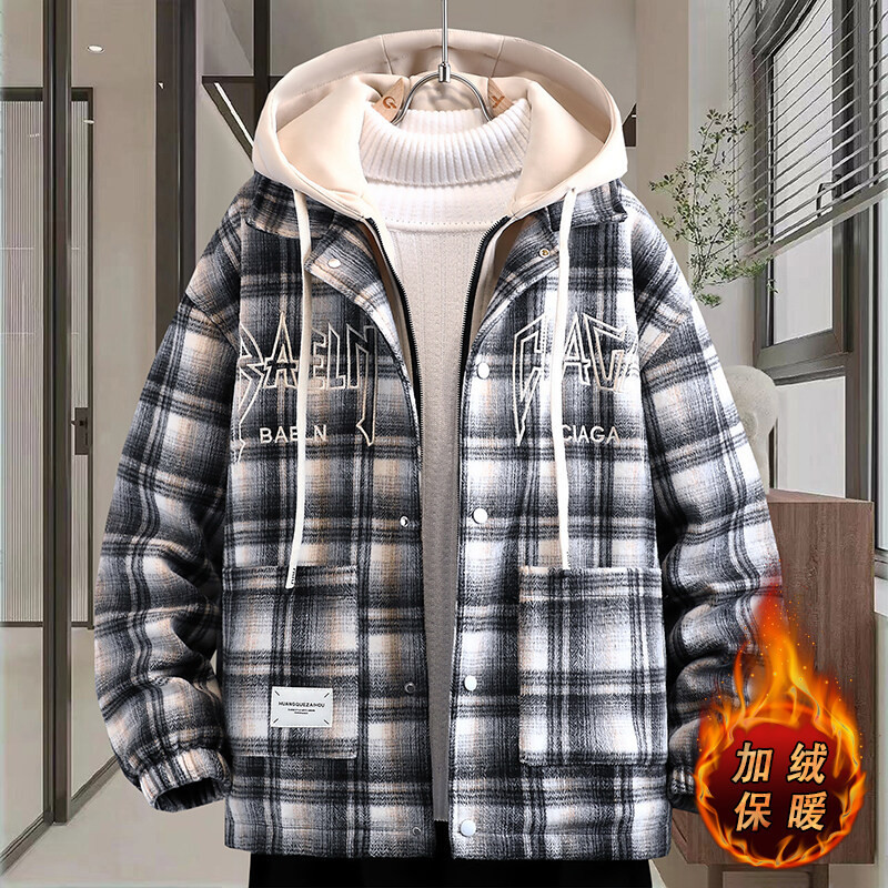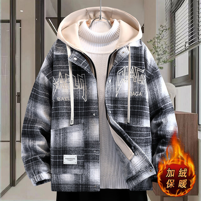 2024 осень-зима молодежная плюшевая клетчатая куртка мужского осеннего и зимнего нового старшеклассника поддельная свободная две части 1029