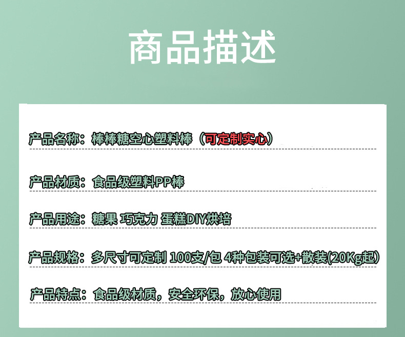Оптовые пластиковые палочки для леденцов от производителя, пищевые полые палочки, белые трубочки, полипропиленовые палочки для выпечки и рукоделия, 100 штук