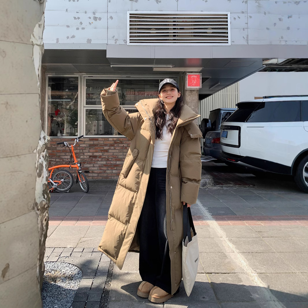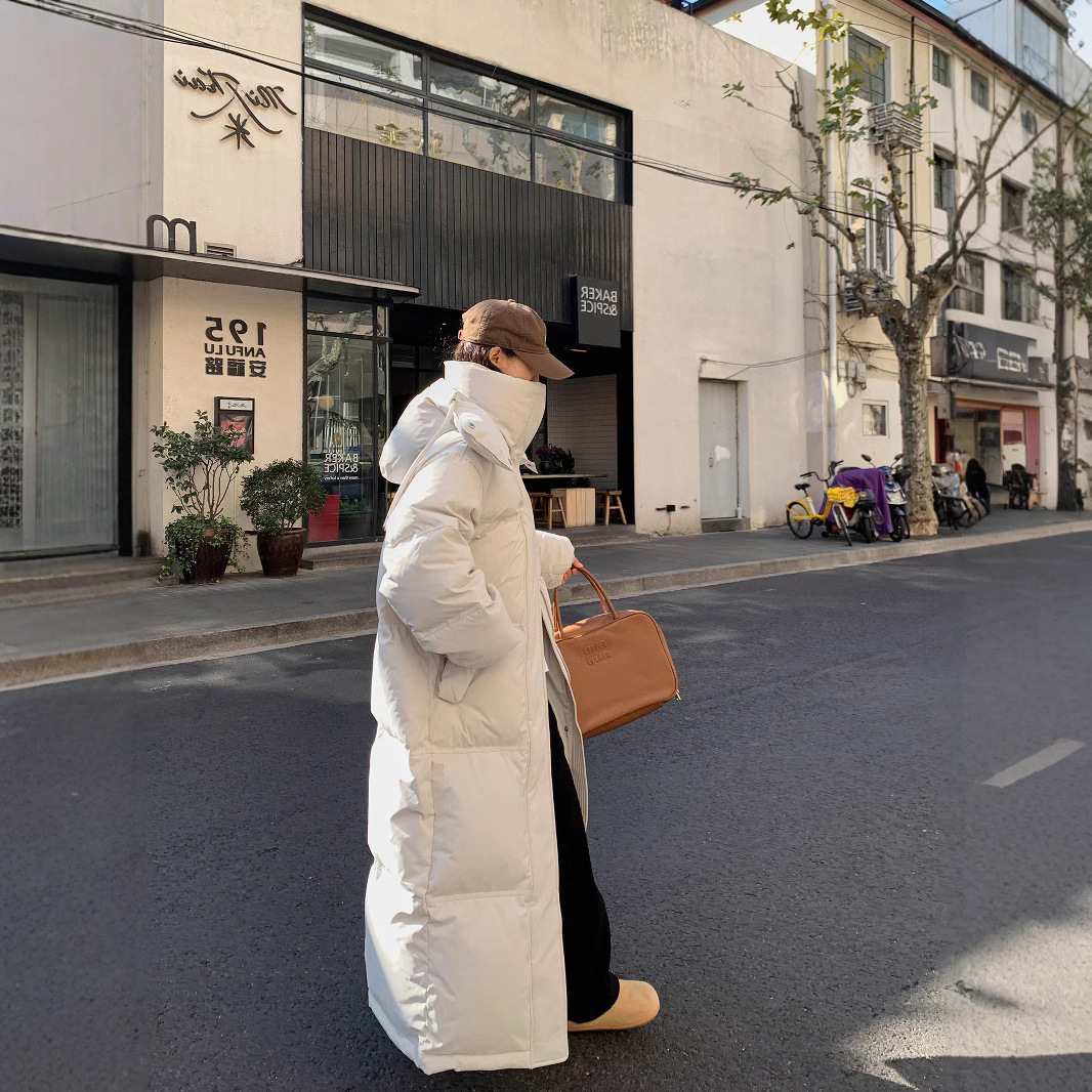 Удлиненный женский пуховик на белом утином пуху, зима 2025, новая длинная утолщенная куртка длиной до колена до щиколотки, экстремально холодная утолщенная куртка