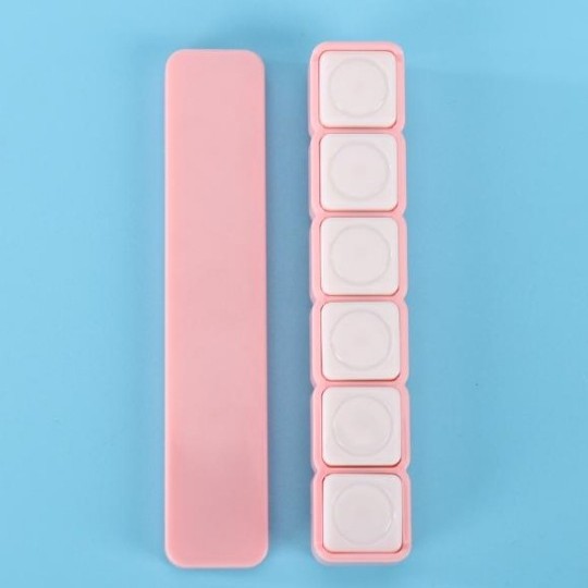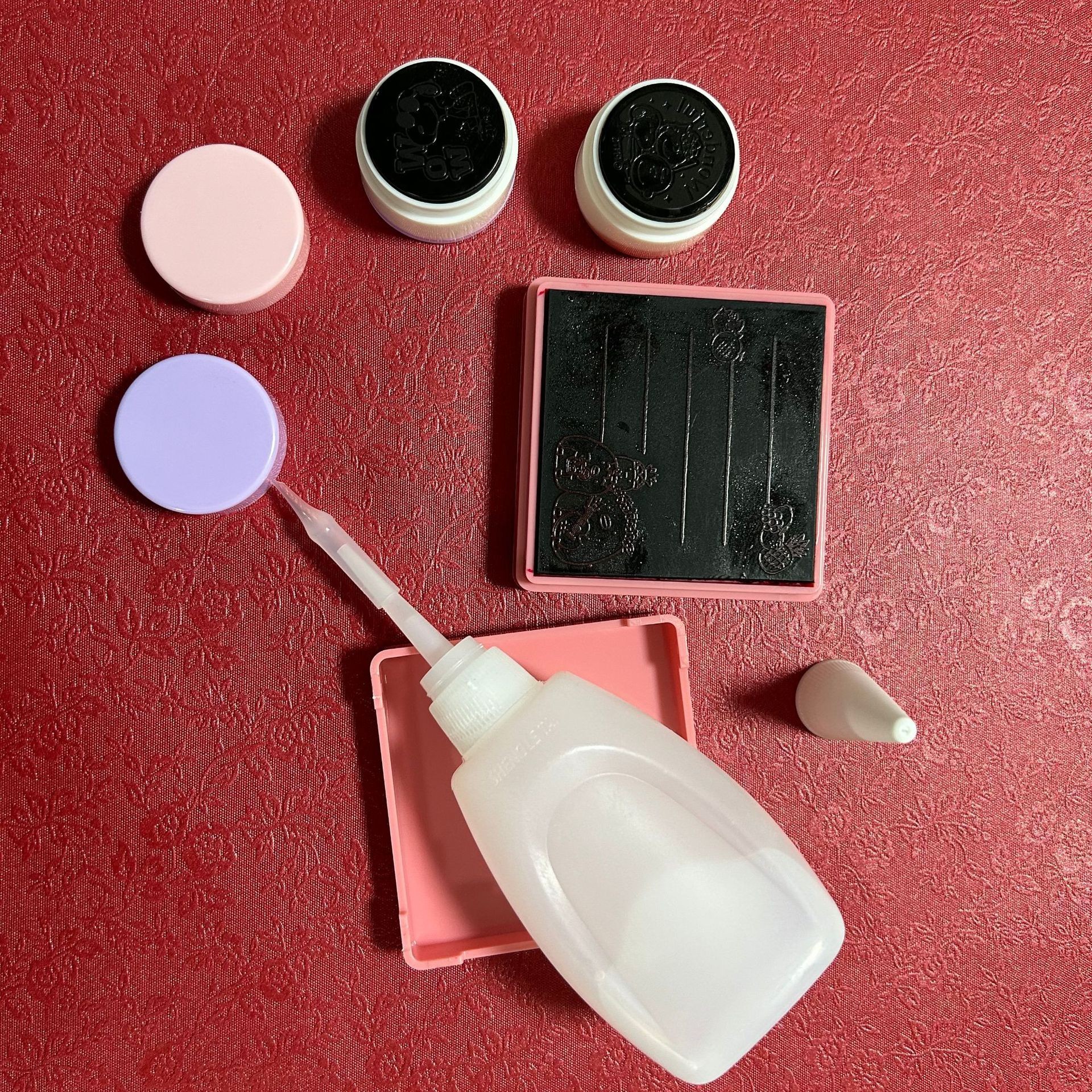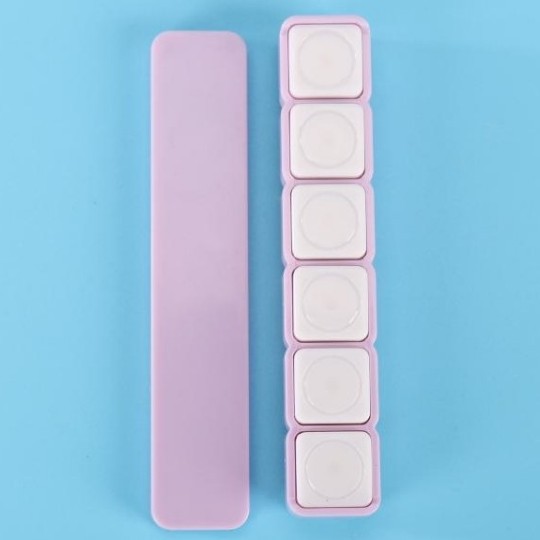 10 ковриков толщиной 2,5 мм (адаптированы для шестиколесного уплотнителя); Синяя сумочка для штампа; Розовый карманный штамп; Фиолетовая сумочка с штампом; Желтый карманный штамп; Белый карманный штамп; Белый маленький уплотнительный корпус; Белый прозрачный чехол для сумки с уплотнением; Фиолетовый 6-звенный пресс-уплотнитель; Белый 6-звенный пресс-герметик; Розовая 6-звенная пресс-уплотнительная оболочка; Карамельный цвет, 6-звенная оболочка с пресс-уплотнением; Светочувствительный клей для печатей, 20 г каждая; Светочувствительный клей для печатей, 50 г каждая