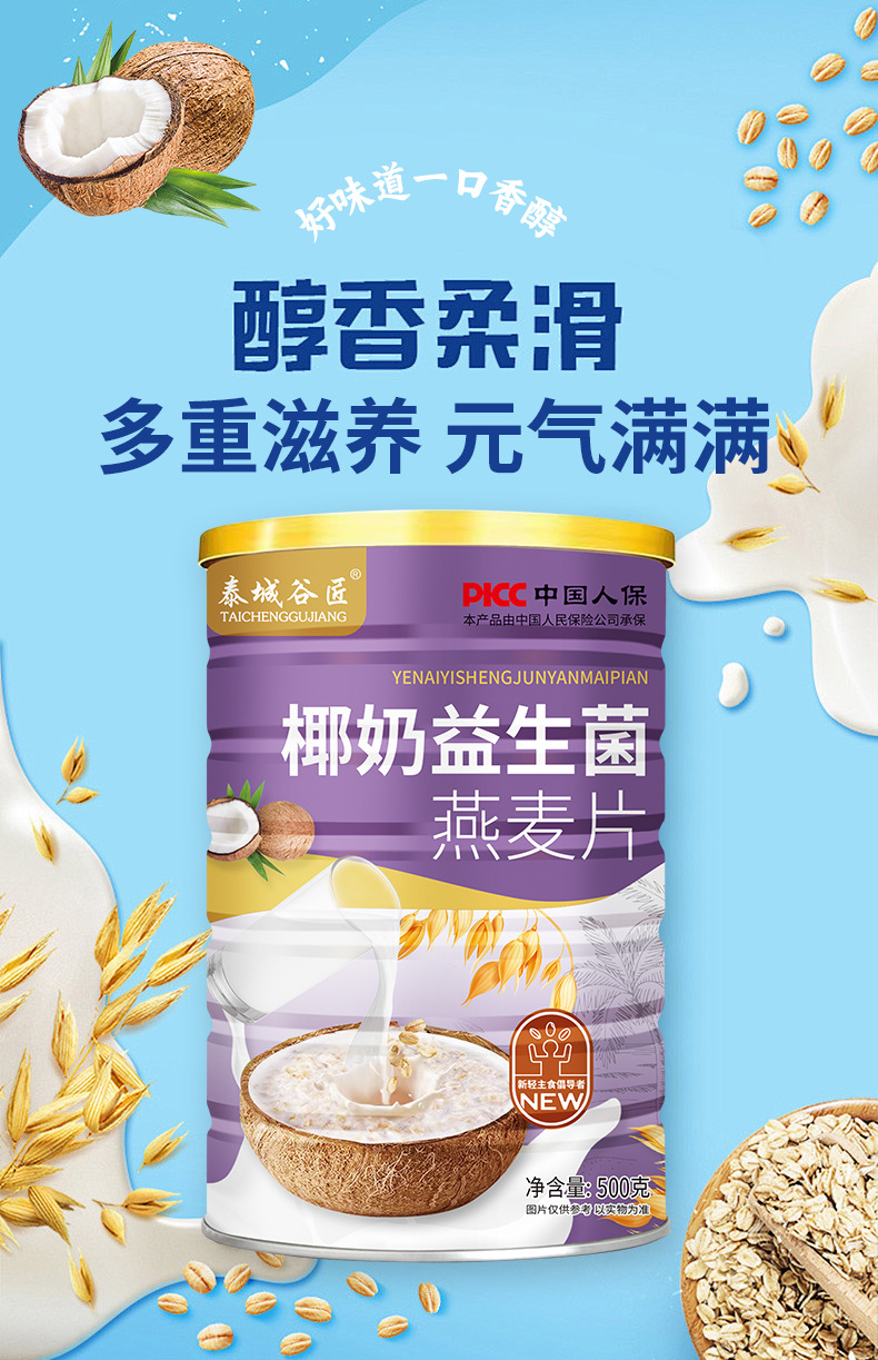 Оптовая продажа мгновенного завтрака Тайчэн Тацзян консервированные 500 г кокосового молока пробиотик овсяные пластыри замена питательной еды