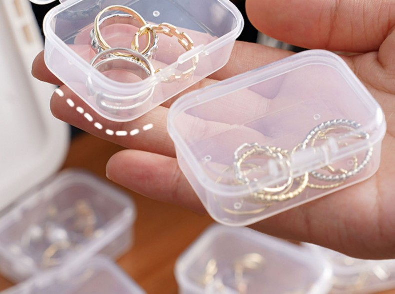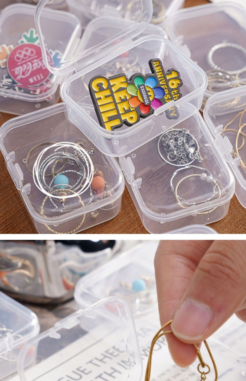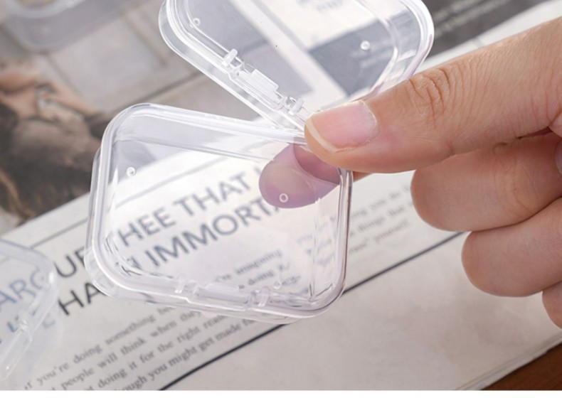 Пластиковая прозрачная маленькая коробка с длинными квадратными наушными вкладышами с крышкой