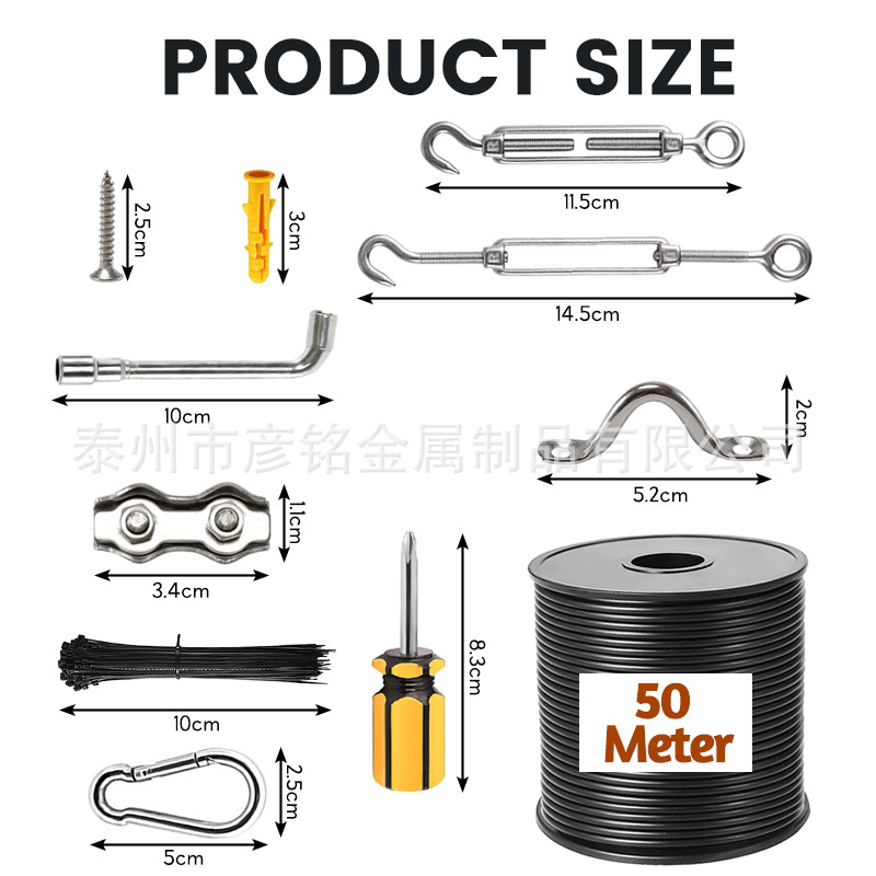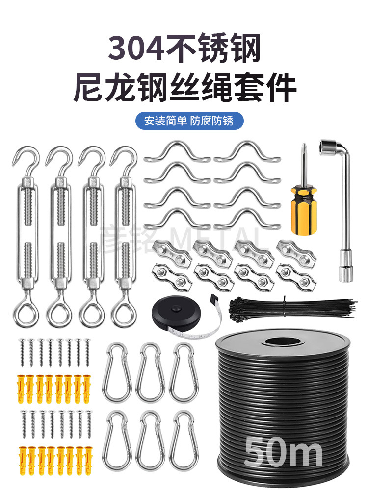 50 м 304 нержавеющий проволочный канат наружная струнная лампа черный упаковочный пластиковый кабель для крепления проволока для глаз подвеска комплект