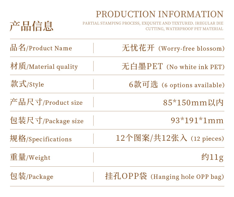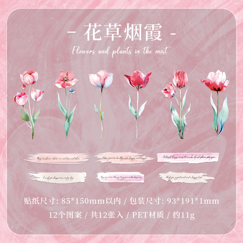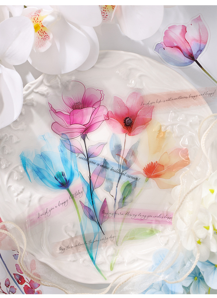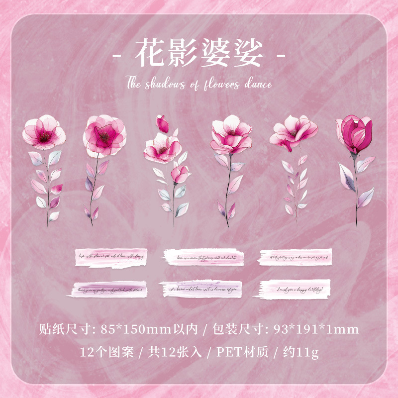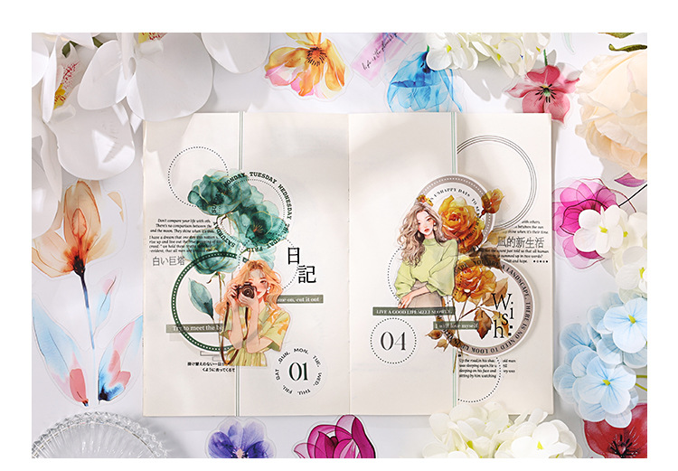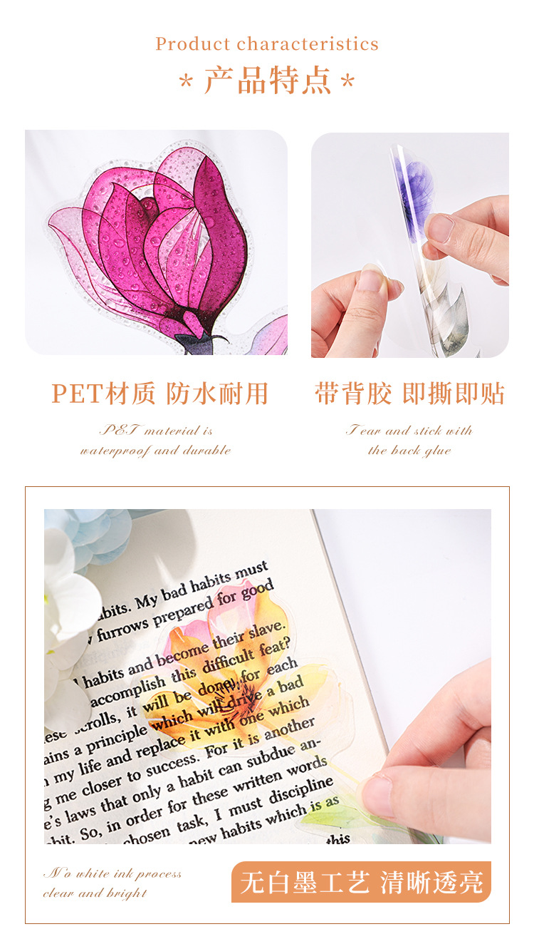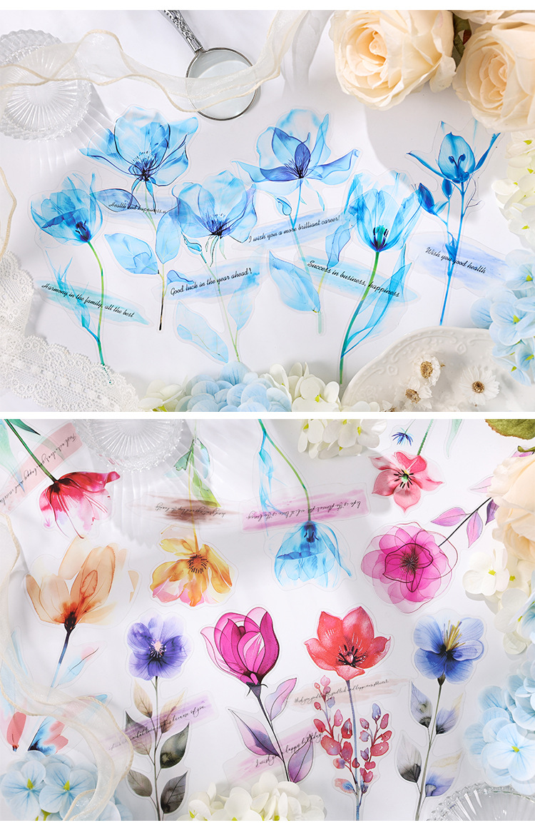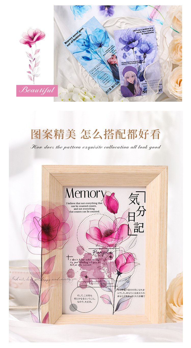 Yuezhen беззаботный цветок цветет большой размер ручной счет наклейка пакет трансграничный ретро цветок водонепроницаемый pet наклейка ручной счет наклейка