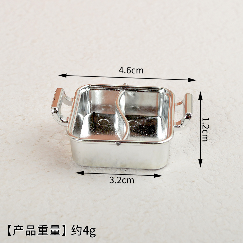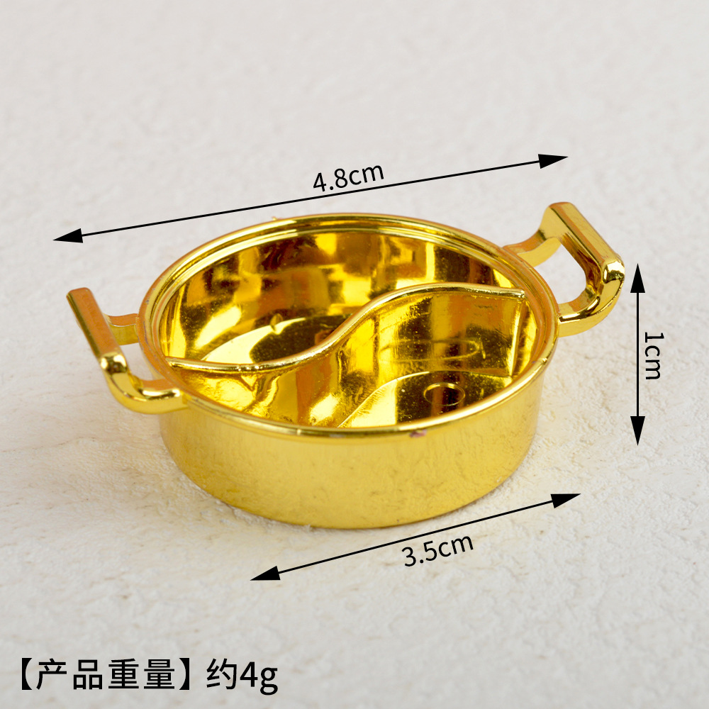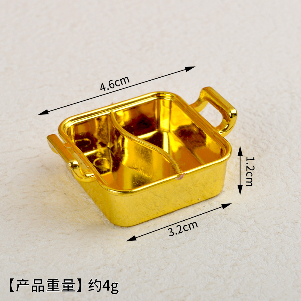 Круглая тарелка диаметром 5,5 см.; Четырехугольная овощная тарелка; Золотой горшок с уткой-мандаринкой; Серебряный горшок с уткой-мандаринкой; Горячая кастрюля с золотой круглой ручкой; Серебряная кастрюля с круглой ручкой; золотой квадратный горячий горшок; Серебряный квадратный горшок; золотой сухой горшок; серебряный сухой горшок; Чаша из искусственного синего и белого фарфора диаметром 4 см.; Белая миска для лапши удон диаметром 4 см.; черная сковорода; серебристо-серая сковорода; золотая закусочная тарелка; серебряная тарелка для закусок; черная форма для выпечки; бежевый поднос; ложка 4 см; белые палочки для еды; суповая кастрюля