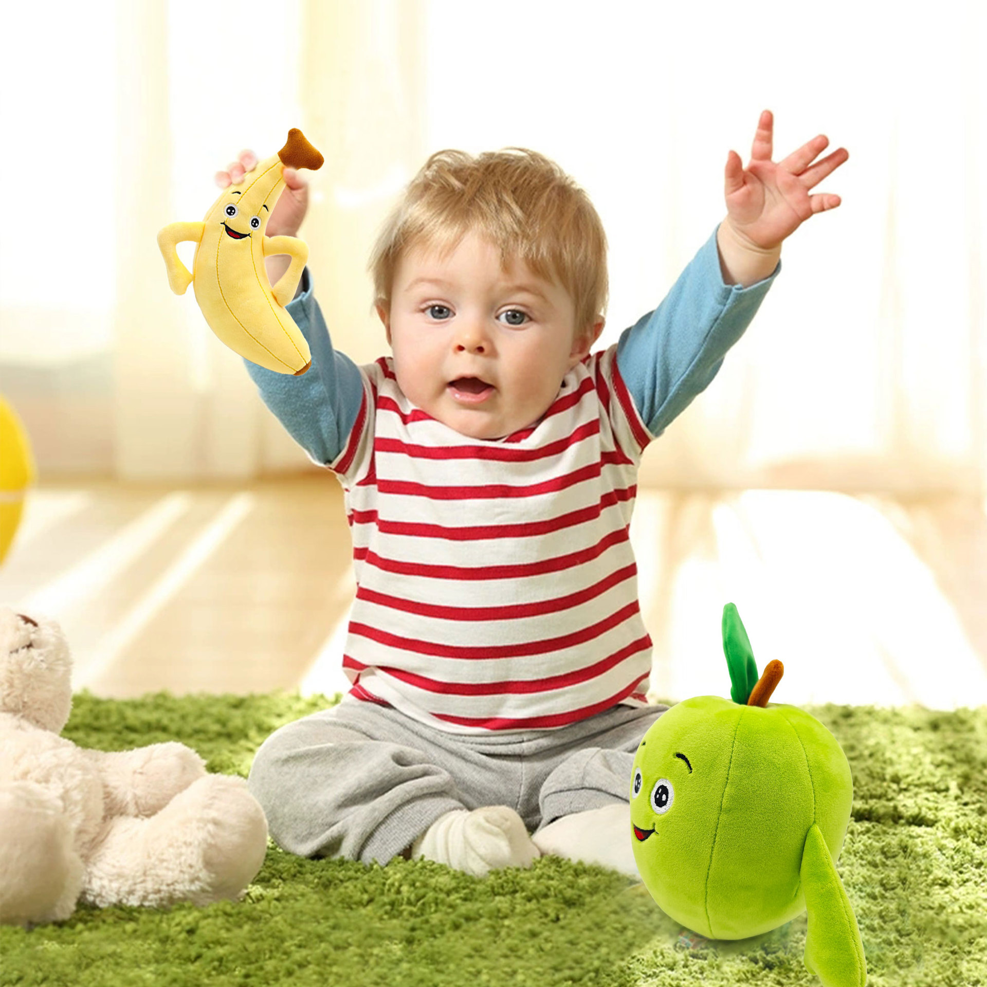 可爱的水果形状的娃娃可以送给你的宝宝作为他的童年伴侣,或者送给你的朋友作为友谊的见证。或者把它放在你的客厅、卧室或车里,这套可爱的水果会和谐地融合在一起。让你体验收获的喜悦。