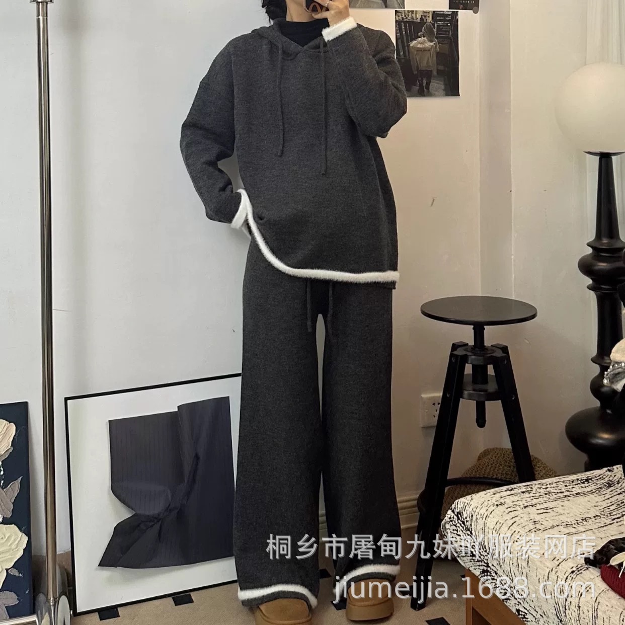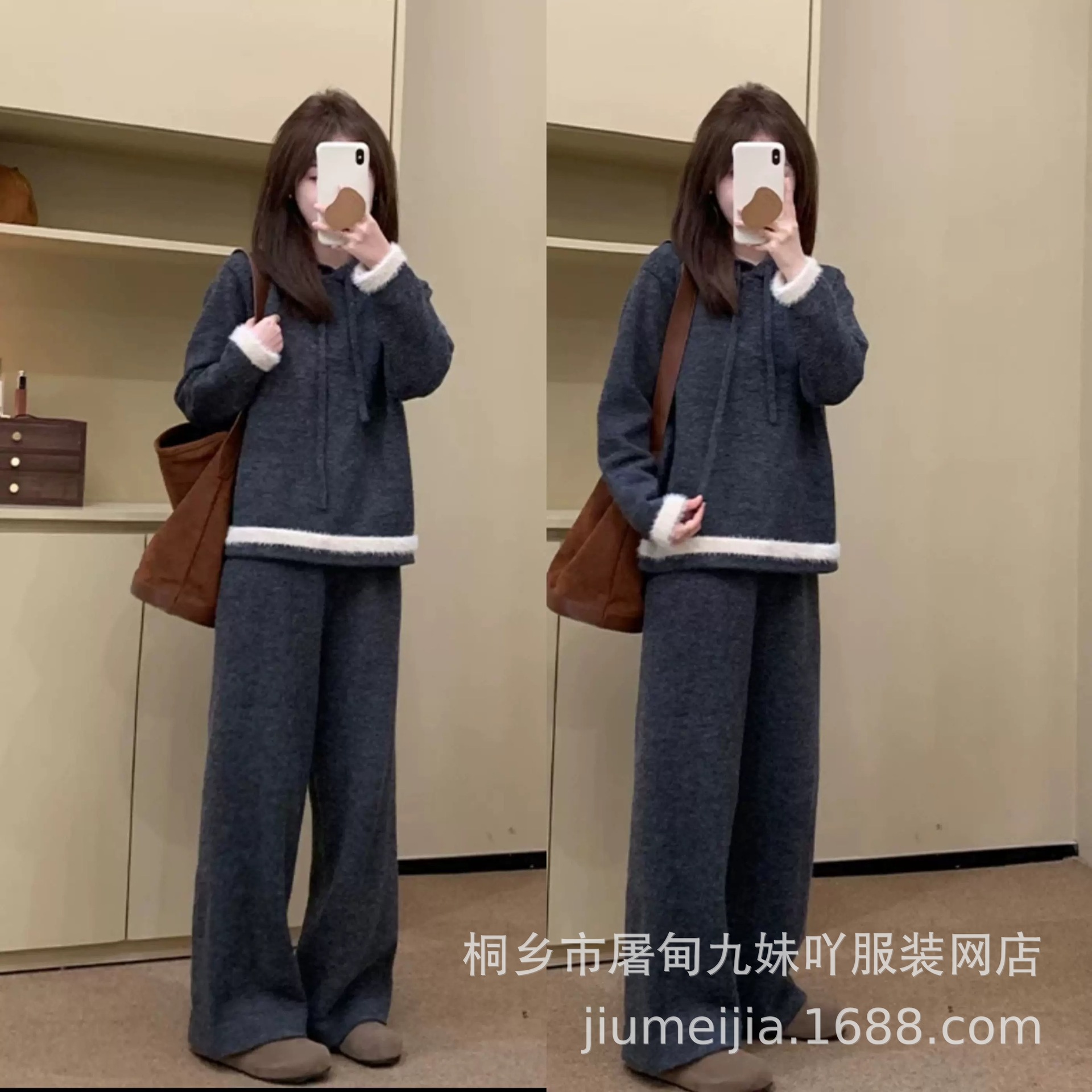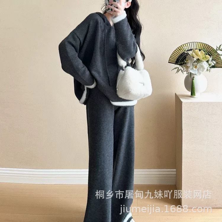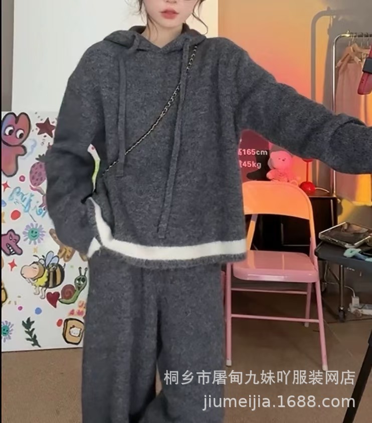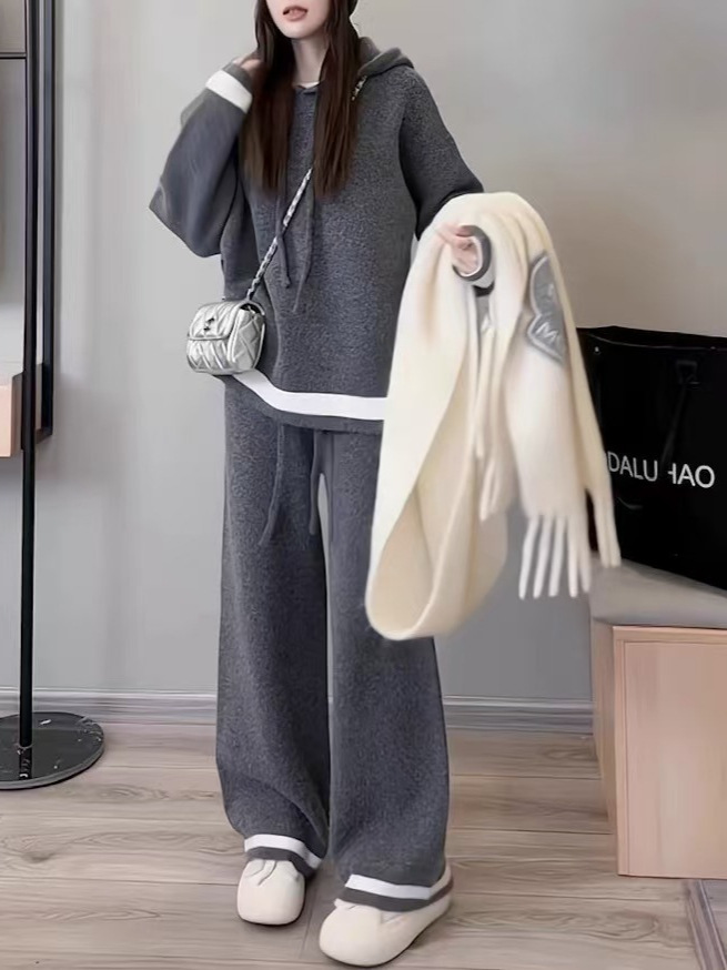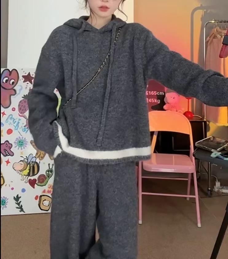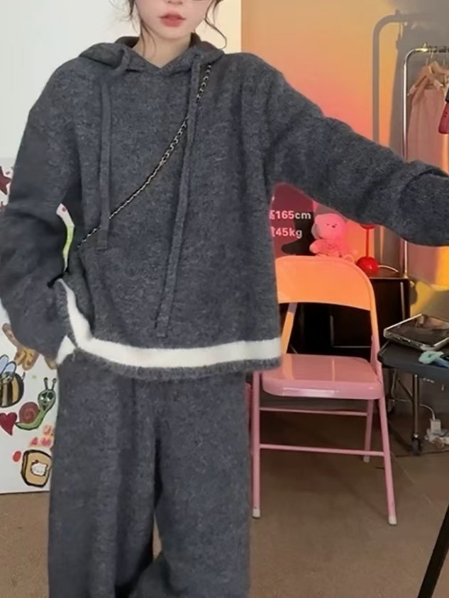 Корейский повседневный спортивный костюм женский осенний и зимний ленивый ветер свободный с капюшоном свитер модные широкие брюки из двух частей