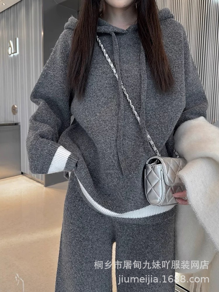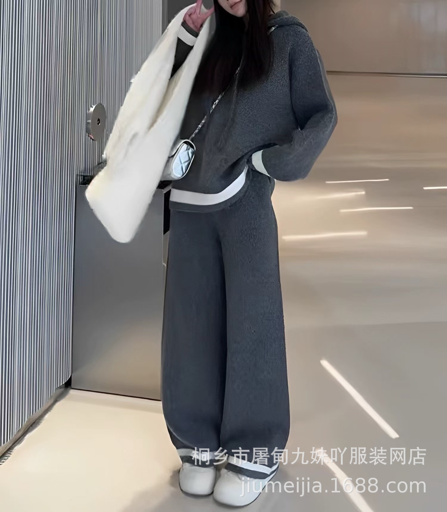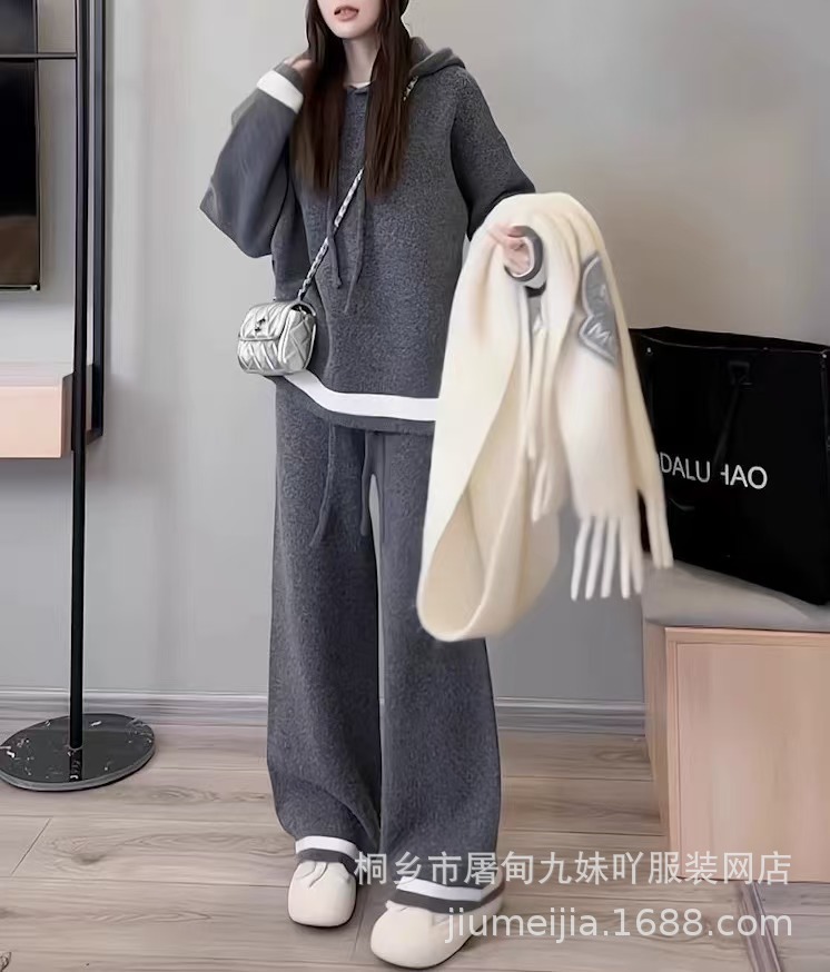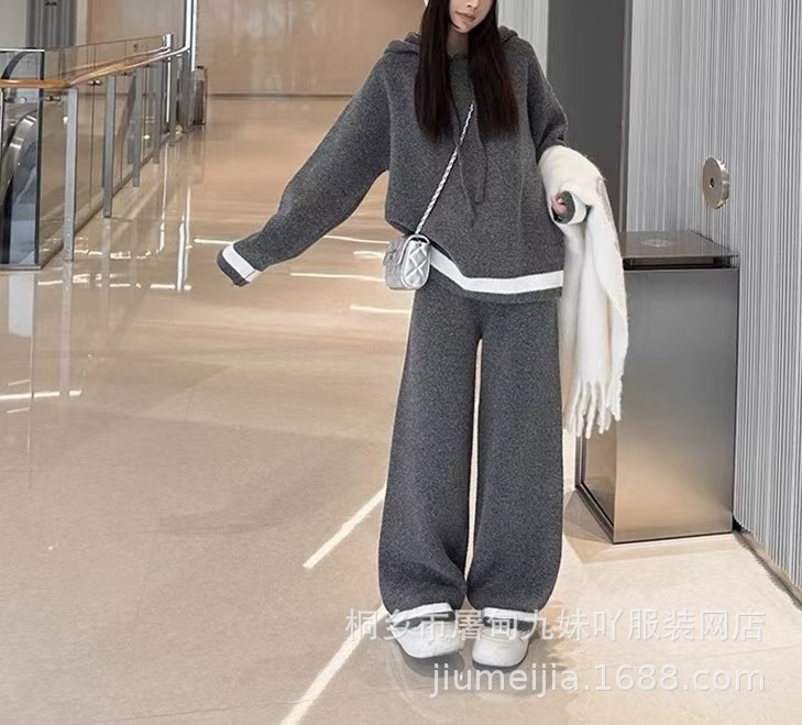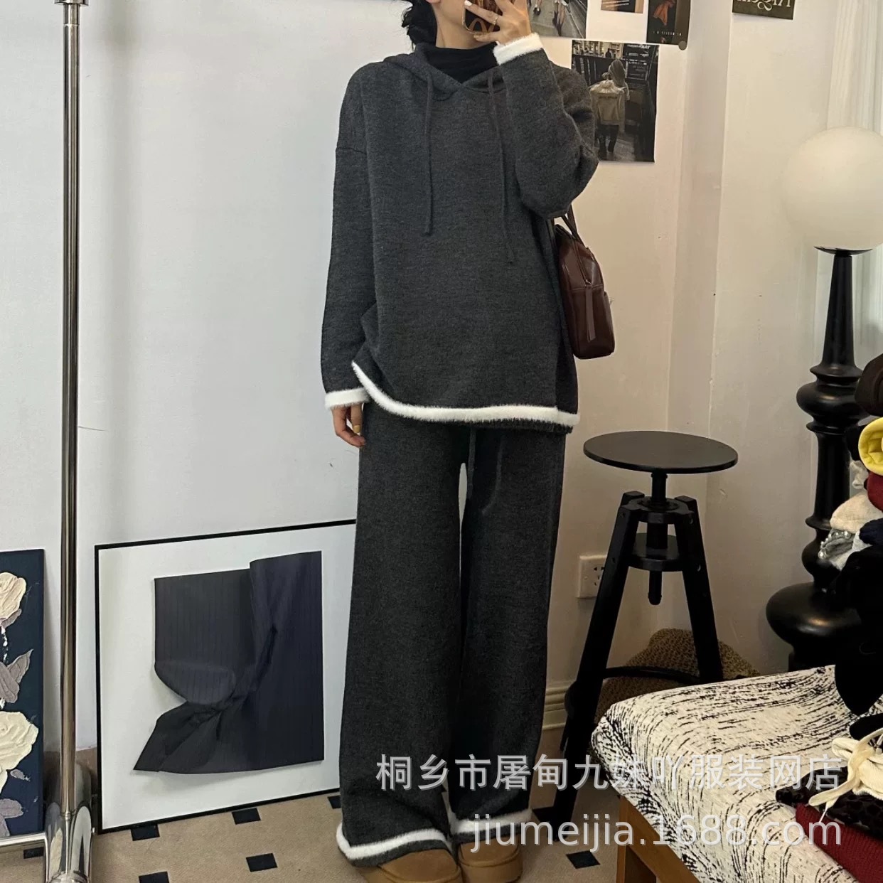 Корейский повседневный спортивный костюм женский осенний и зимний ленивый ветер свободный с капюшоном свитер модные широкие брюки из двух частей