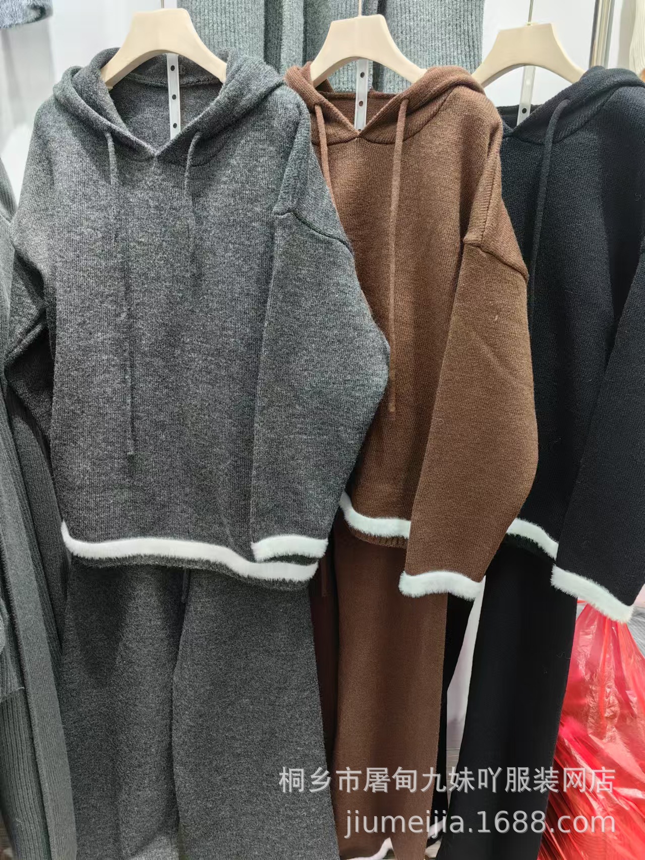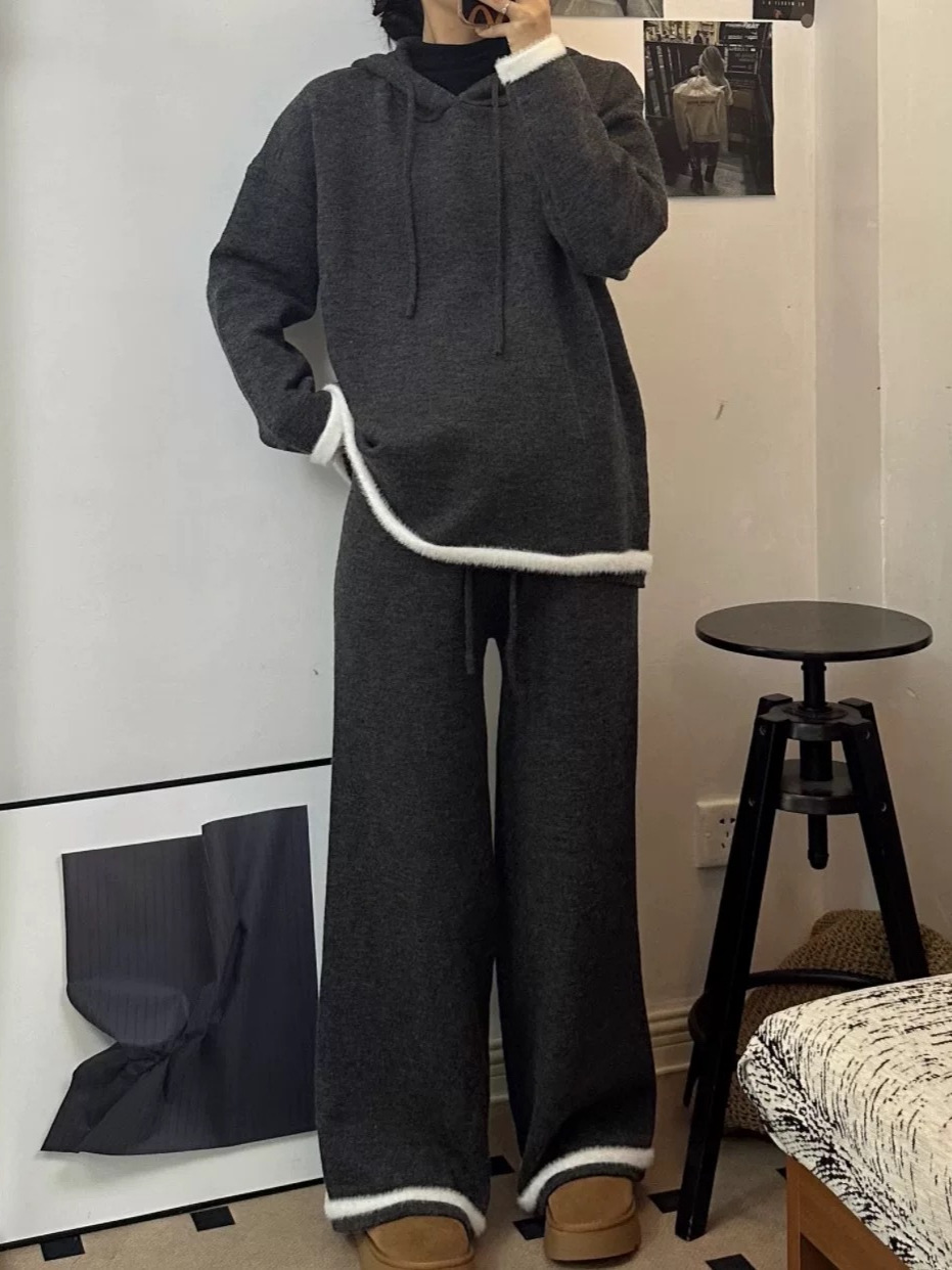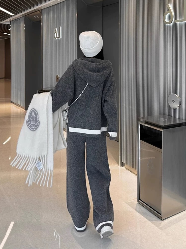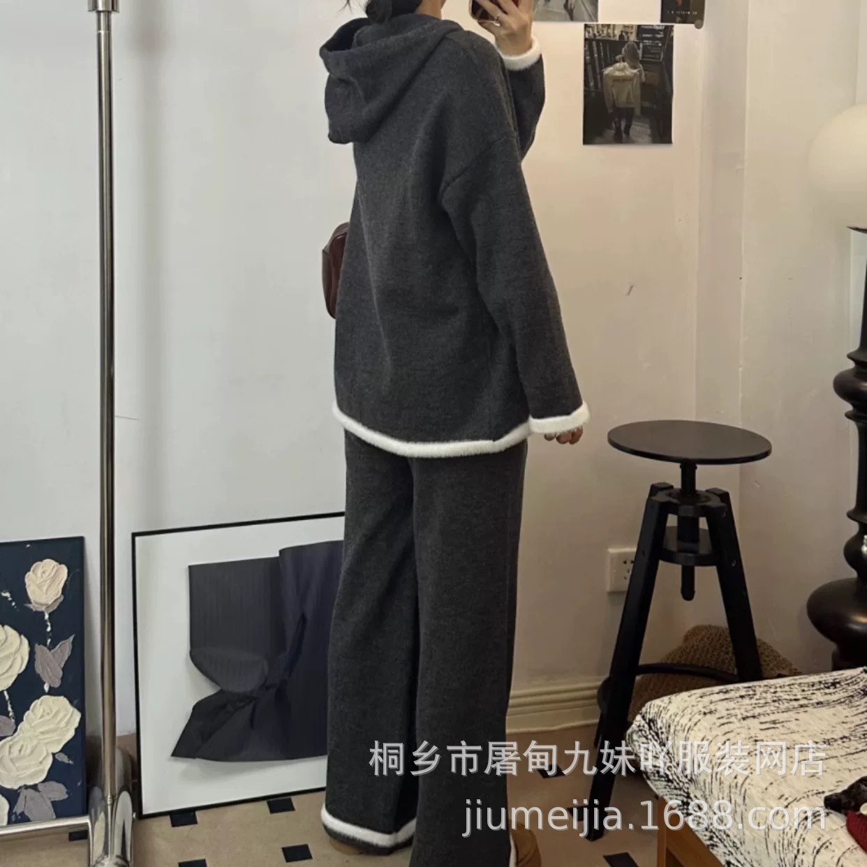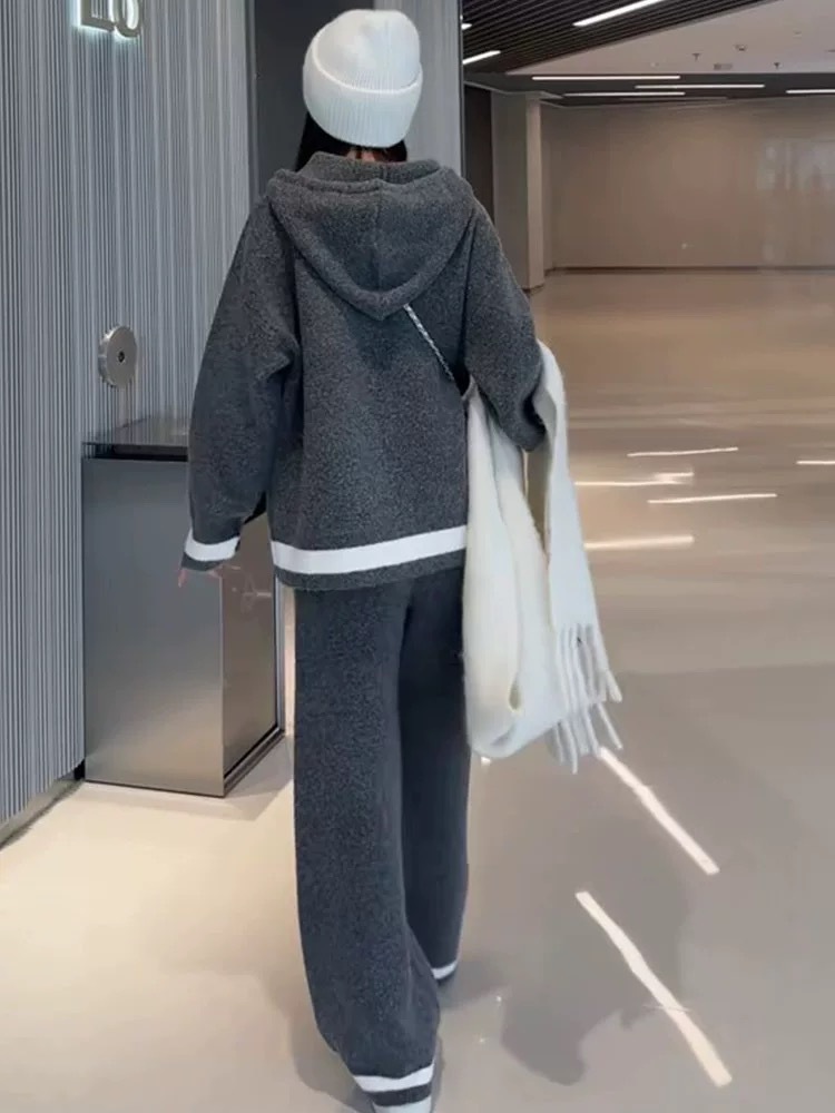 Корейский повседневный спортивный костюм женский осенний и зимний ленивый ветер свободный с капюшоном свитер модные широкие брюки из двух частей