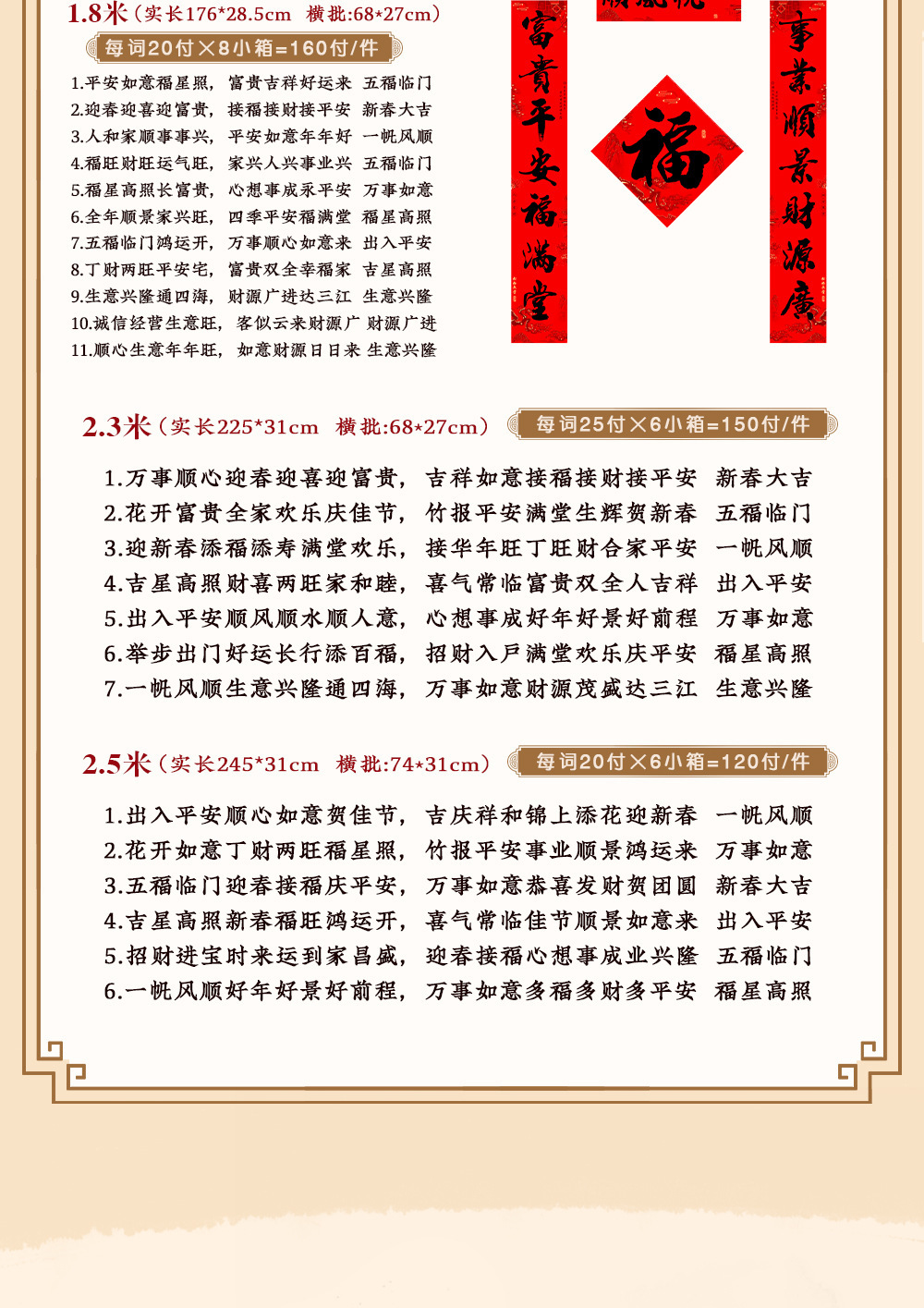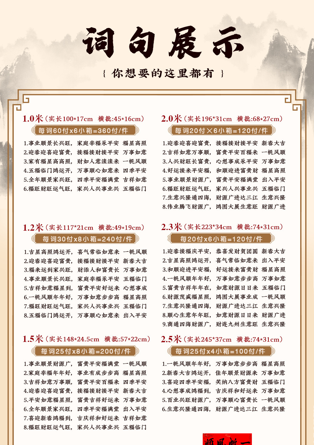 Одна штука с 35 символами благословения (целая штука, вся коробка по отличной цене, а слово «Фу» фотографируется отдельно); 1.0m -Сейзажи вашей карьеры гладкие и процветающие, и ваша семья будет счастливой и всегда в безопасности, а счастливая звезда засияет.; 1.0m - Приветствуем весну и приветствуем богатство, получаем благословения и богатство, возьмите мир и все самое лучшее.; 1.0m - В домашних условиях есть счастливые звезды, которые сиять, и богатство будет плавно плавать по вашему желанию.; 1.0m -Пять благословений приходят к вашей двери и удачи, все самое лучшее приходит и покой в течение всего года.; 1.0m - Семья пейзажей процветает в течение всего года, а круглый год безопасен и благоприятен.; 1.0m -Когда благословение процветает, богатство процветает, а ваша карьера процветает. Приближается пять благословений.; 1.2m -Исприятная звезда ярко сияет и удачи, а радость всегда хорошая и плавная платье.; 1.2m - Приветствуем весну и приветствуем богатство, получайте благословения и богатство, возьмите мир и удачу на новую весну.; 1.2m -Полны доставлены к вам домой и процветают, что делает вас богатым и богатством всего наилучшим.; 1.2m - Пейзажи вашей карьеры долгие и процветающие, и ваша семья будет счастливой и всегда в безопасности. Приближается пять благословений.; 1.2m -Удачи и удачи пришли, богатство, мир и удача, и все ваши пожелания в реальность; 1.2m - Ветерок хорош каждый год, и все идет хорошо с вами. Это благословещая звезда и высокая фотография.; 1.2m -Когда благословение процветает, богатство процветает, а ваша карьера процветает. Приближается пять благословений.; 1.2m -Пять благословений приходят к вашей двери и удачи, все самое лучшее идет хорошо, безопасно входит и выходит.; 1.5m - Карьера гладкая, а богатство обильное, богатство, мир и благословение плавное плавание.; 1.5m -Семейное счастье хорошее каждый год, и ваша карьера имеет пошаговые и хорошие счастливые звезды.; 1.5m -Удачи и все идет хорошо, богатство, мир и благословения приходят круглый год.; 1.5m - Приветствуем весну и приветствуем богатство, получайте благословения и богатство, возьмите мир и удачу на новую весну.; 1.5m -Фото мира и удачи, богатство, удача и удача приходят и все самое лучшее; 1.5m - Семья пейзажей процветает в течение всего года, а круглый год безопасен и безопасен для входа и выхода.; 1.5m -Добро пожаловать на Новый год с удачей, благоприятной удачей и удачей.; 1.5m -Когда благословение процветает, богатство процветает, а ваша карьера процветает. Приближается пять благословений.; 1.8m -Фото мира и удачи, богатство, удача и удача приходят пять благословений.; 1.8m - Приветствуем весну и приветствуем богатство, получайте благословения и богатство, возьмите мир и удачу на новую весну.; 1.8m - Все хорошо сочетается с вашей семьей, и вы будете счастливы со спокойной и процветающей каждый год.; 1.8m -Когда благословение процветает, богатство процветает, а ваша карьера процветает. Приближается пять благословений.; 1.8m -Fuxing имеет высокую освещенность и богатство, все ваши пожелания сбываются, мир и все идет хорошо.; 1.8m - Семья пейзажей процветает в течение всего года, а круглый год безопасен и полон счастливых звезд.; 1.8m -Пять благословений приходят к вашей двери и удачи, все самое лучшее идет хорошо, безопасно входит и выходит.; 1.8m - Сейф Ding Cai Liangwang, благоприятная звезда богатства и вся семья счастья.; 1.8m -Бизнес процветае