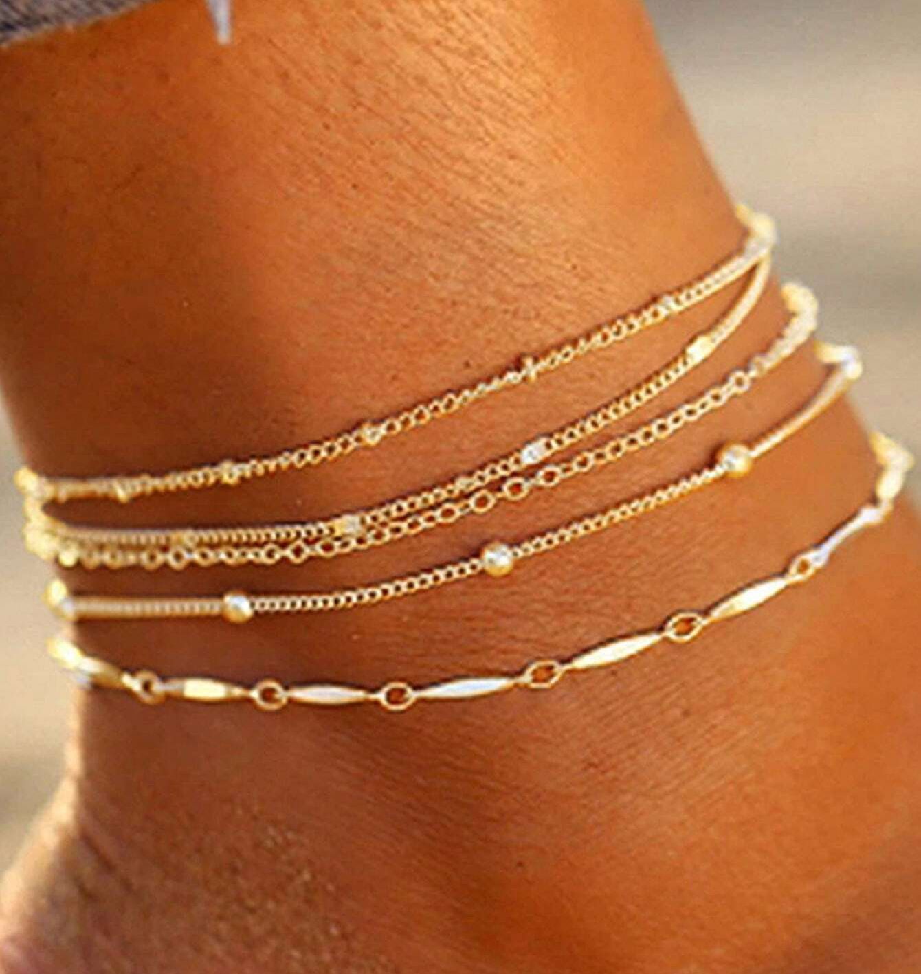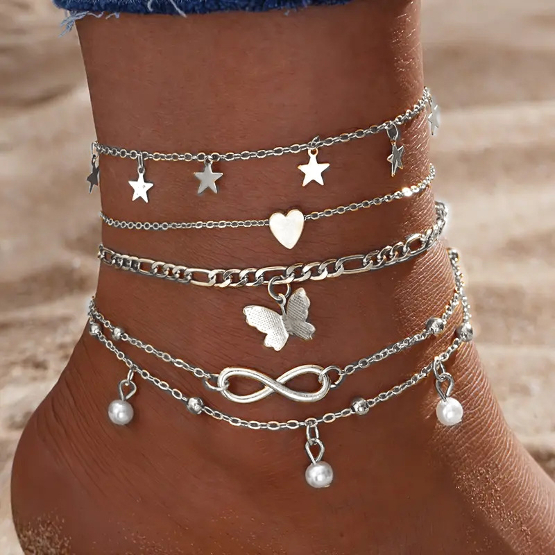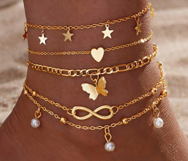 Европейский и американский трансграничный набор горячих ножных цепей простой персонализированный цепочка из рыбьей кости любовь кубинская цепь многослойный пляжный ножной браслет
