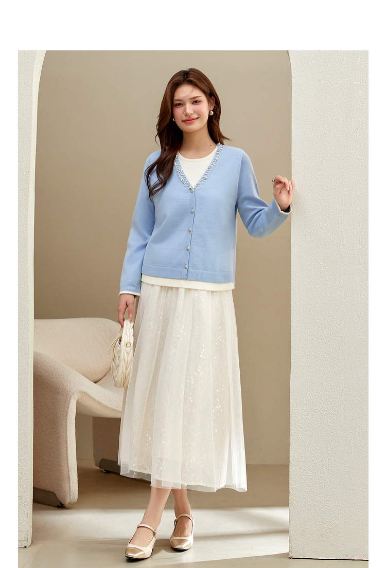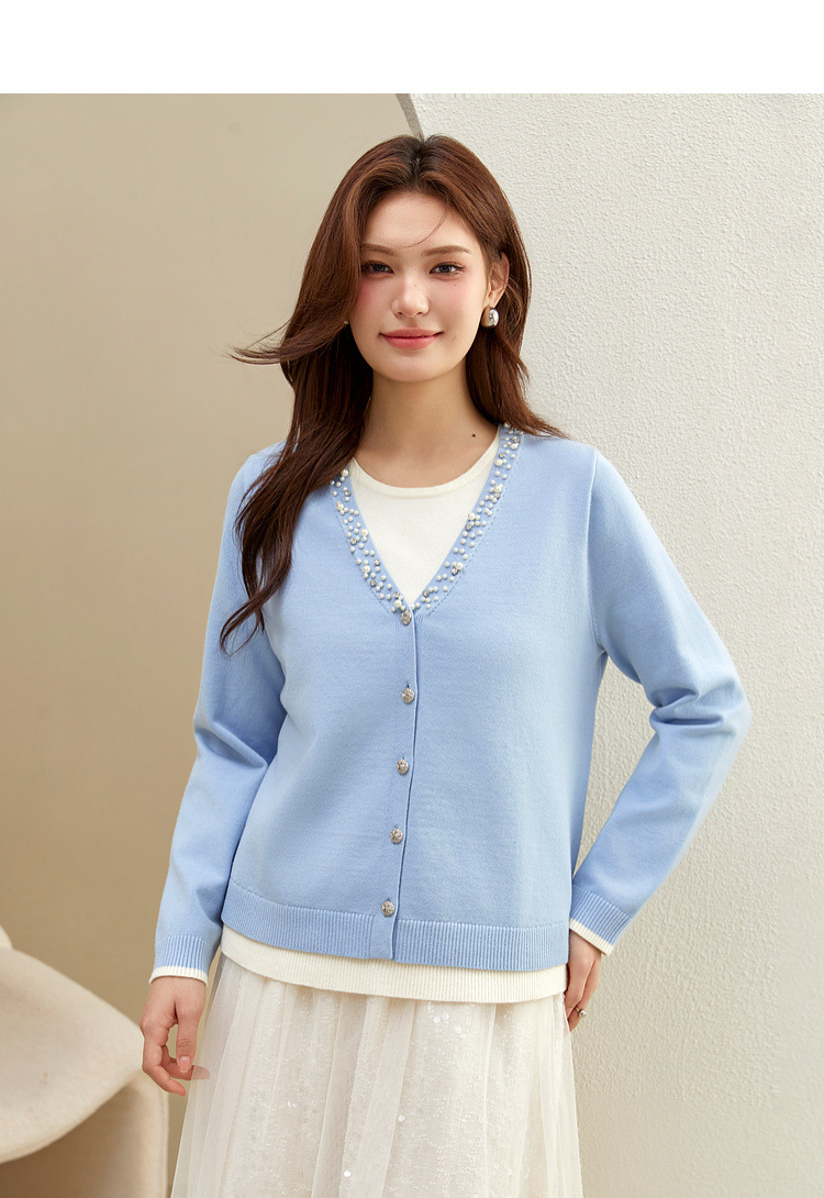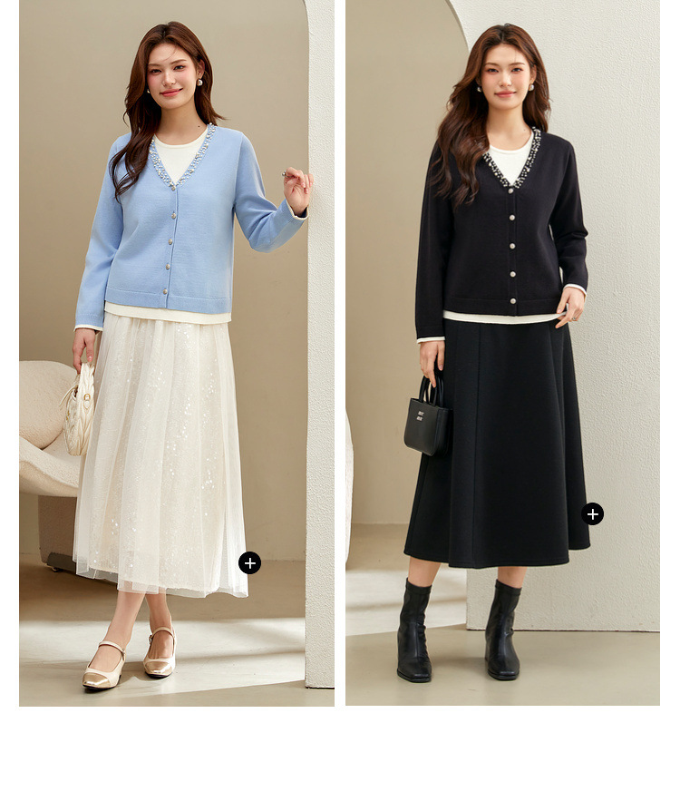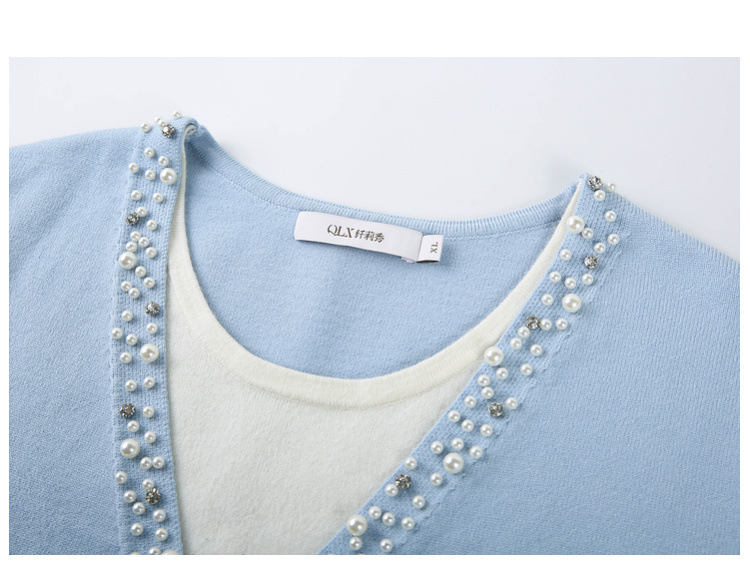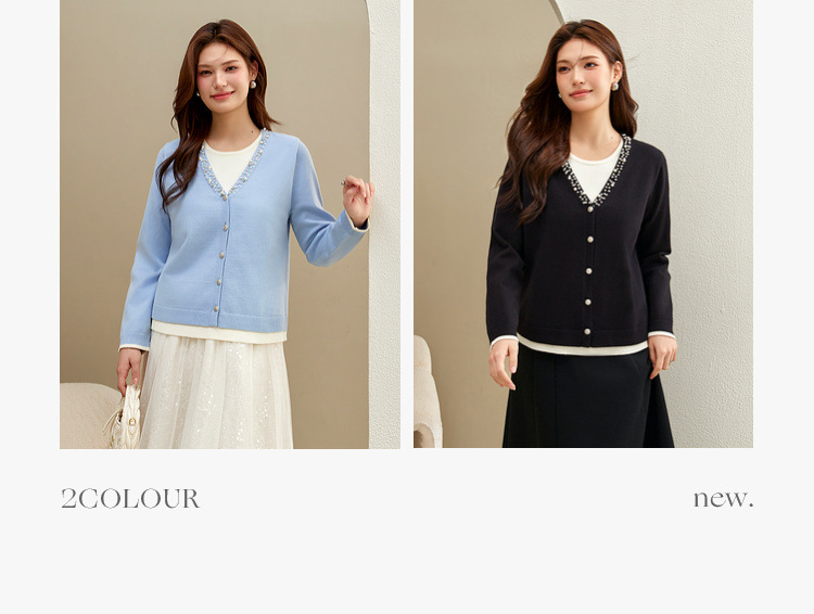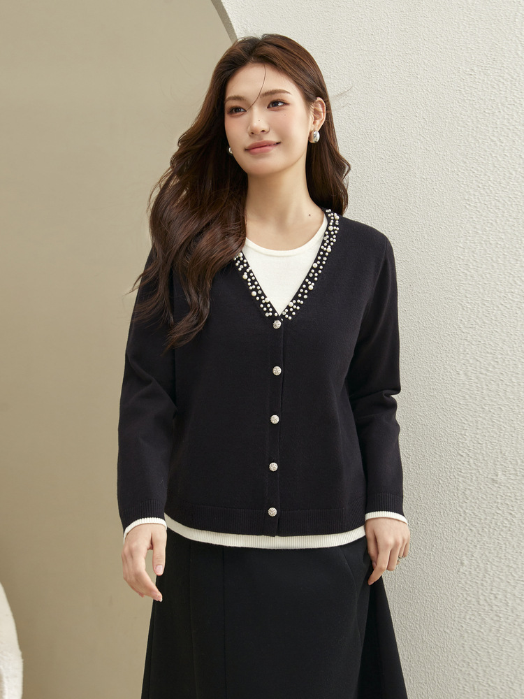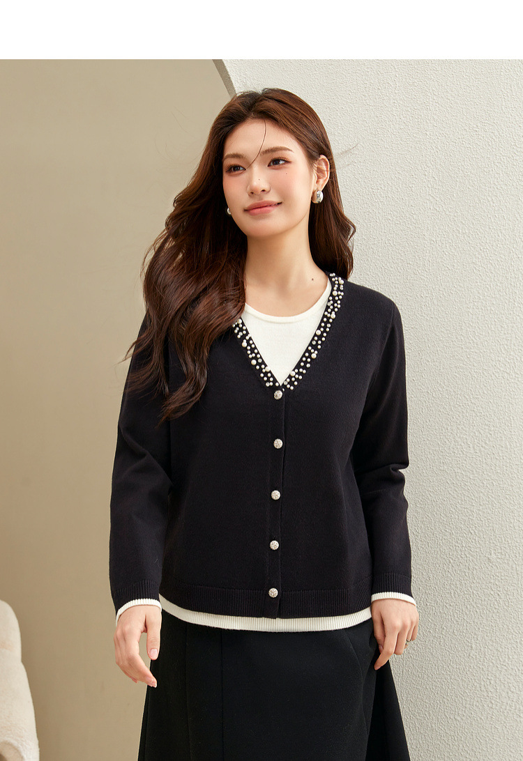 [Бусы с гвоздями поддельные два свитера] Блэк-шоу большой размер женский стиль дизайн дизайн топ толстый mm2024 зимний новый