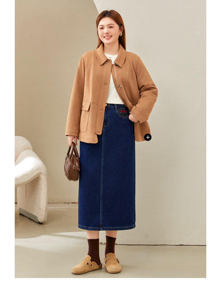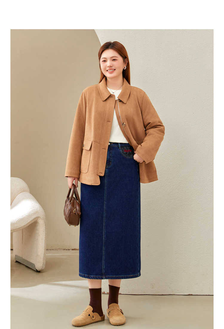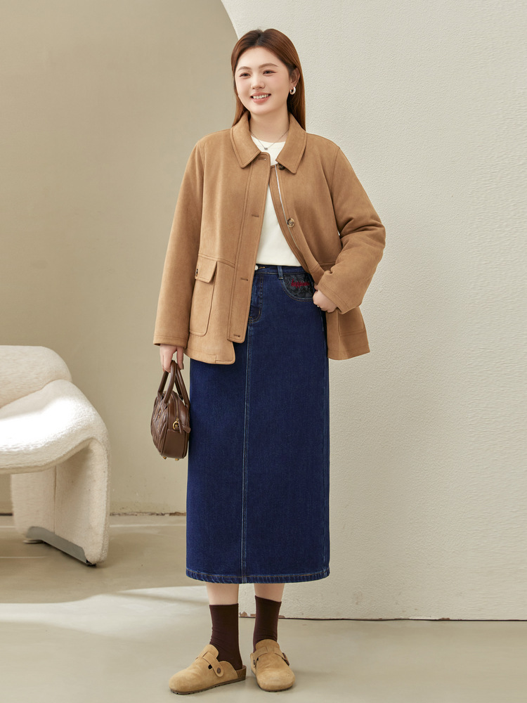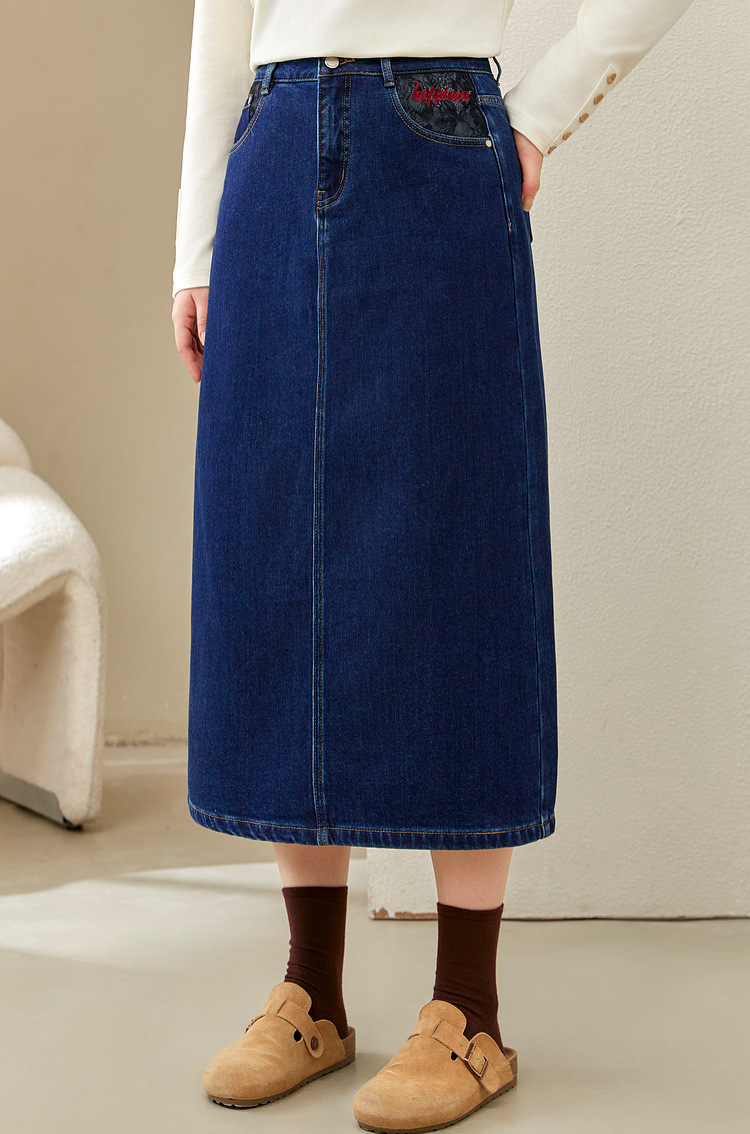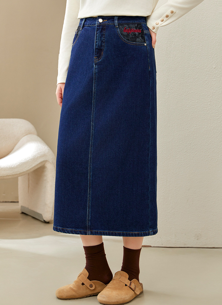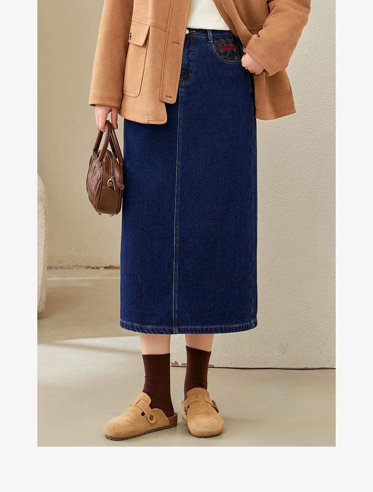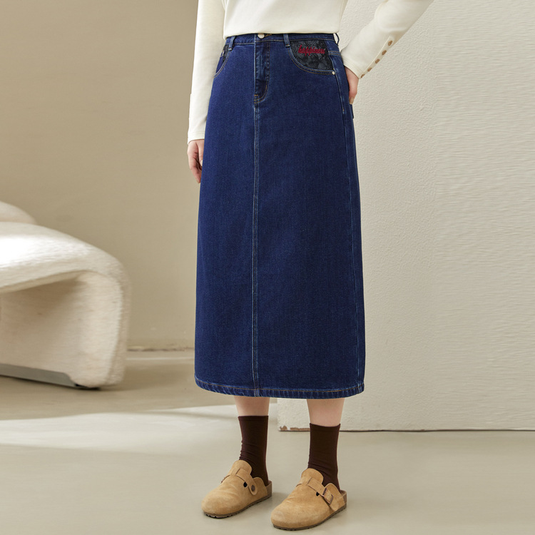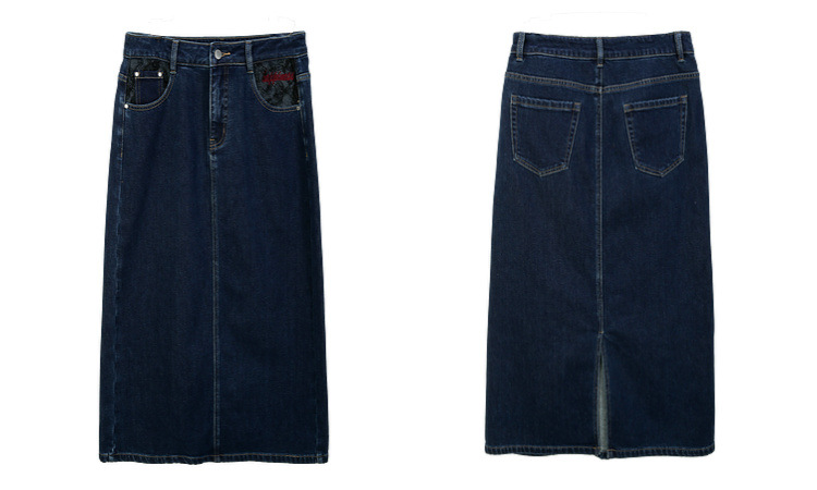 Полноцветное шоу большой размер женская темно-синяя мода индивидуальность с расколотой тонкая джинсовая юбка толстый mm2024 зимний новый стиль