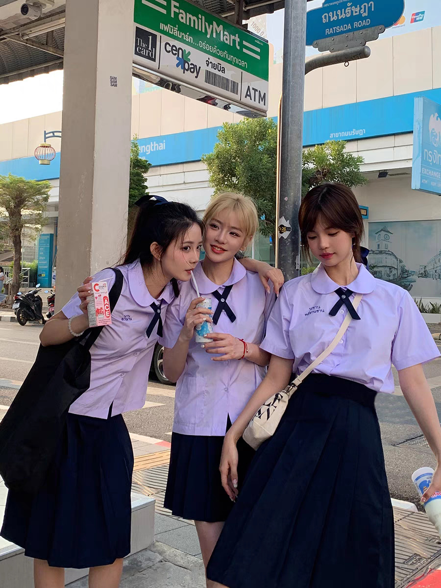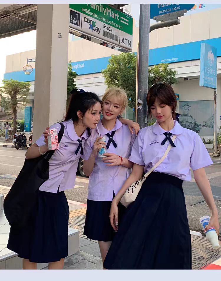 Тайские женские короткие рукава (лаванда); Рукава для девочек в тайском стиле + темно-синий галстук-бабочка; Тайские женские короткие рукава + черный тонкий галстук; Тайские женские короткие рукава + черный широкий галстук; Тайская женская рубашка с короткими рукавами + темно-синяя юбка + темно-синий галстук-бабочка; Тайская женская рубашка с короткими рукавами + темно-синяя юбка миди + темно-синий галстук-бабочка; Тайская женская рубашка с короткими рукавами + темно-синяя длинная юбка + темно-синий тонкий галстук; Тайская женская рубашка с короткими рукавами + черная юбка + черный тонкий галстук; Тайская женская рубашка с короткими рукавами + черная юбка миди + черный тонкий галстук; Тайская женская рубашка с короткими рукавами + черная длинная юбка + черный тонкий галстук; Тайская женская рубашка с короткими рукавами + темно-синяя юбка + черный широкий галстук; Тайская женская рубашка с короткими рукавами + темно-синяя юбка миди + черный широкий галстук; Тайская женская рубашка с короткими рукавами + темно-синяя длинная юбка + черный широкий галстук; Тайская женская рубашка с короткими рукавами + черная юбка + черный широкий галстук; Тайская женская рубашка с короткими рукавами + черная юбка миди + черный широкий галстук; Тайская женская рубашка с короткими рукавами + черная длинная юбка + черный широкий галстук; Тайские мужские короткие рукава (лаванда); Тайские мужские короткие рукава + черный галстук; Тайский мужской короткий рукав + темно-синий галстук; Тайские мужские короткие рукава + черные брюки + черный галстук; Тайский мужской короткий рукав + черные брюки + темно-синий галстук; Тайская мужская рубашка с короткими рукавами + темно-синие брюки + темно-синий галстук; Тайский мужской короткий рукав + темно-синие брюки + черный галстук; Тайские мужские короткие рукава + черные шорты + черный галстук; Тайские мужские короткие рукава + черные шорты + темно-синий галстук; Тайские мужские короткие рукава + темно-синие шорты + темно-синий галстук; Тайские мужские короткие рукава + темно-синие шорты + черный галстук