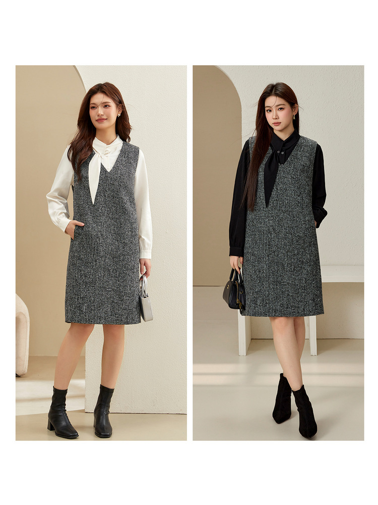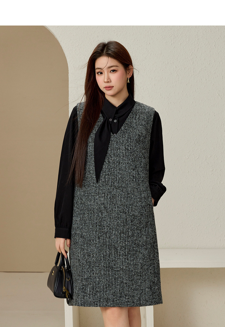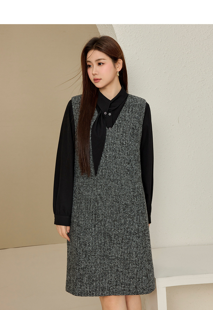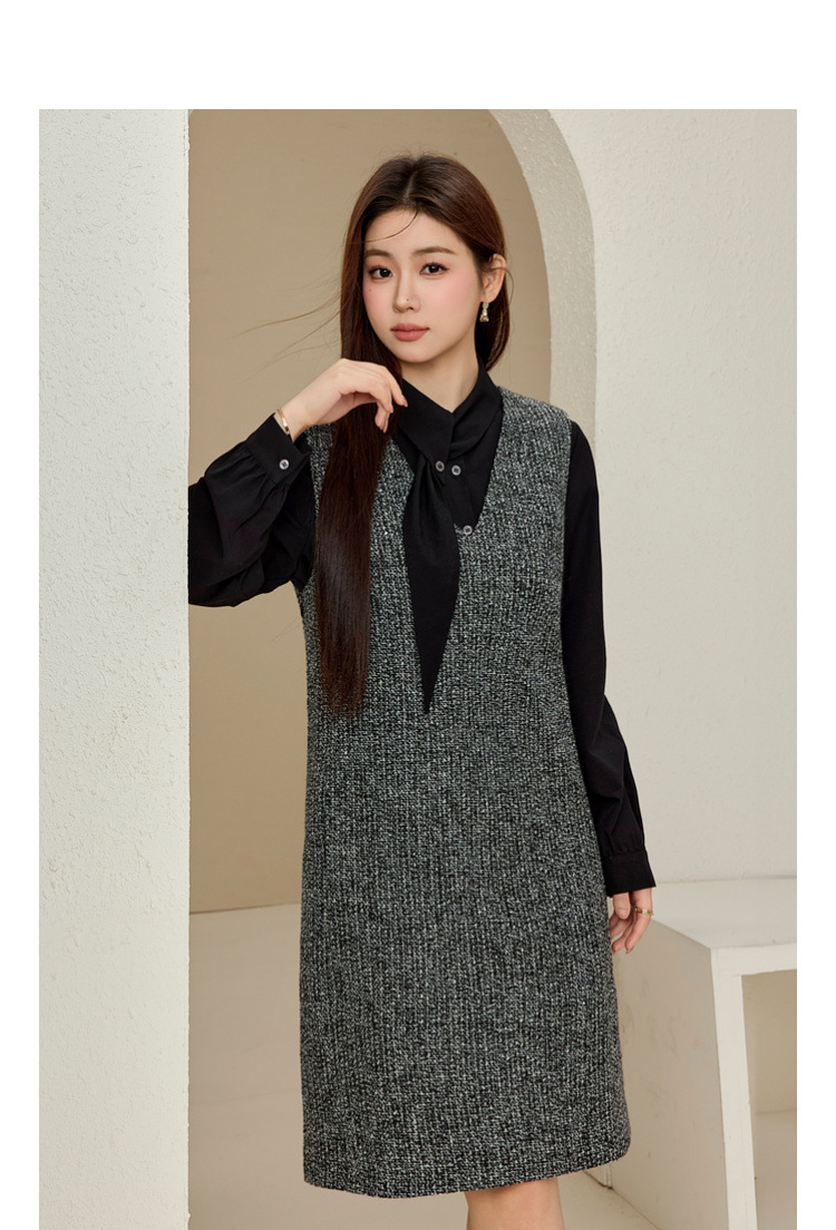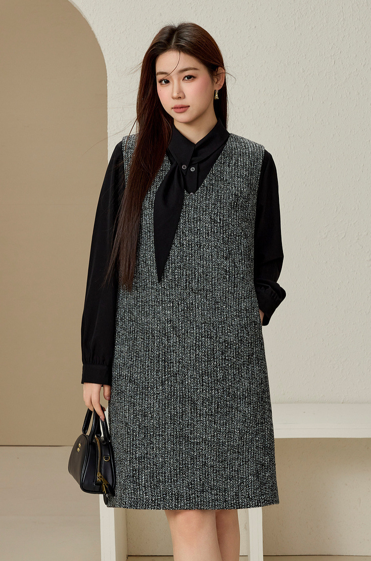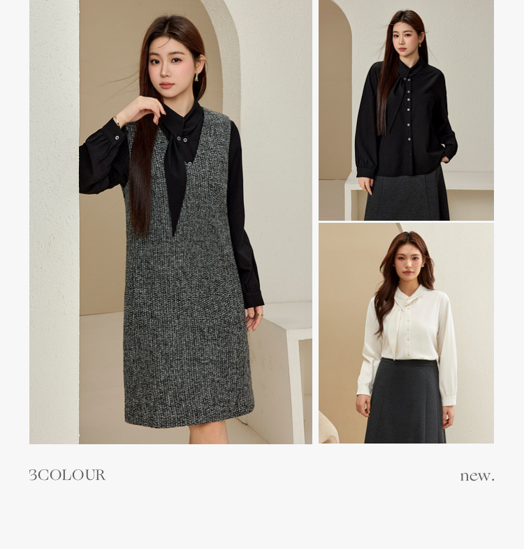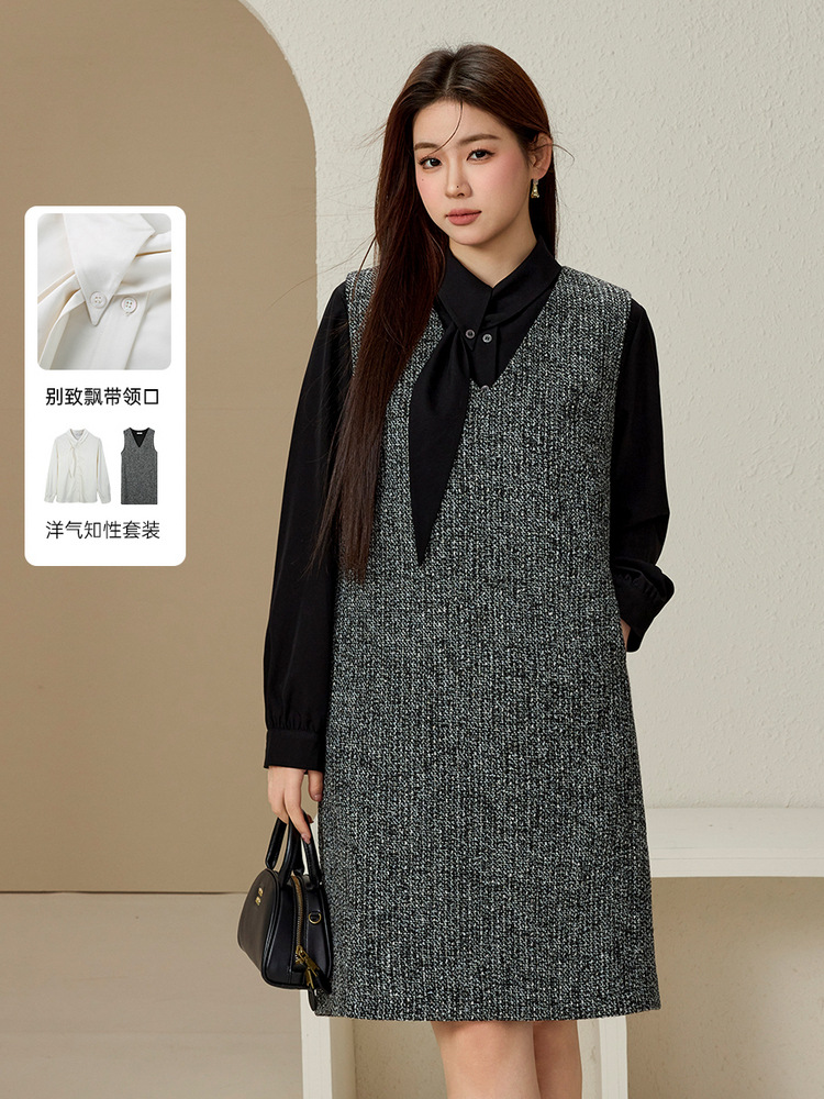 Черно-серый [платье QJ5263]; Черная [рубашка QJ5265]; Рисовый абрикос [рубашка QJ5265]