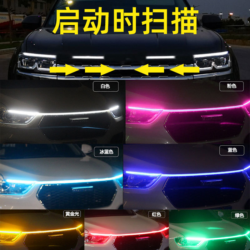 Трансграничный подсветка запуска сканирования дневной свет автомобиля динамический светодиодный ультра световой крышка световой полосы переднего капота