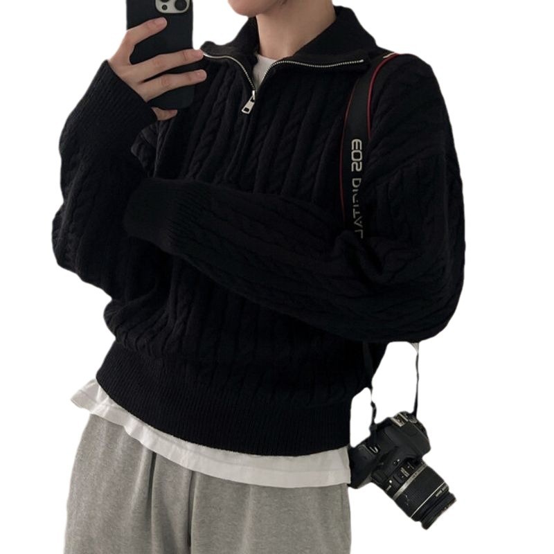 Ретро дизайн чувство вихрея свитер свитер женский 2024 осень зима новый корейский молния длинный рукав свитер женский