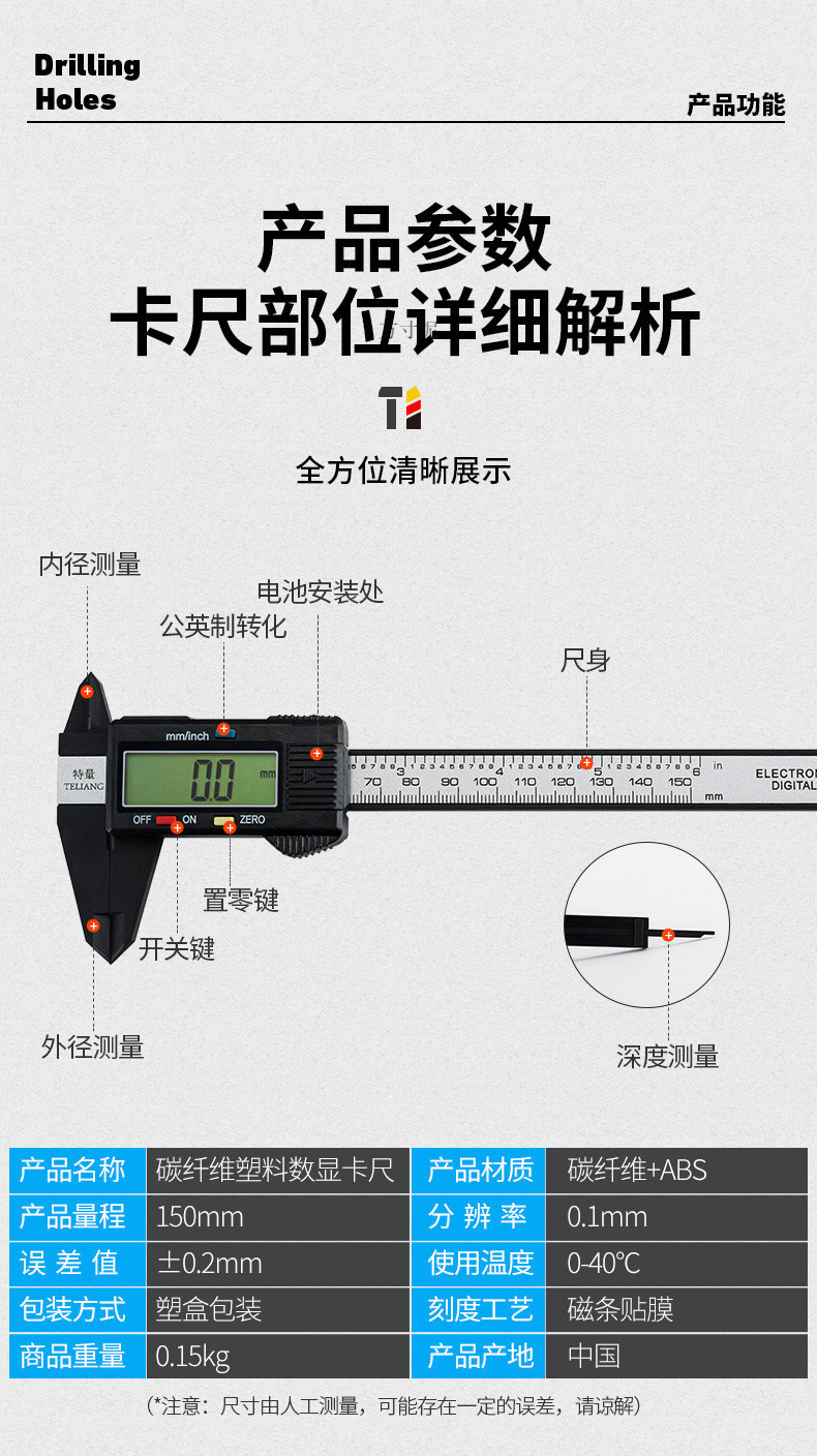 Цифровизионный высокоточный штангенциркуль 0-150 мини-игры ювелирные изделия и нефрит с глубиной углеродного волокна пластиковый штангенциркуль