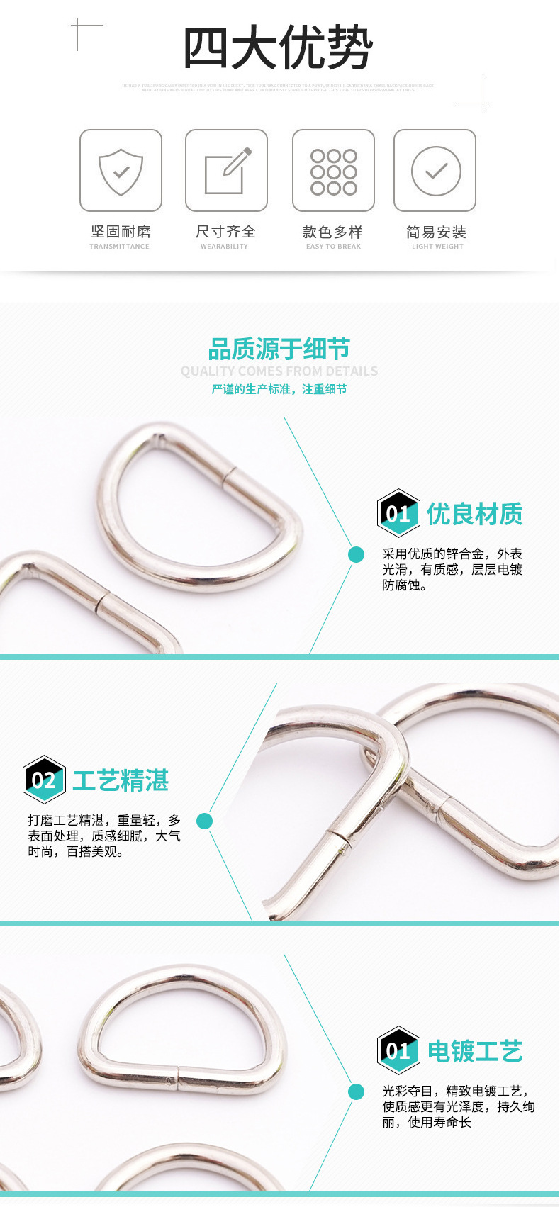 D-образные комплектующие для багажа металлическая пряжка D-пряжка полукруглая пряжка рюкзак соединительный крючок для ключей фитинги пряжки