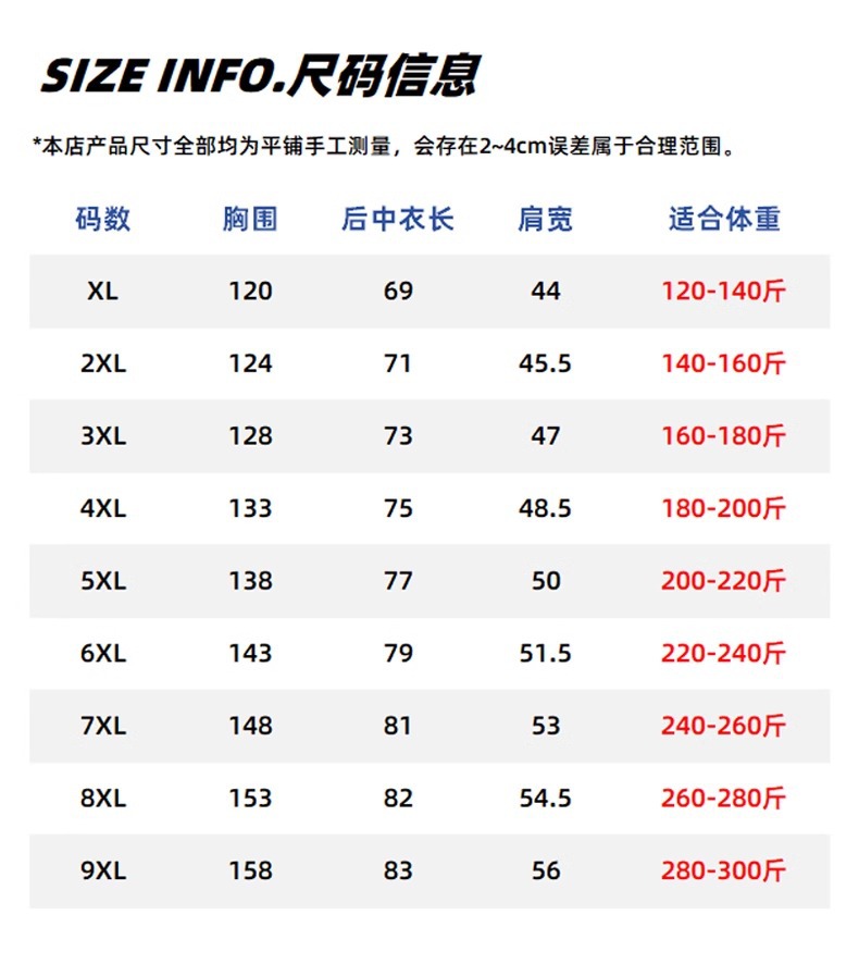 XL подходит для 60-70kg; 2XL подходит для 70-80kg; 3XL подходит для 80-90kg; 4XL подходит для 90-100kg; 5XL подходит для 100-110kg; 6XL подходит для 110-120kg; 7XL подходит для 120-130kg; 8XL подходит для 130-140kg; 9XL подходит для 140-150kg