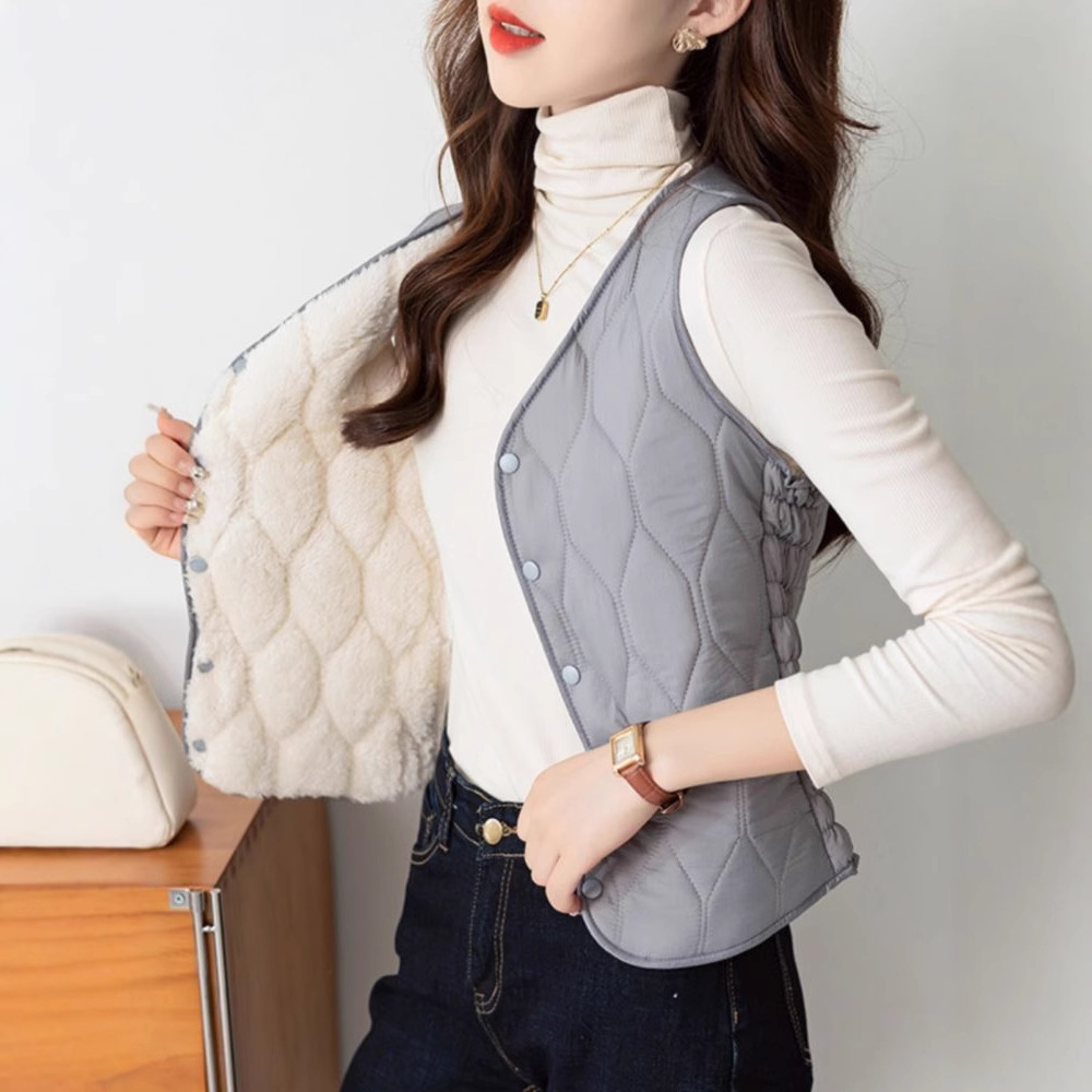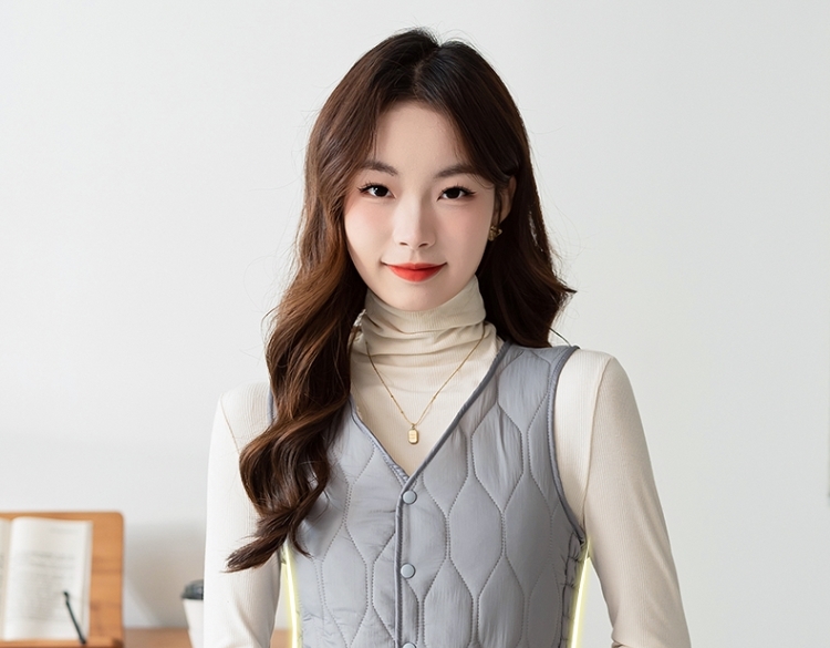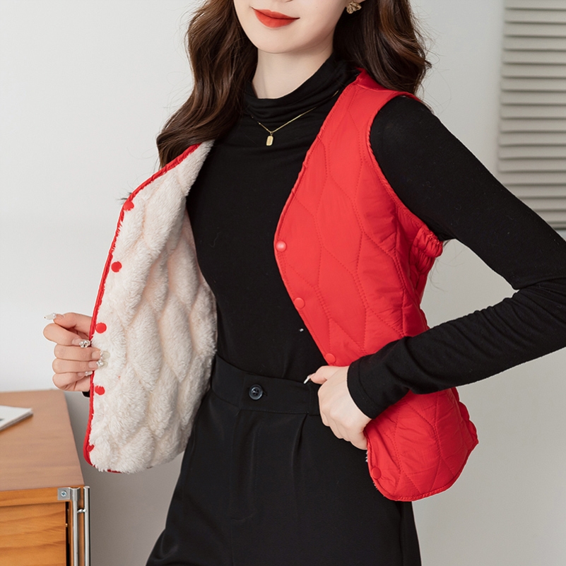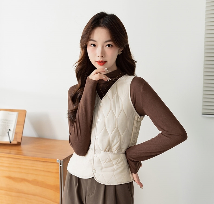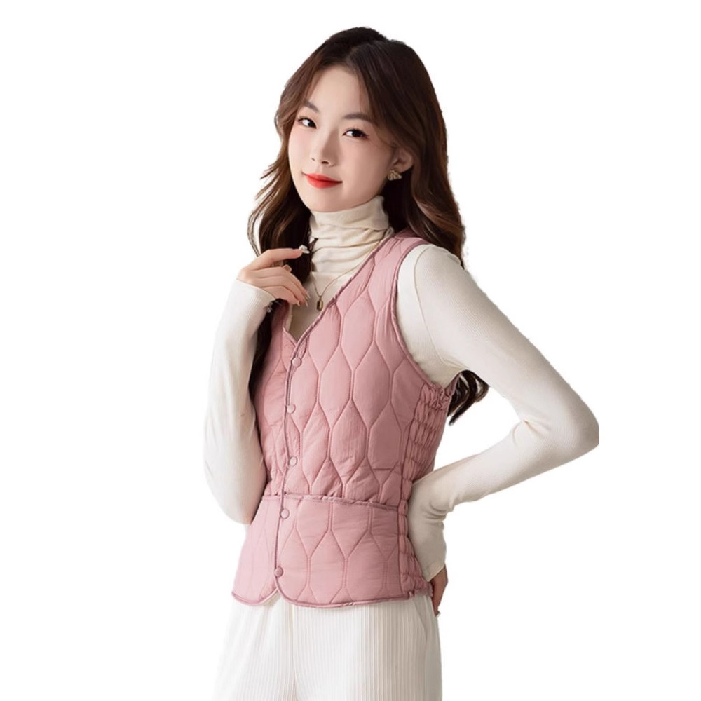 Осенью и зимой новые пуховые теплые пуховые хлопчатобумажные жилеты женские тонкие жилеты короткие v-образные воротники