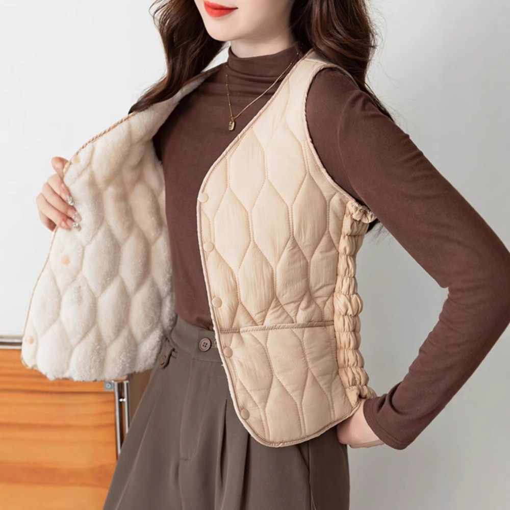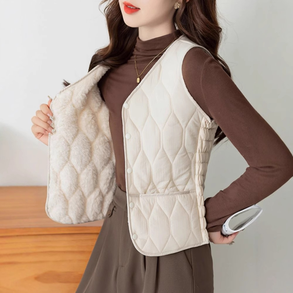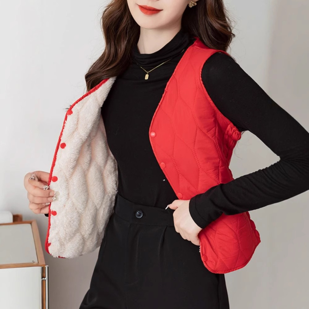 Осенью и зимой новые пуховые теплые пуховые хлопчатобумажные жилеты женские тонкие жилеты короткие v-образные воротники