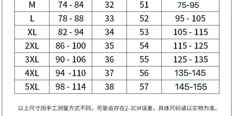 Рекомендуется М 37.5-47.5kg; Рекомендации L 47.5-52.5kg; Рекомендации XL 52.5-57.5kg; Рекомендуется 2XL 57.5-62.5kg; Рекомендуется 3XL 62.5-67.5kg; Рекомендуется 4XL 67.5-72.5kg; Рекомендуется 5XL 72.5-77.5kg