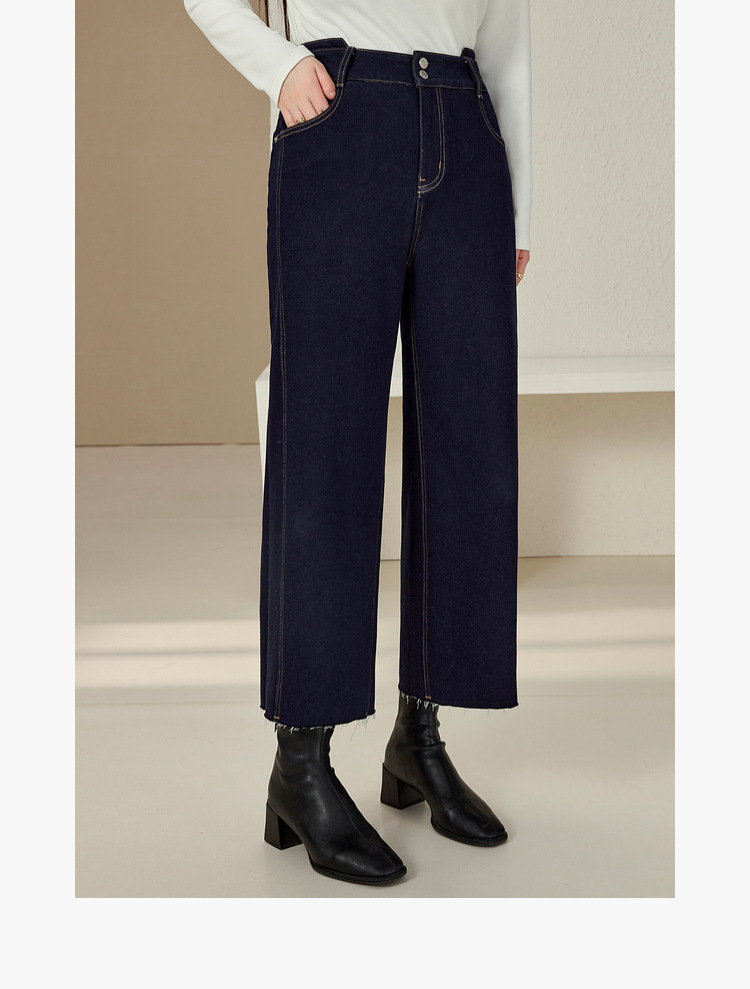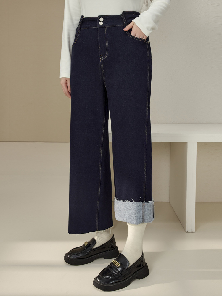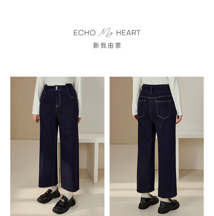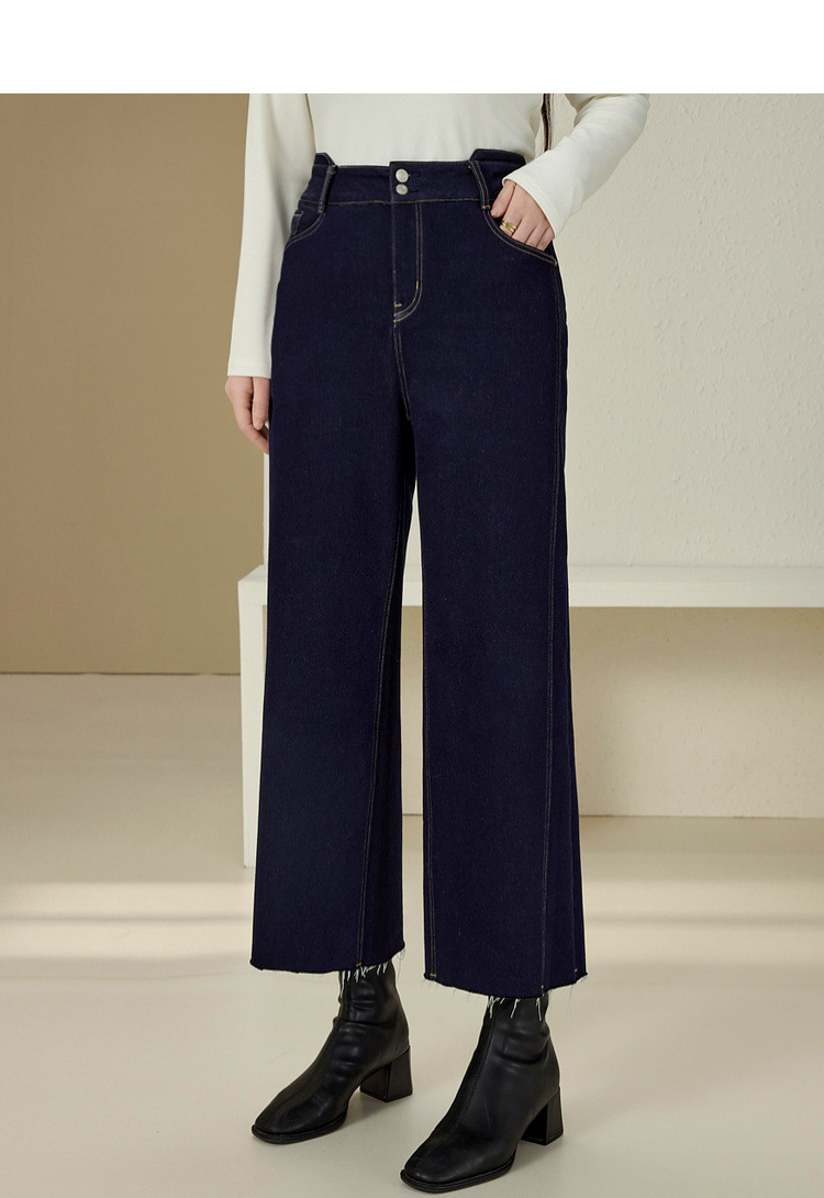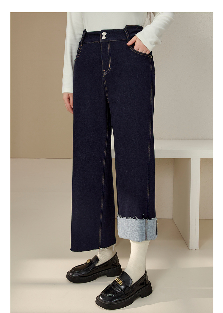 Сплейное шоу большой размер женской одежды простой пригородной темно-синей волосы с пряными волосами тонкие джинсы жирный mm2024 зимний новый стиль