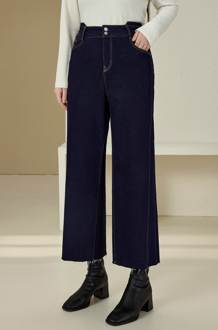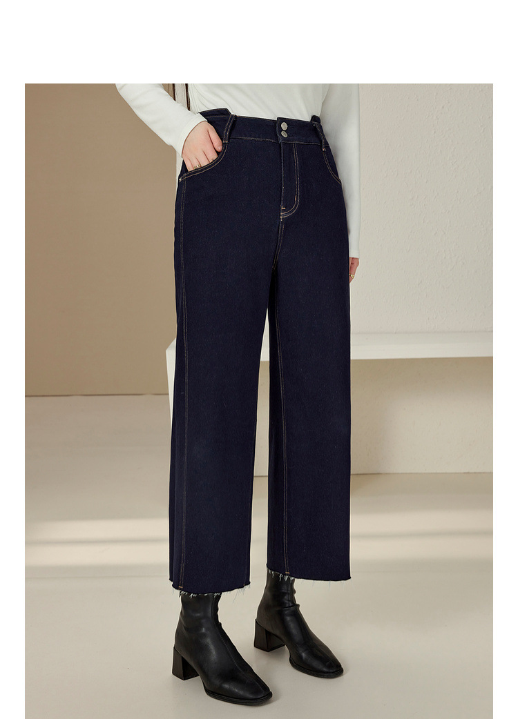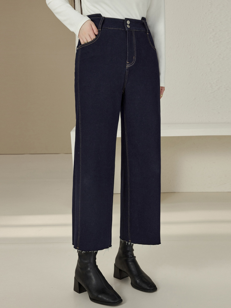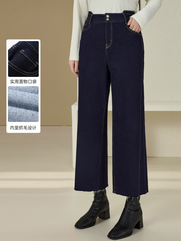 Сплейное шоу большой размер женской одежды простой пригородной темно-синей волосы с пряными волосами тонкие джинсы жирный mm2024 зимний новый стиль