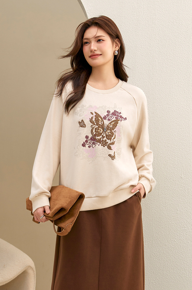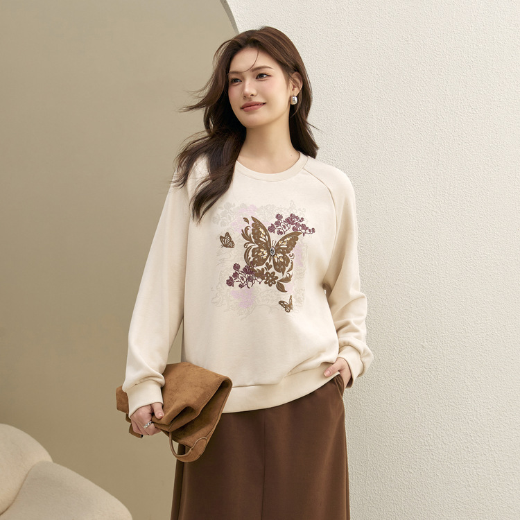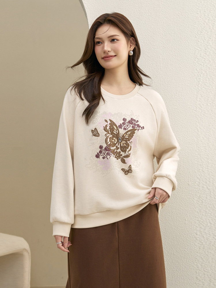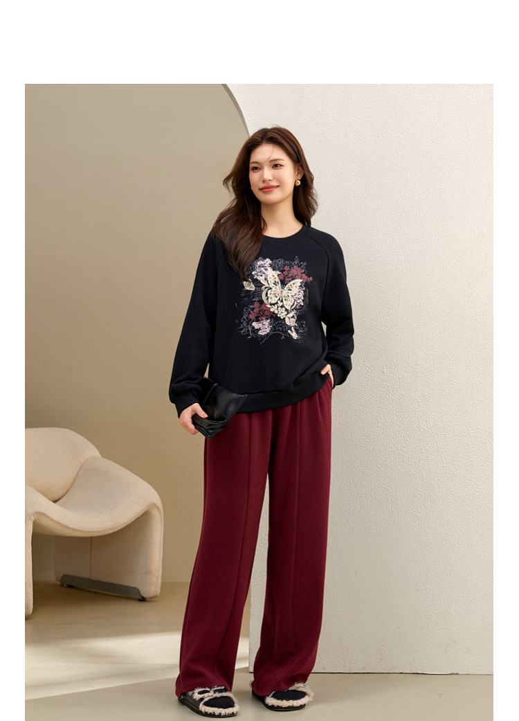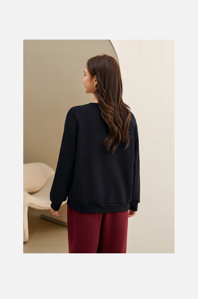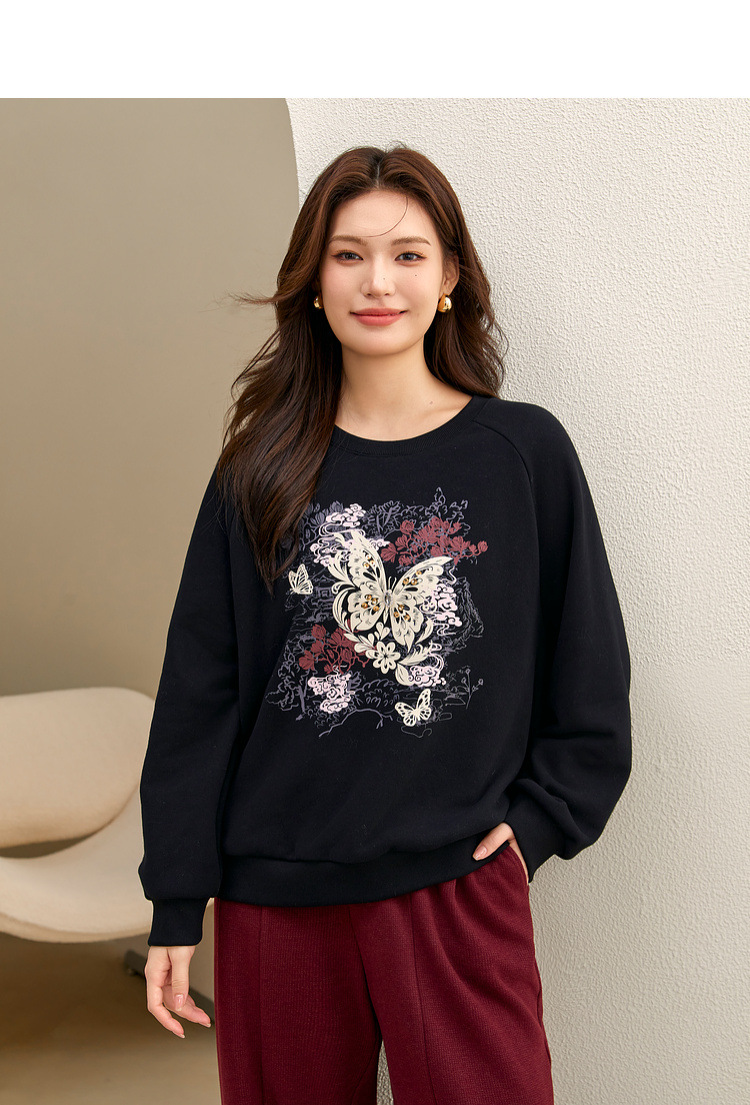 [Ленивый свободный свитер с плечами] Блэк-шоу большой размер женский повседневный туник с круглым вырезом жирный mm2024 зимний новый