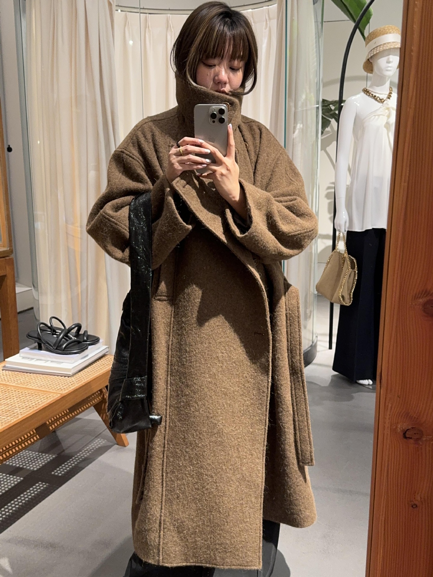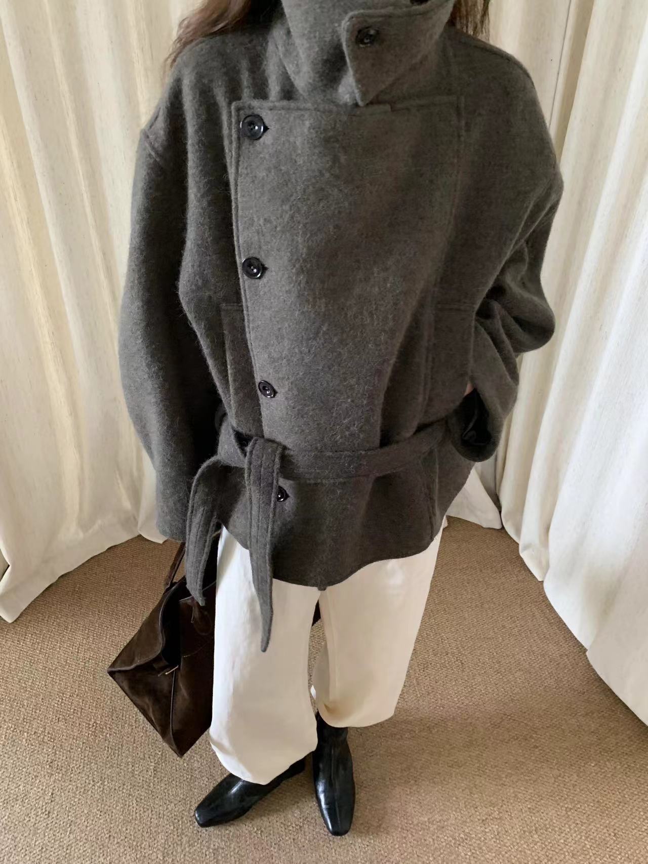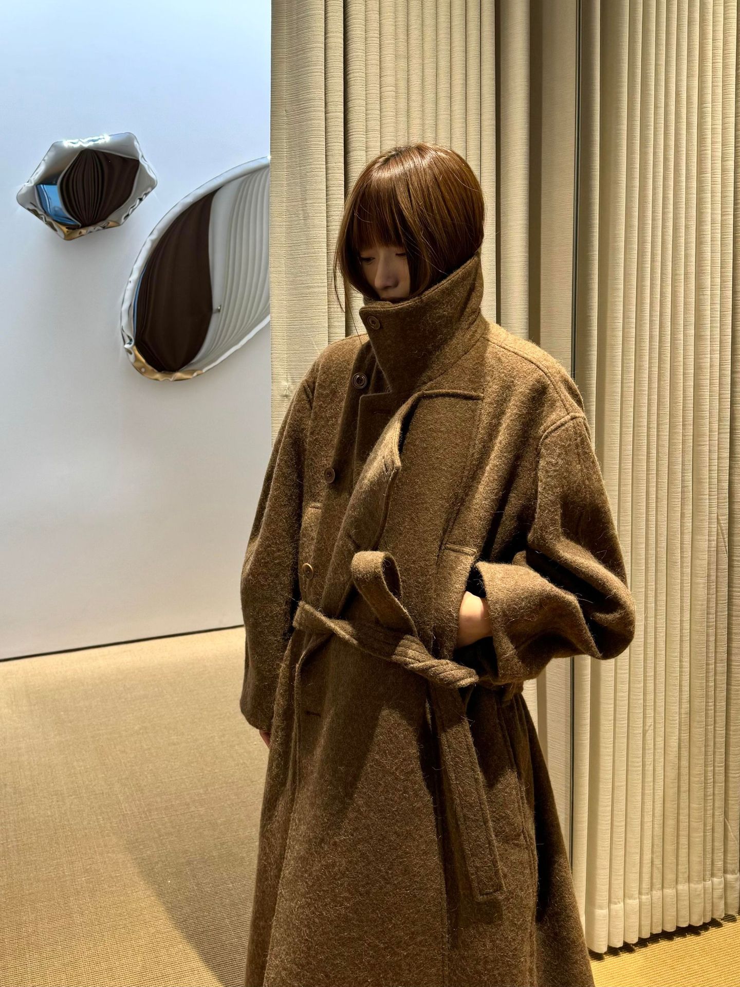 Кашемировое пальто с воротником-стойкой и завязками в стиле Ян Мэй и Ким Мин-ки для женщин, новая зимняя расцветка, стиль «old money», утепленный халат-куртка.