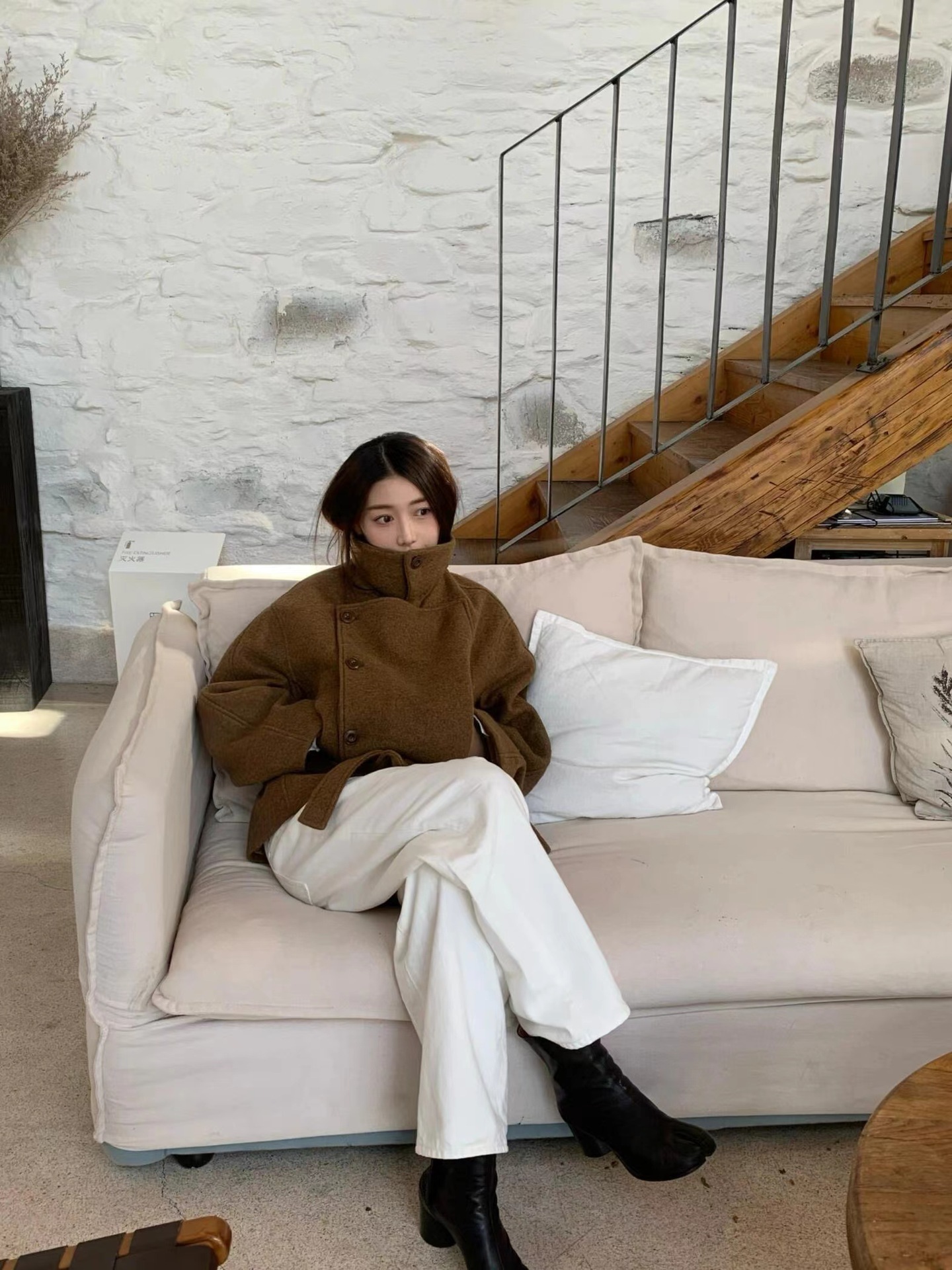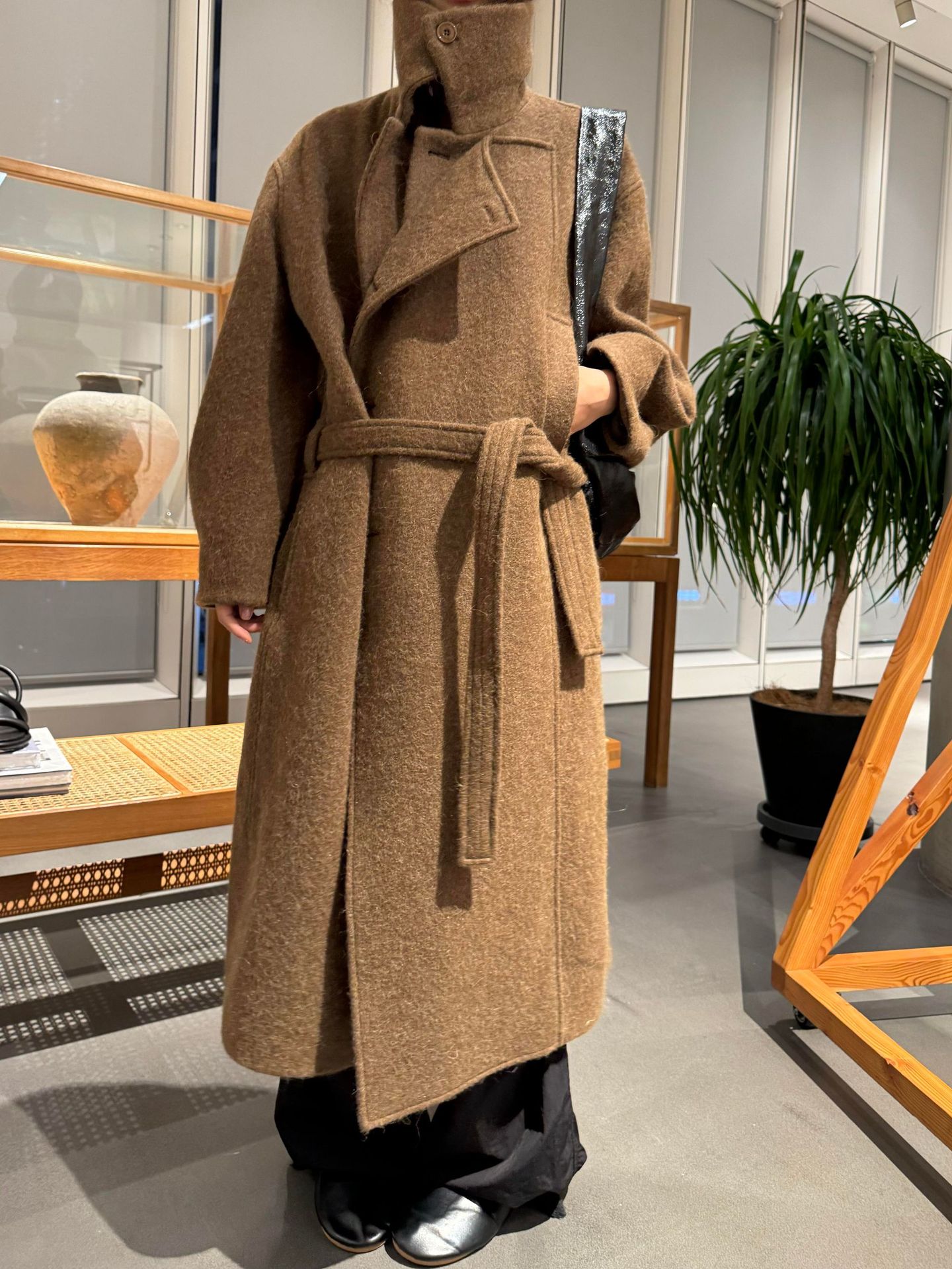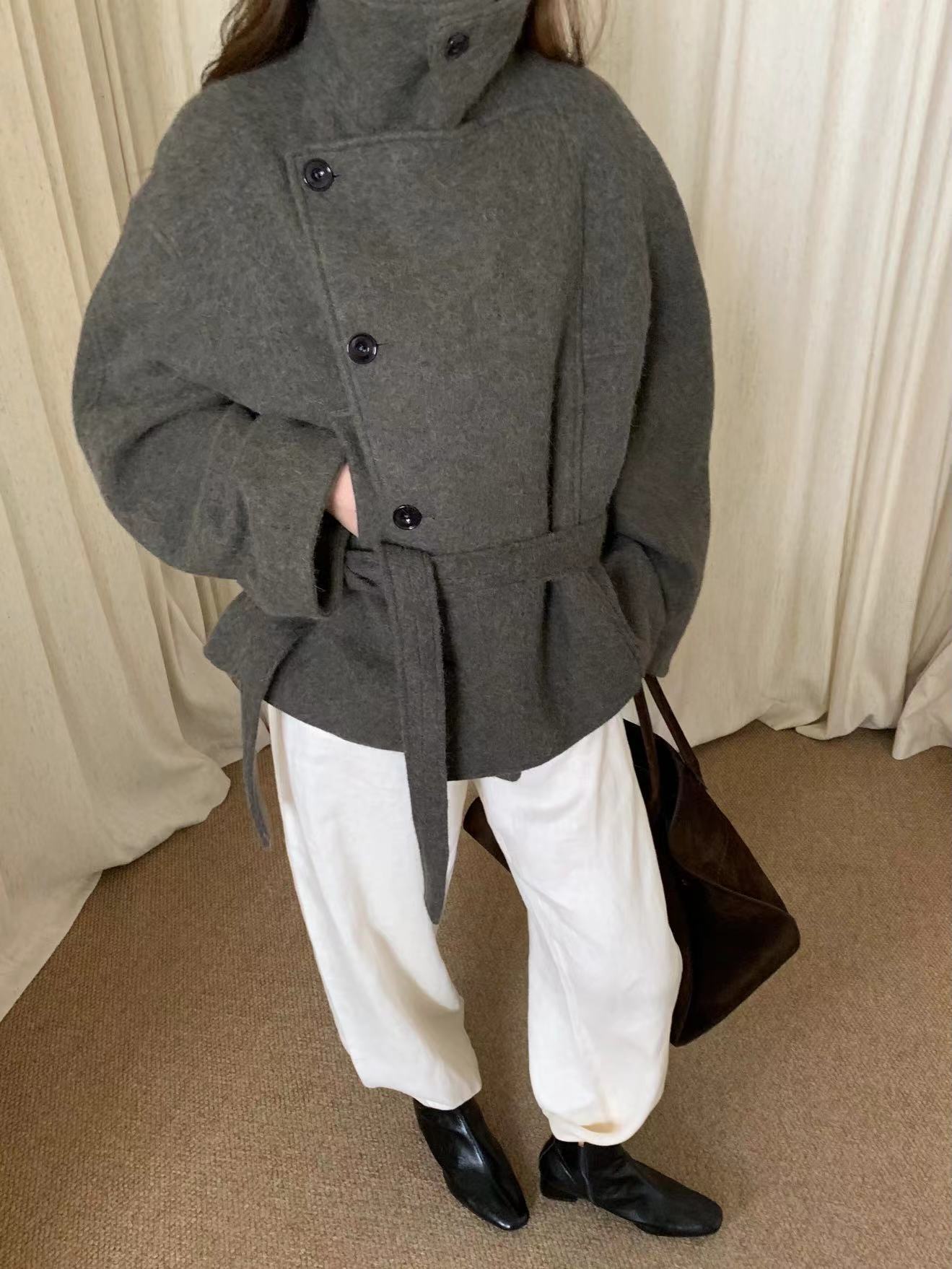 Кашемировое пальто с воротником-стойкой и завязками в стиле Ян Мэй и Ким Мин-ки для женщин, новая зимняя расцветка, стиль «old money», утепленный халат-куртка.