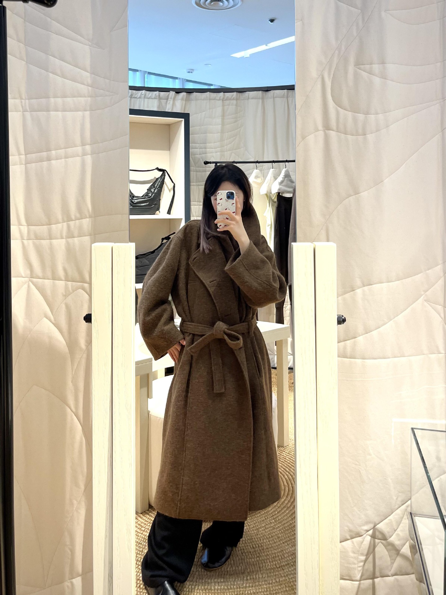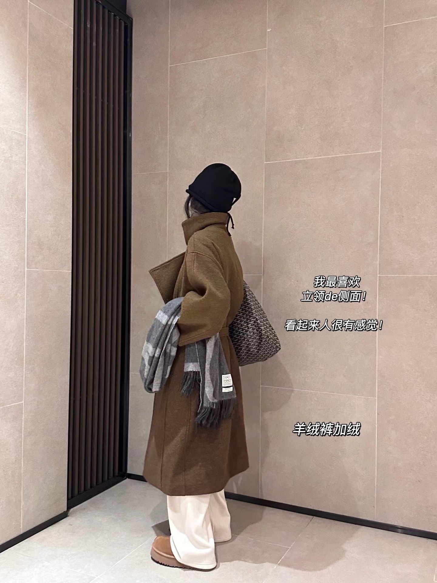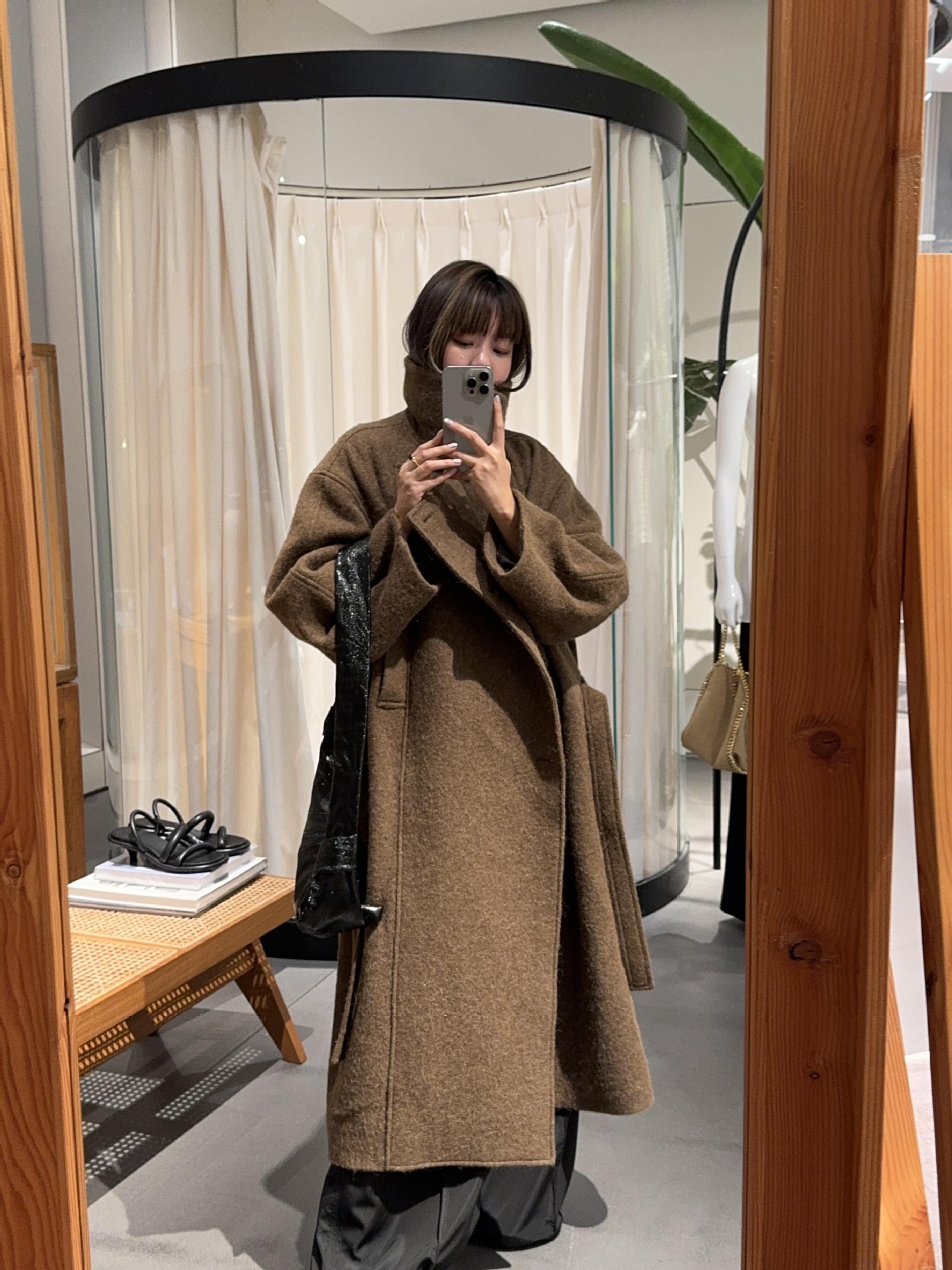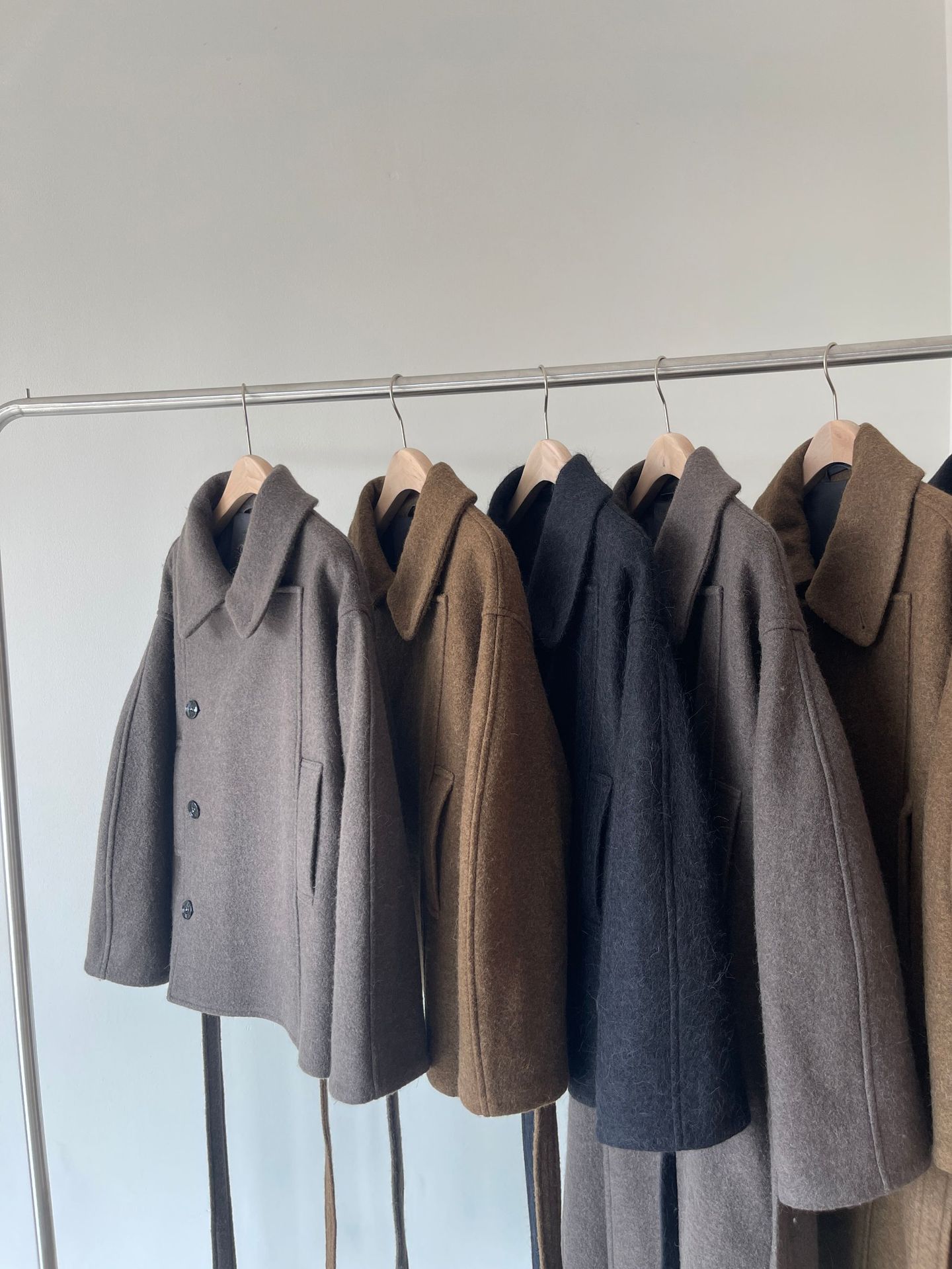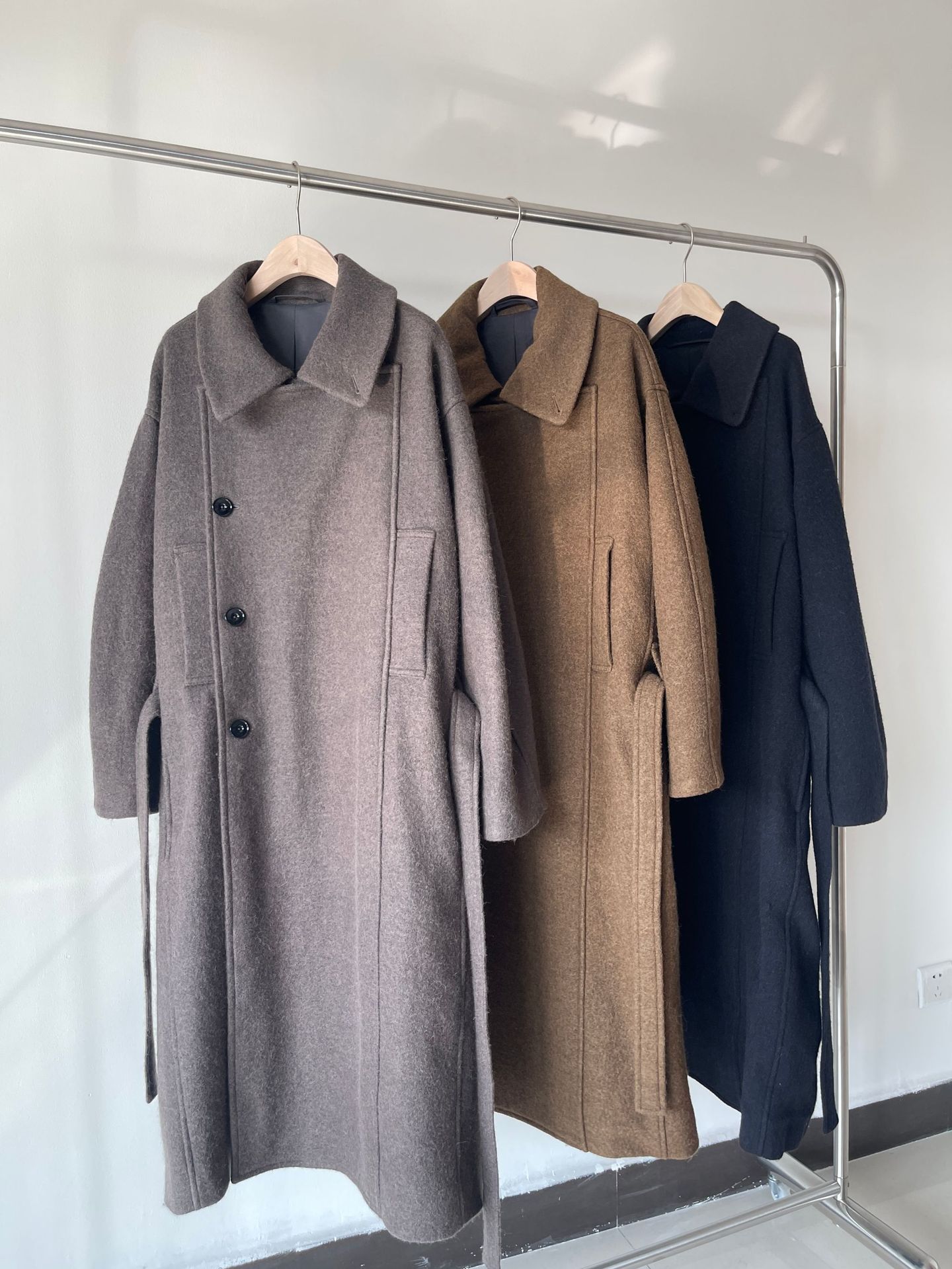 Коричневый длинный стиль (индивидуальный заказ тяжелого веса); Короткий стиль коричневого цвета (50% альпака + 50% шерсть); Черный короткий фасон (50% альпака + 50% австралийская шерсть); Новый цвет: хаки серо-зеленый (50% альпака + 50% шерсть); Новый цвет: хаки, серо-зеленый, удлиненный фасон (50% альпака + 50% шерсть); Черное длинное пальто (50% шерсть альпаки + 50% австралийская шерсть)