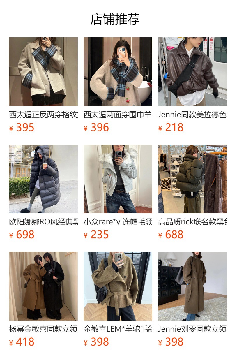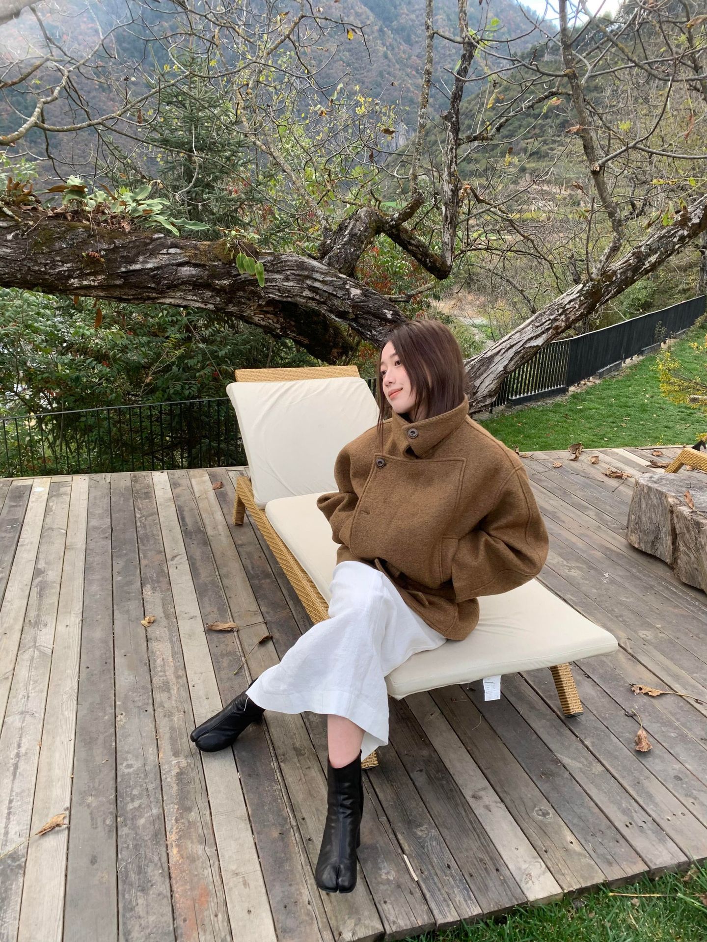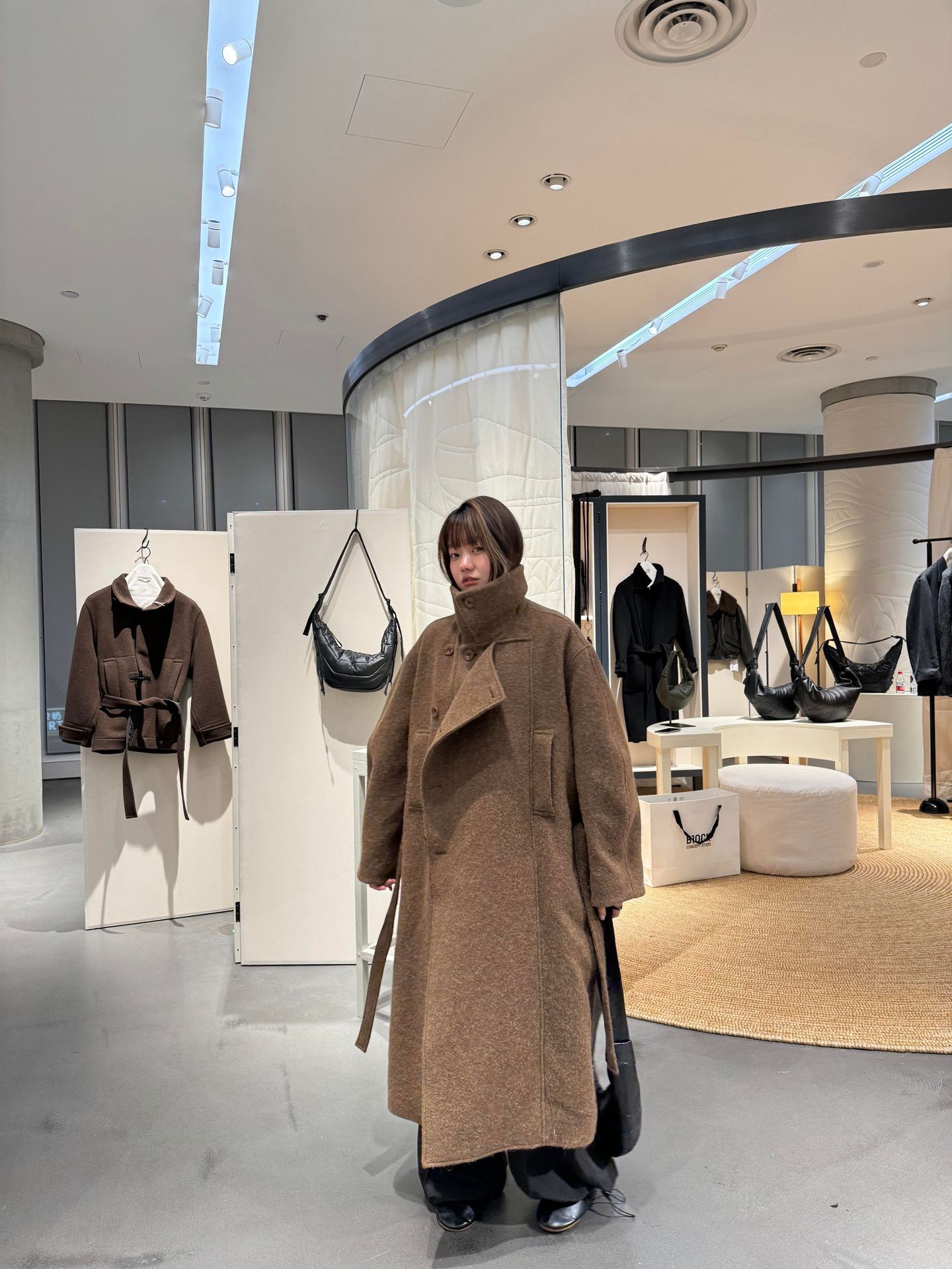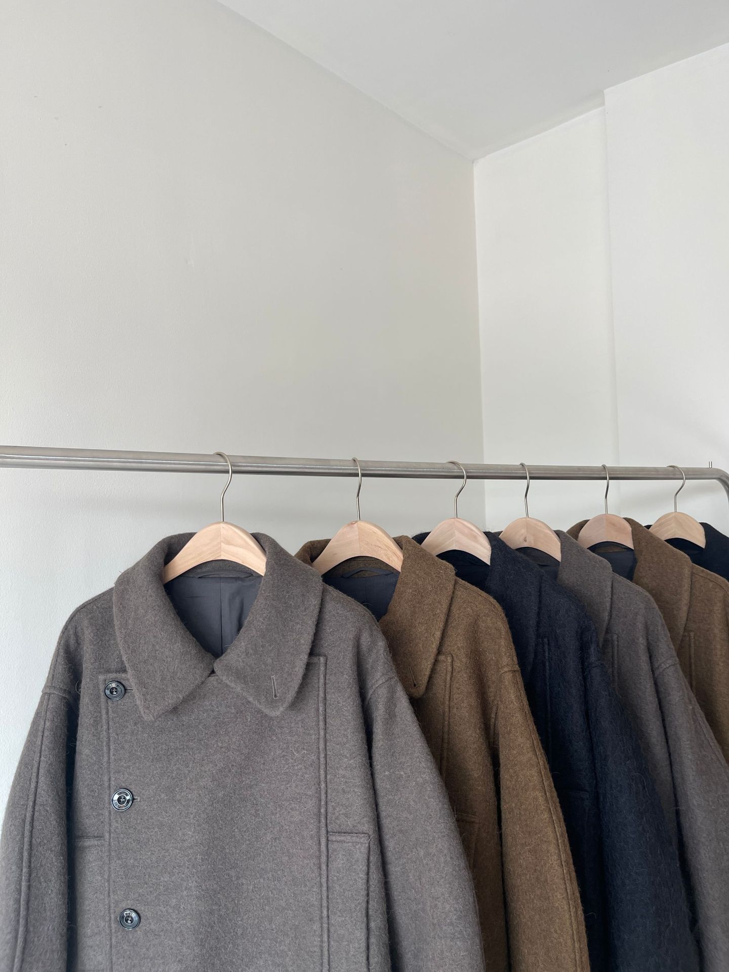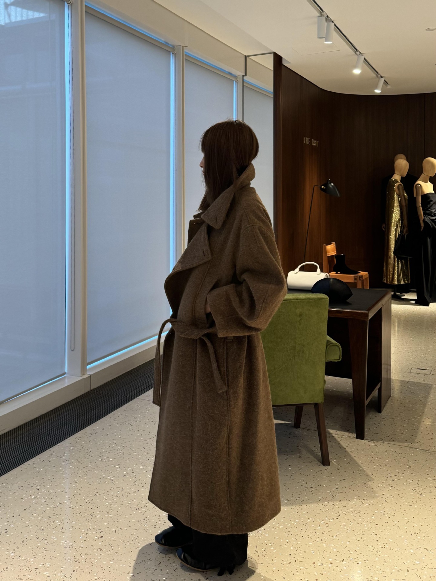 Коричневый длинный стиль (индивидуальный заказ тяжелого веса); Короткий стиль коричневого цвета (50% альпака + 50% шерсть); Черный короткий фасон (50% альпака + 50% австралийская шерсть); Новый цвет: хаки серо-зеленый (50% альпака + 50% шерсть); Новый цвет: хаки, серо-зеленый, удлиненный фасон (50% альпака + 50% шерсть); Черное длинное пальто (50% шерсть альпаки + 50% австралийская шерсть)