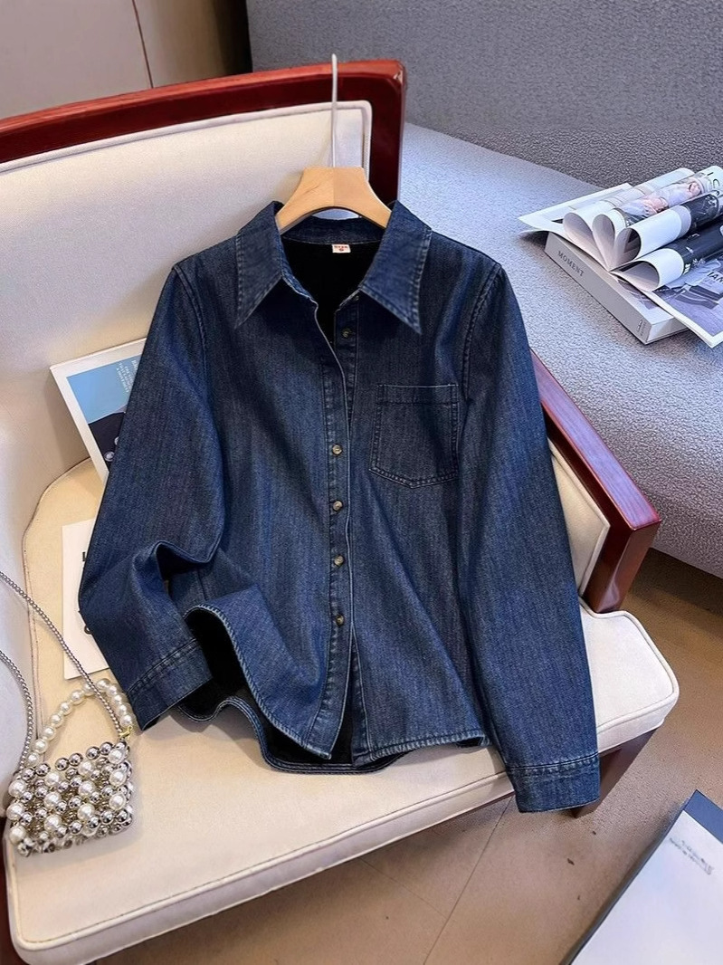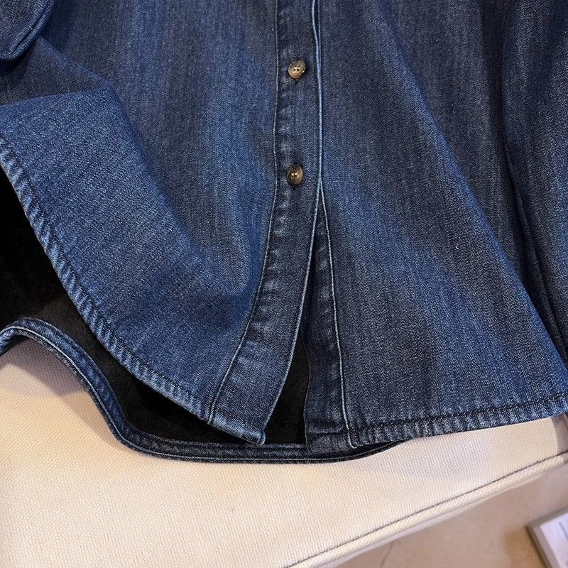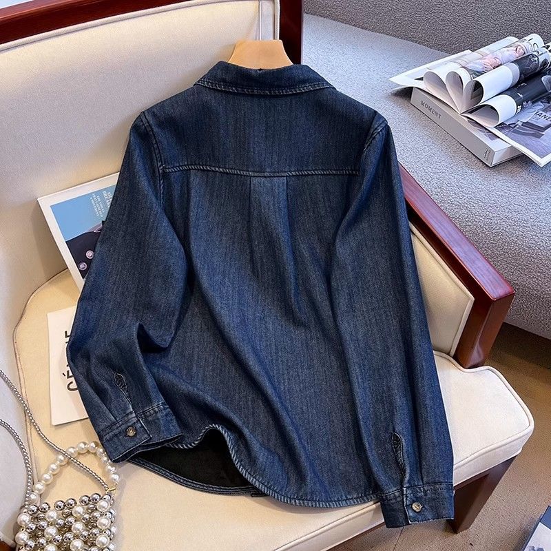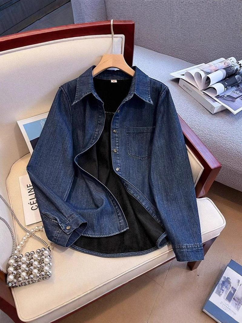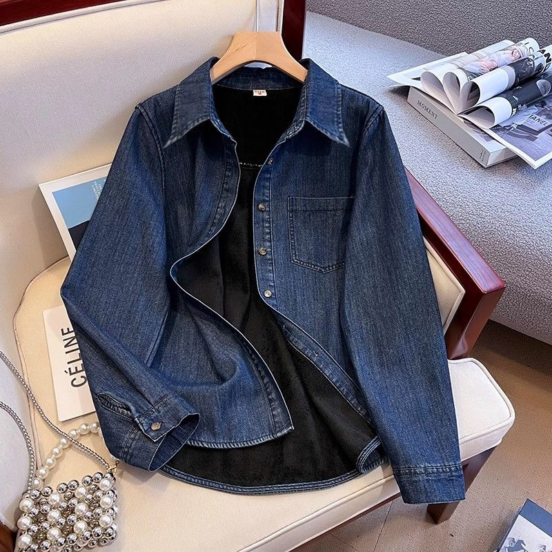 Плюшевый толстый темно-синий мойка джинсовая рубашка женская куртка зимой