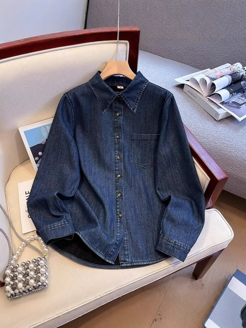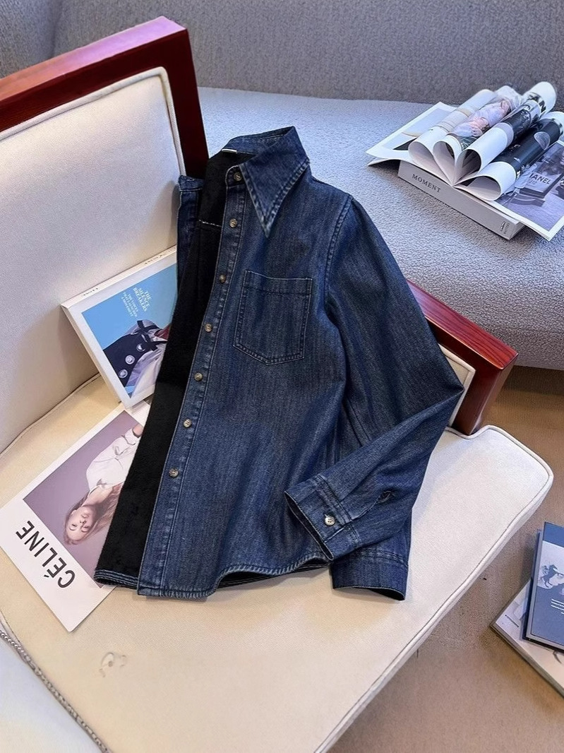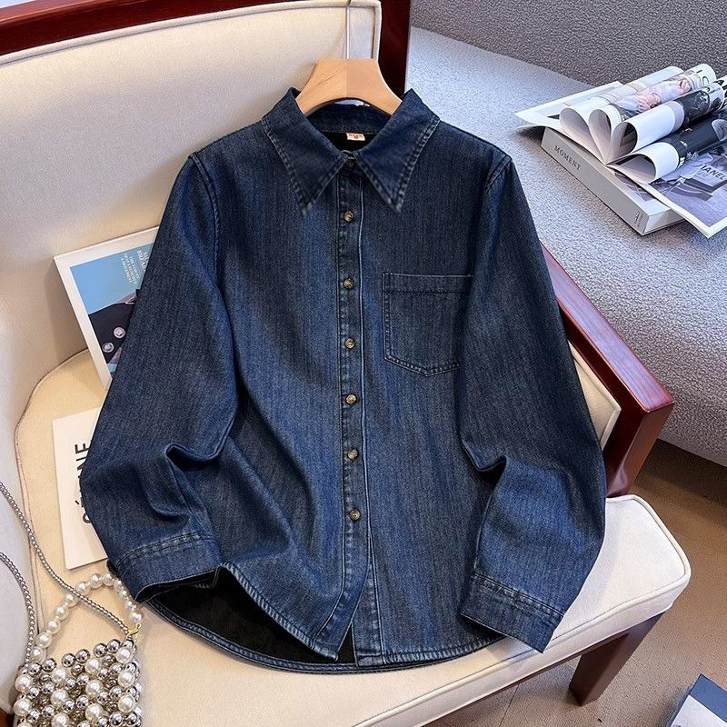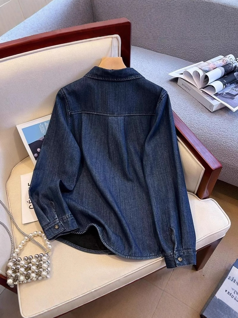 Плюшевый толстый темно-синий мойка джинсовая рубашка женская куртка зимой