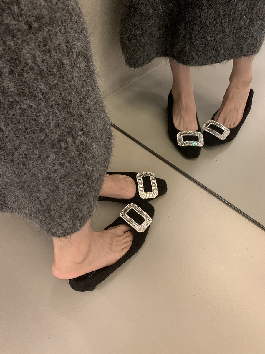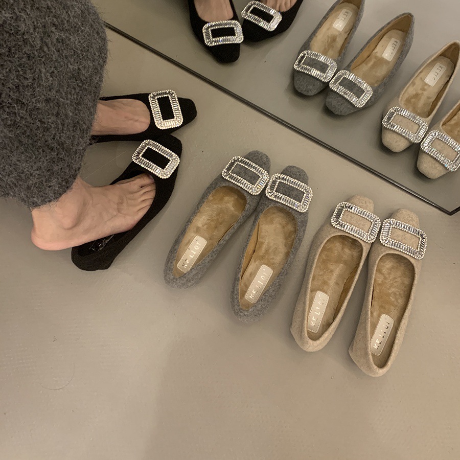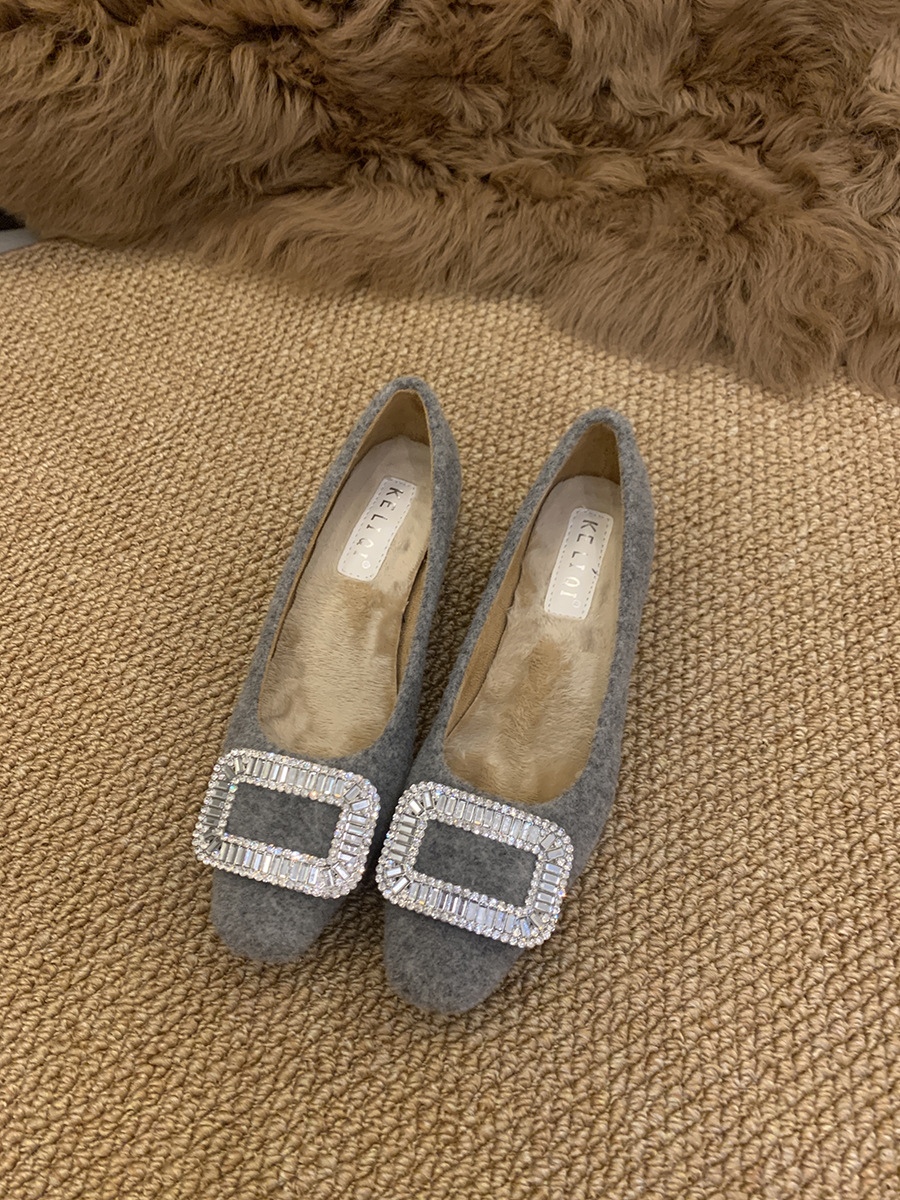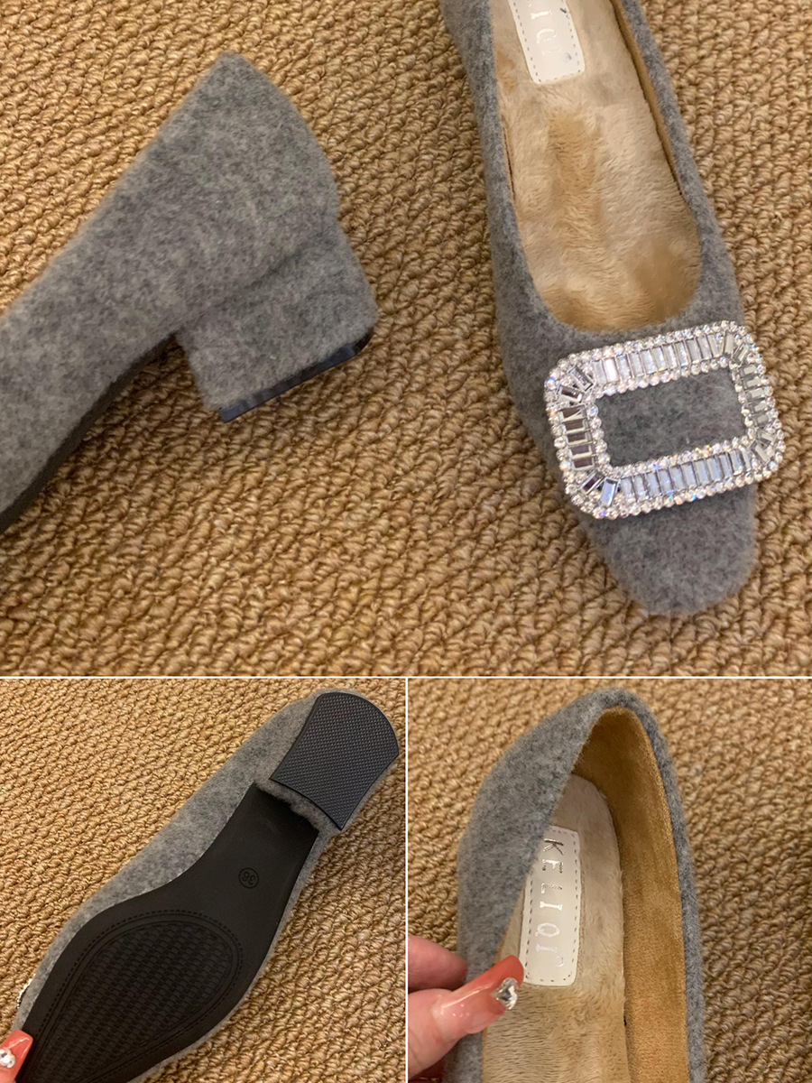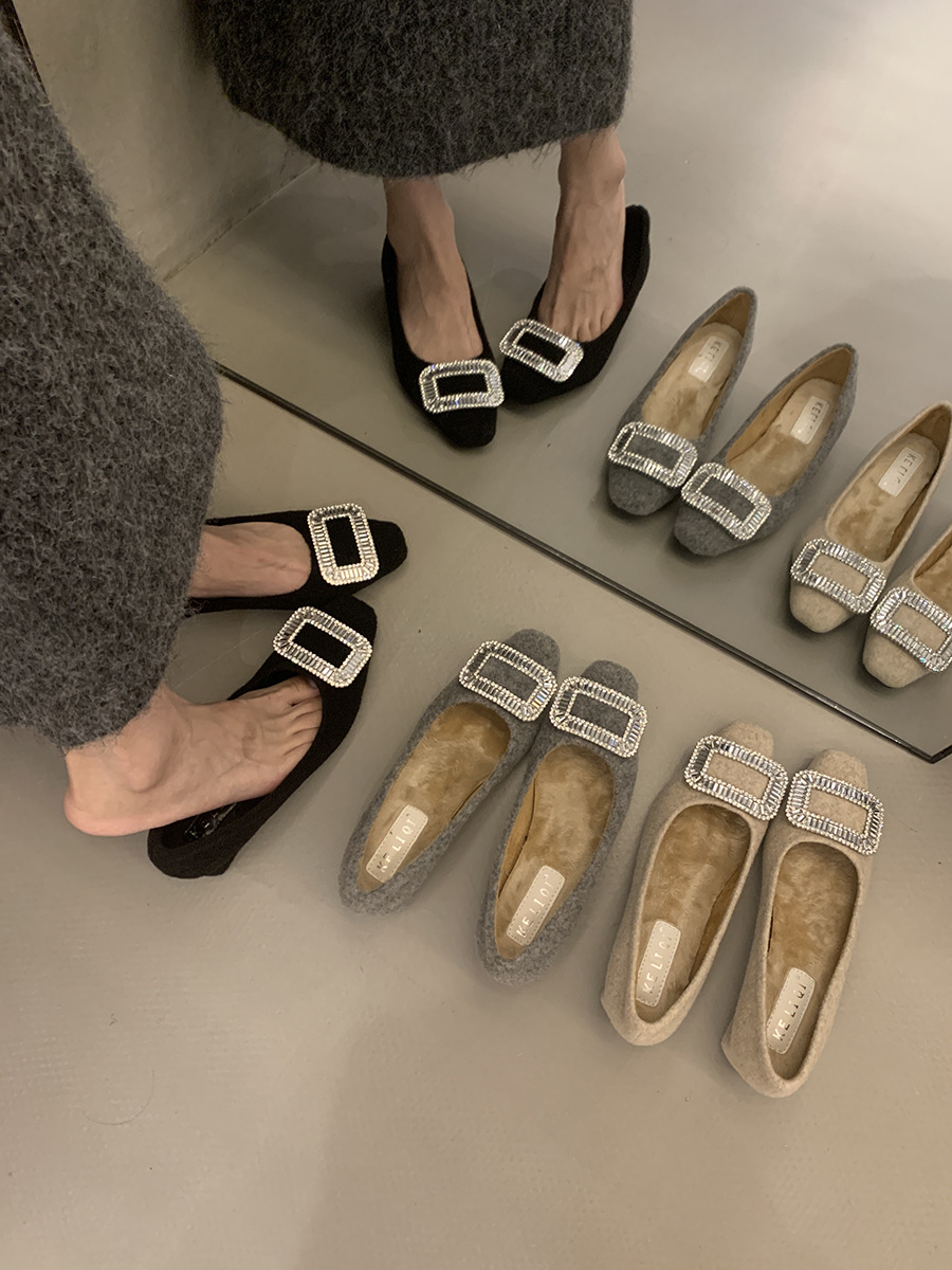 Толстые каблуки квадратные стразы одиночные туфли женские туфли 2024 новые осенние и зимние плюшевые меховые туфли французские темпераментные туфли