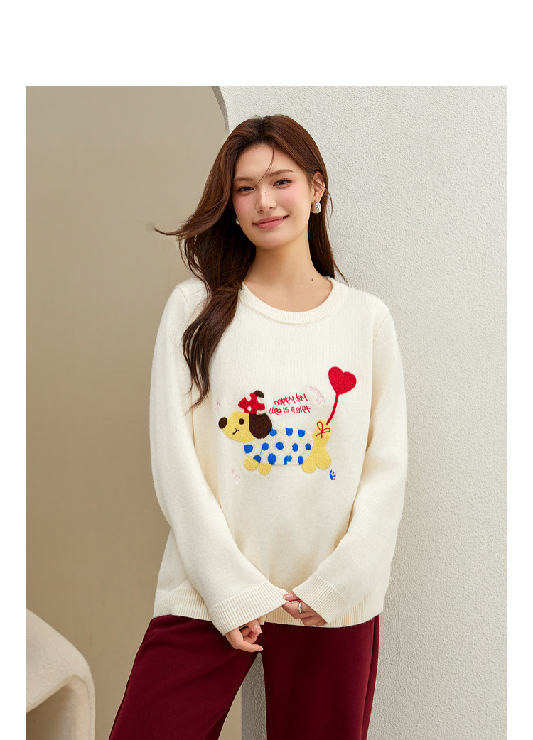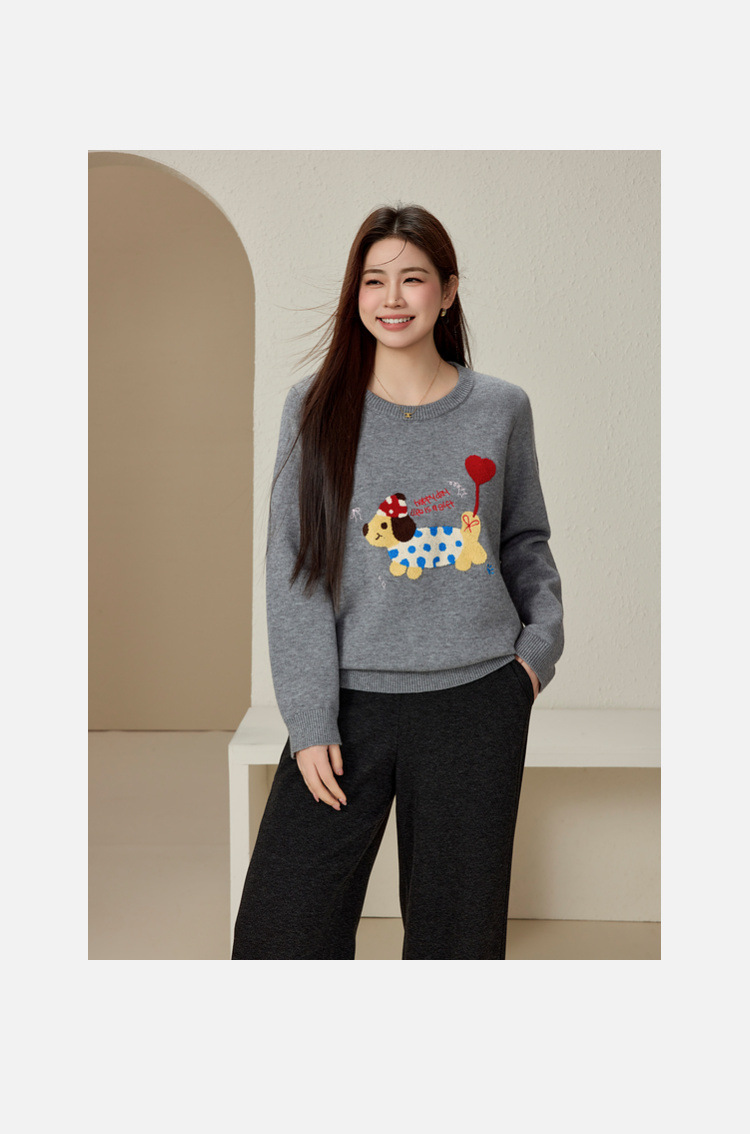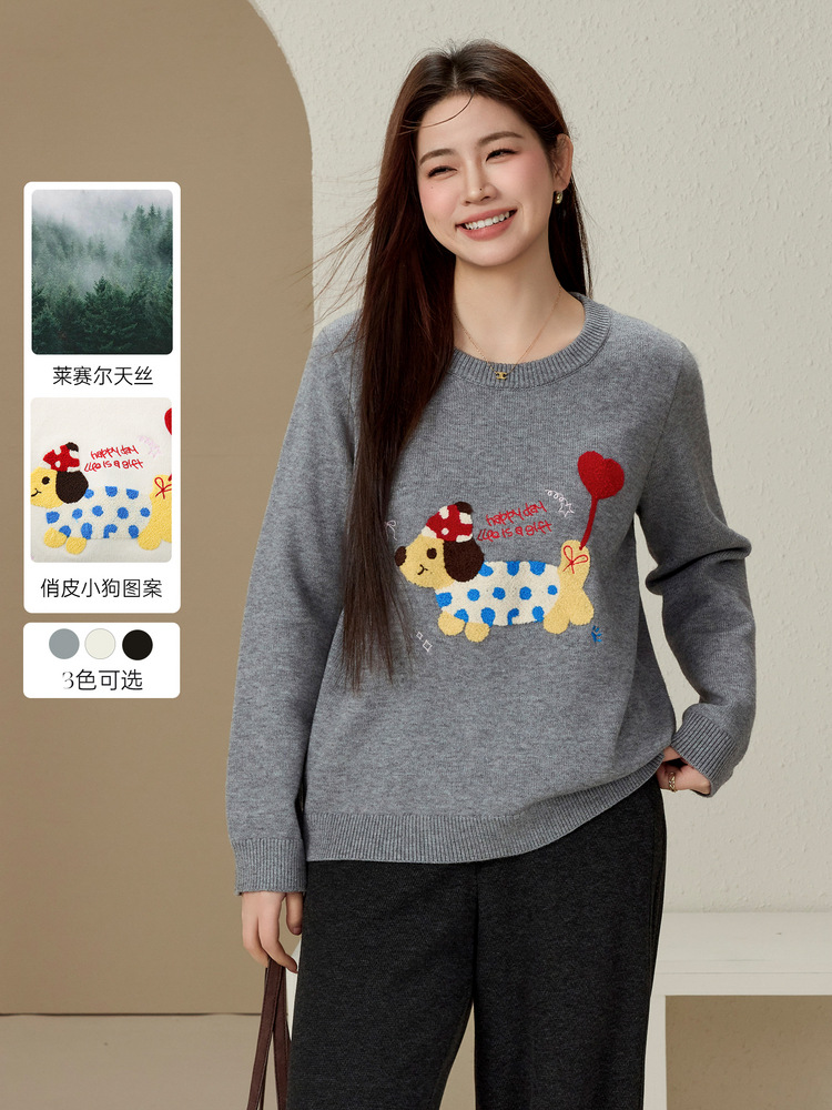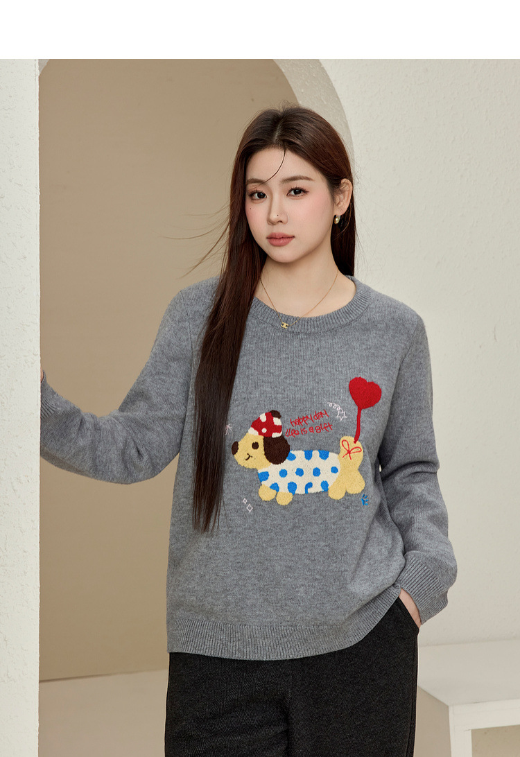 [Lycel ленивый мультфильм щенок с принтом мягкий клейкий свитер] Flagy Show большой размер женский толстый мм зимний новый