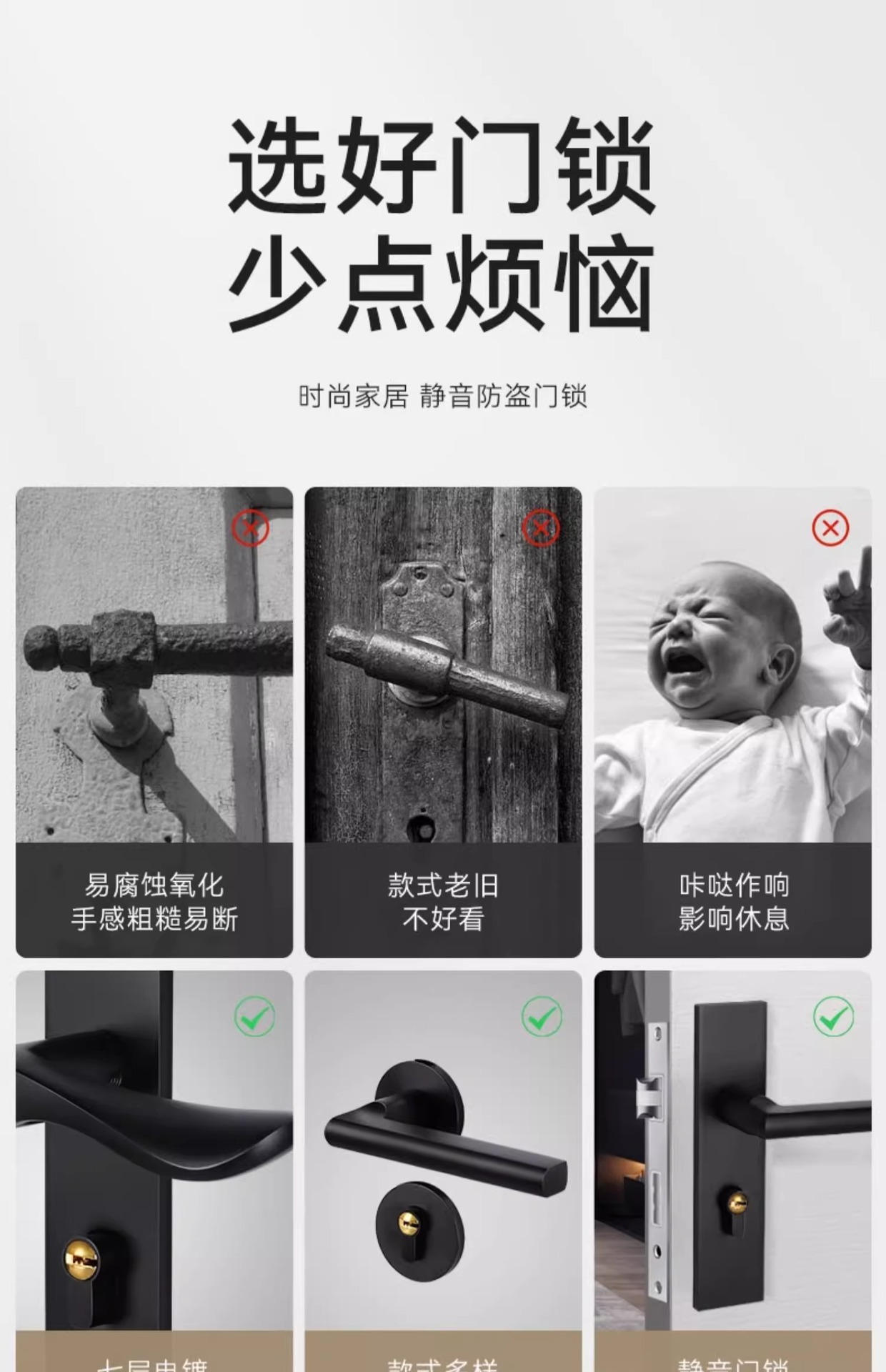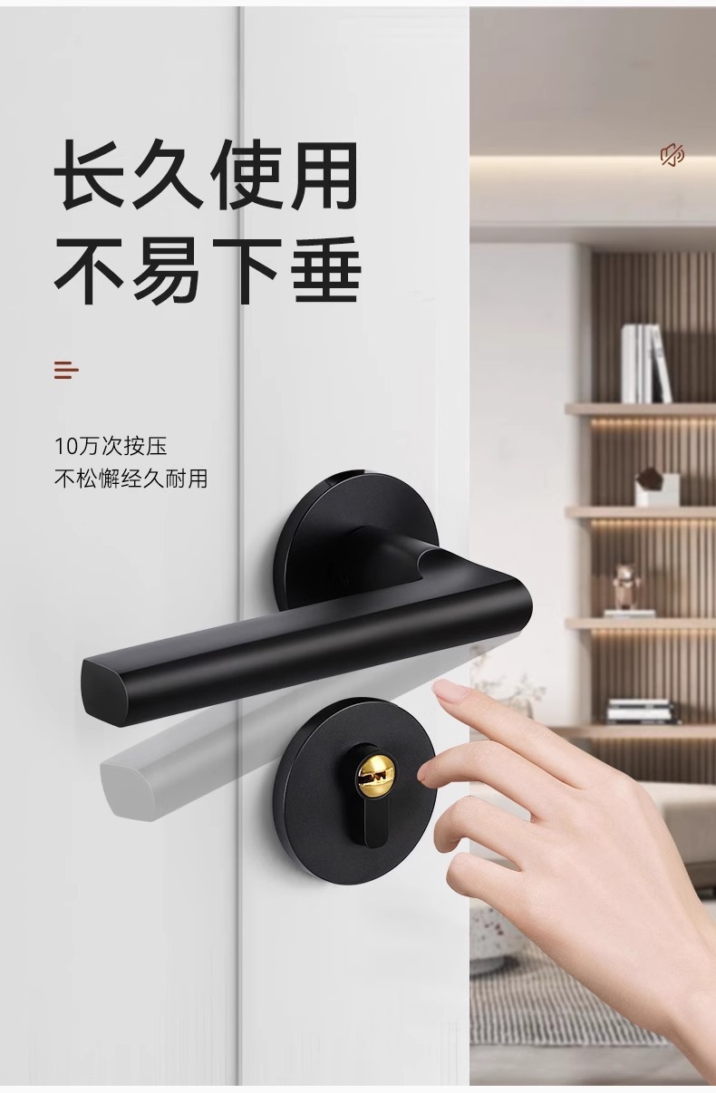 Сплитный замок черный внутренний замок двери для спальни бесшумный магнитный привод для домашнего использования простой массивный деревянный дверной замок