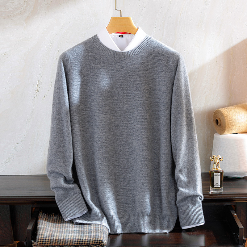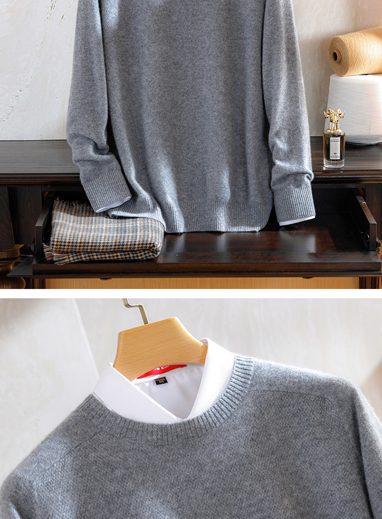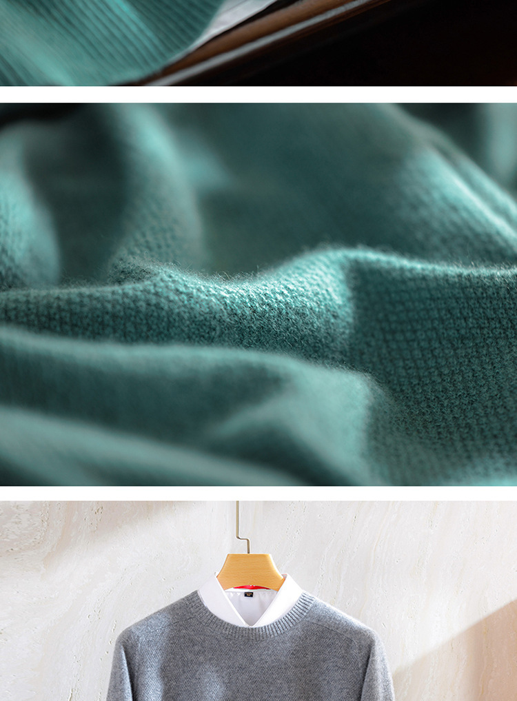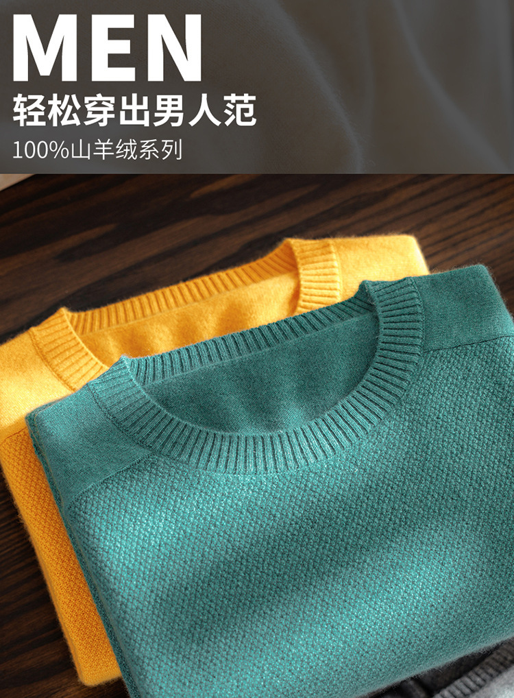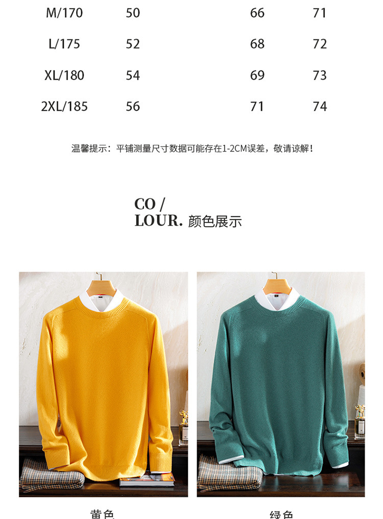 Осенний и зимний новый 100% чистый кашемировый свитер мужской круглый вырез сплошной цвет пуловер с длинными рукавами теплая мода трикотажная нижняя рубашка