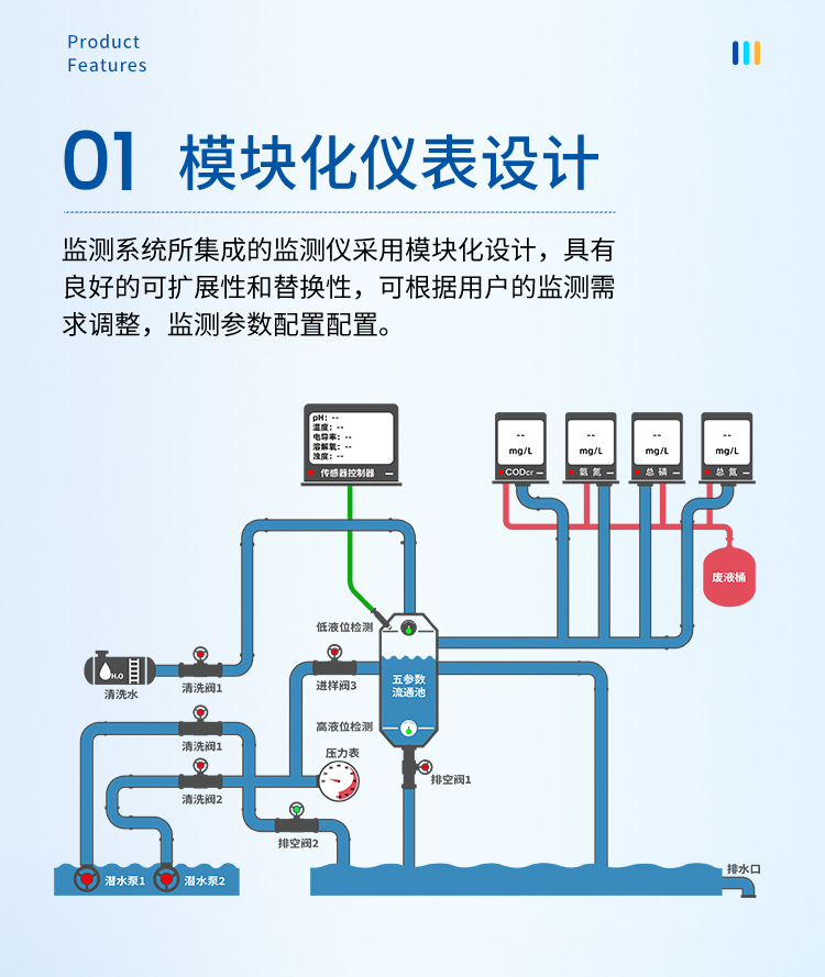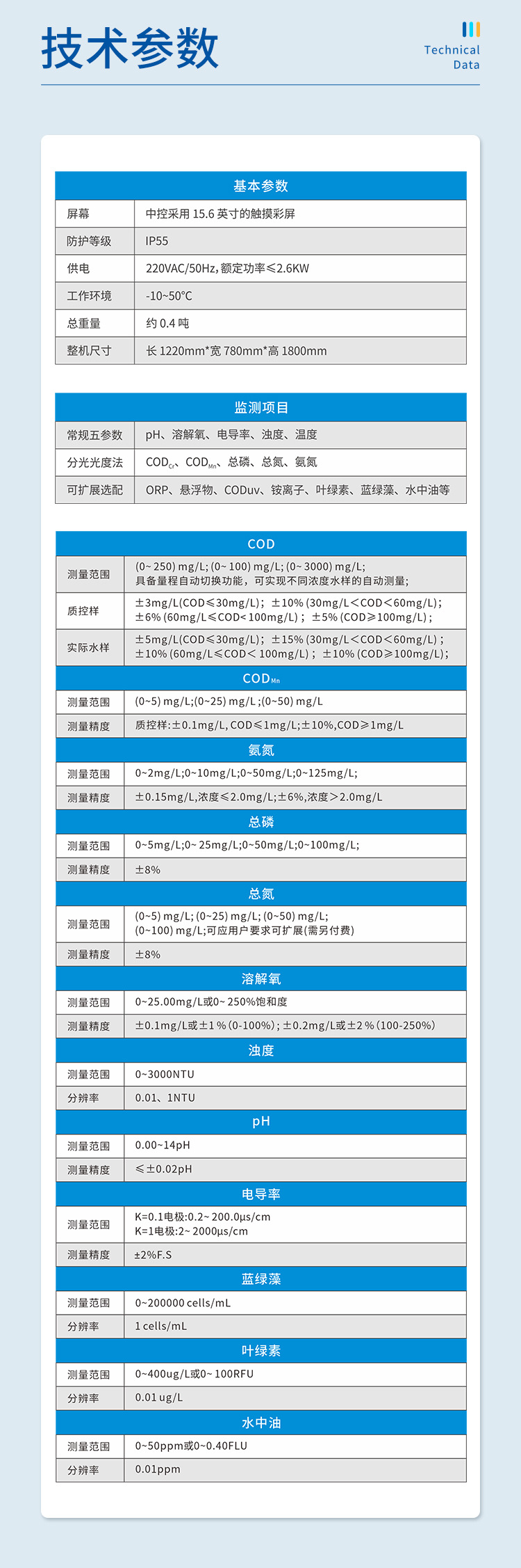 Стандартная комплектация: шкаф + система кондиционирования + блок сбора и распределения воды + встроенный блок управления); кодовый монитор LH-G8601; Монитор аммиачного азота LH-G8602; Монитор общего фосфора LH-G8603; Монитор общего азота LH-G8604; Датчик мутности; датчик pH; Датчик взвешенных веществ; Пожалуйста, свяжитесь со службой поддержки клиентов для индивидуальных проектов.
