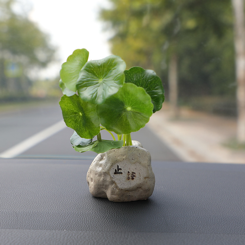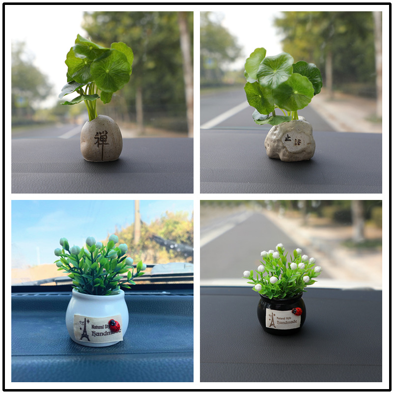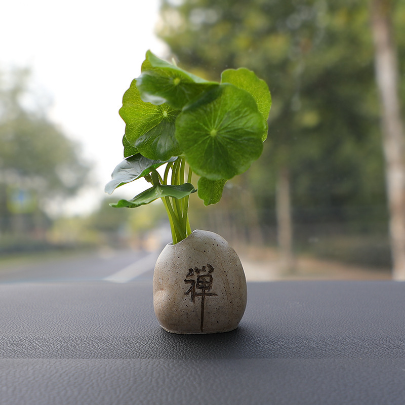 Автомобильный декоративный элемент «Тишина Дзен»: искусственный цветок, символизирующий удачу, и зеленое растение в горшке для украшения салона автомобиля