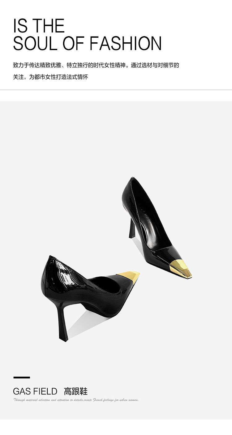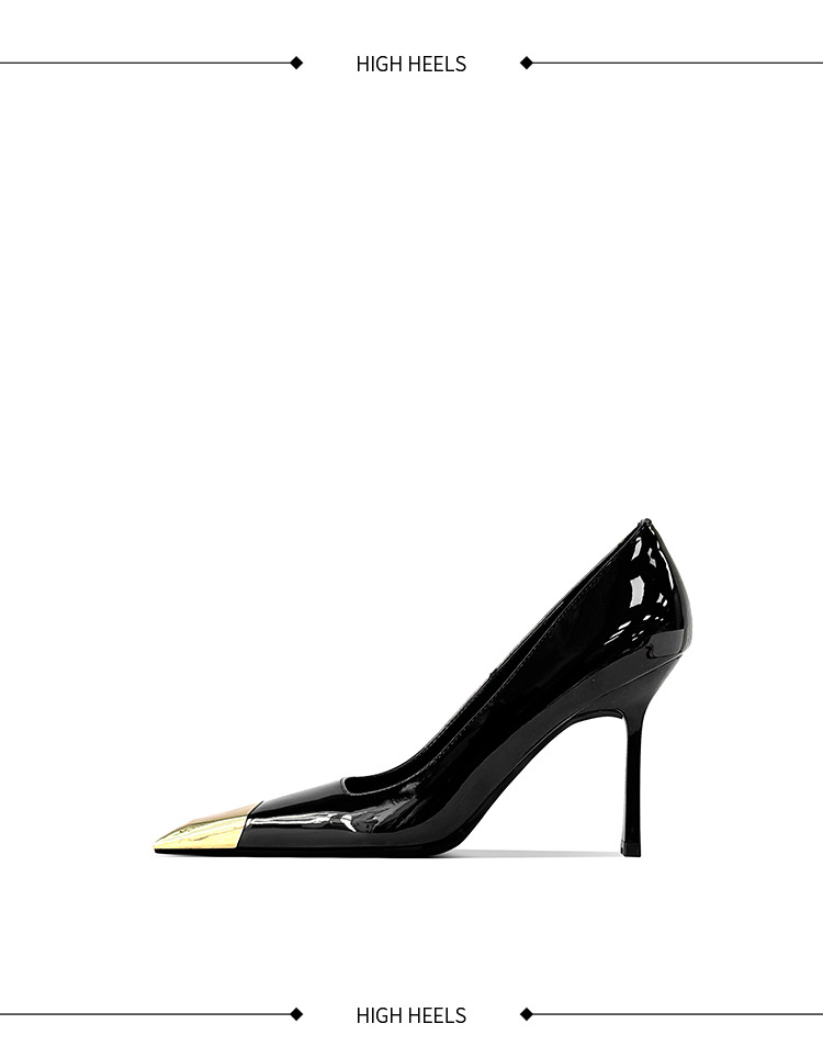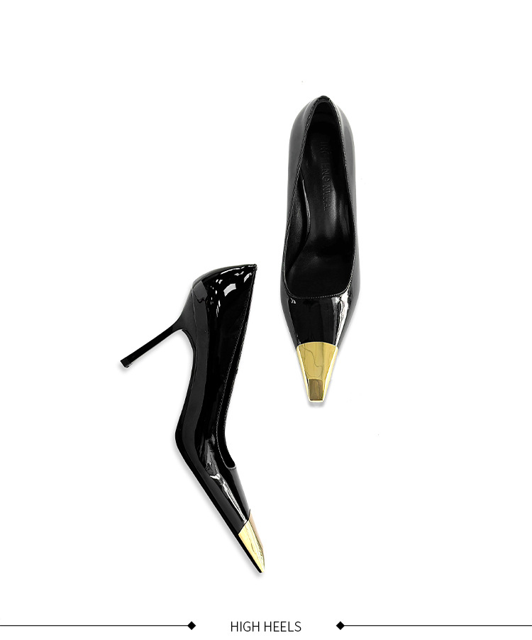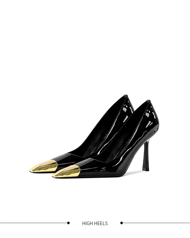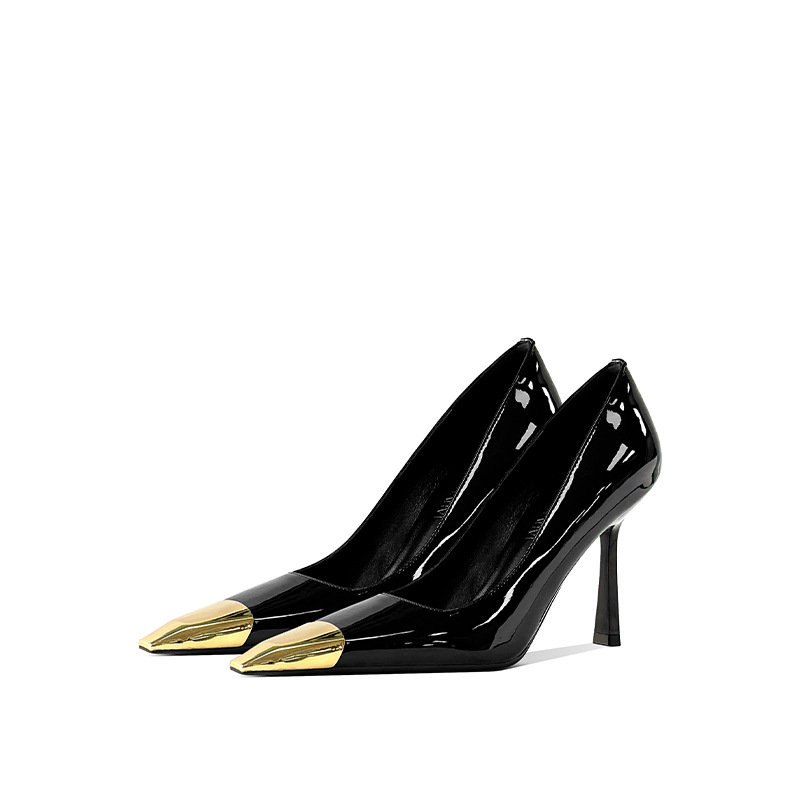В наличии: женские туфли на шпильке в стиле Ян Шулина, с металлическим квадратным носком, сексуальные, черные, из лакированной кожи, с металлическим носком.