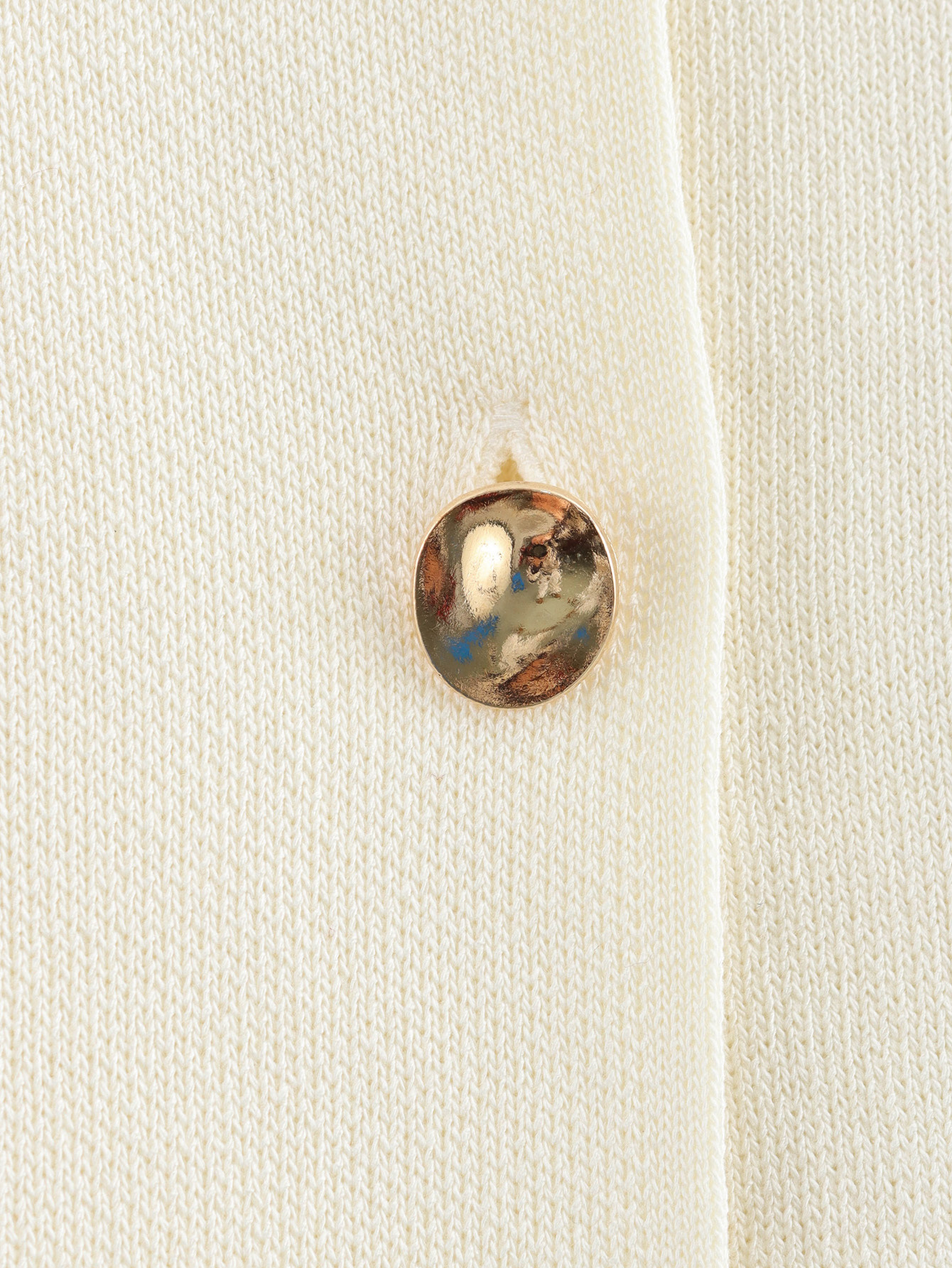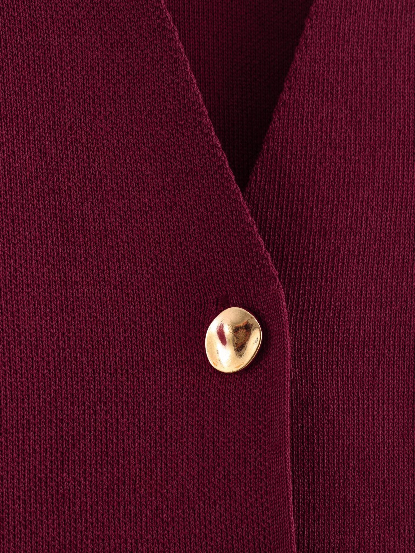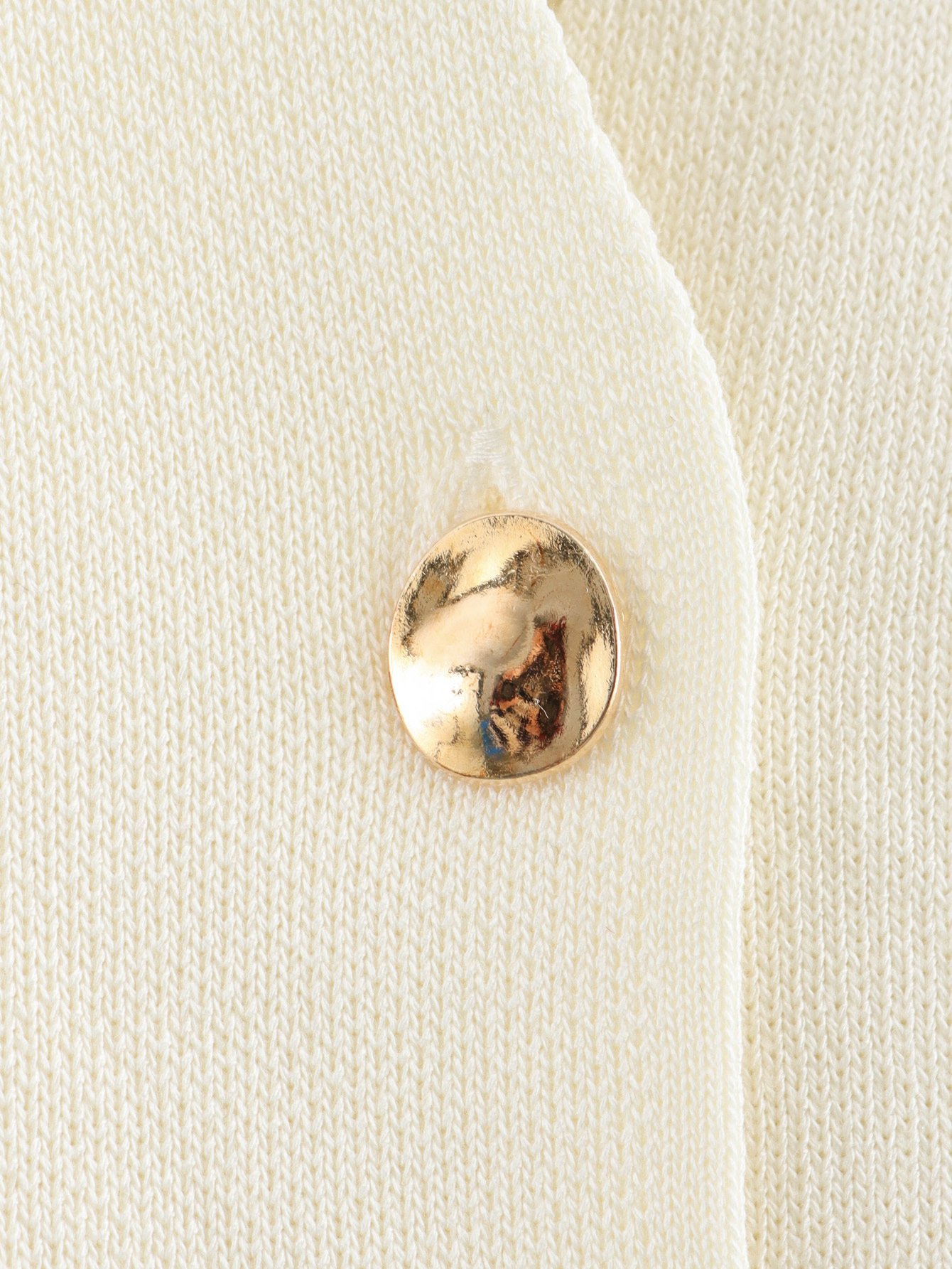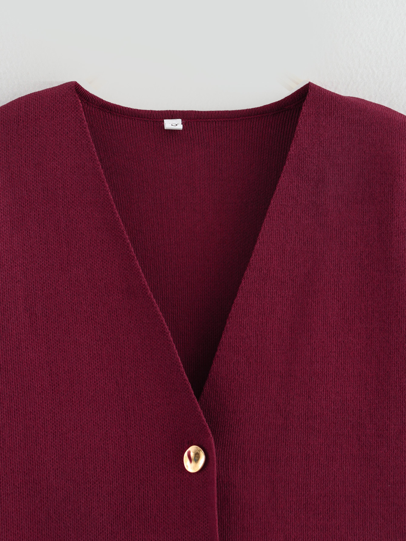 Оптовая продажа для внешней торговли: модный женский трикотаж с V-образным вырезом и золотыми пуговицами в европейском и американском стиле, лето 2025, короткий рукав, плоская вязка, модель D16110