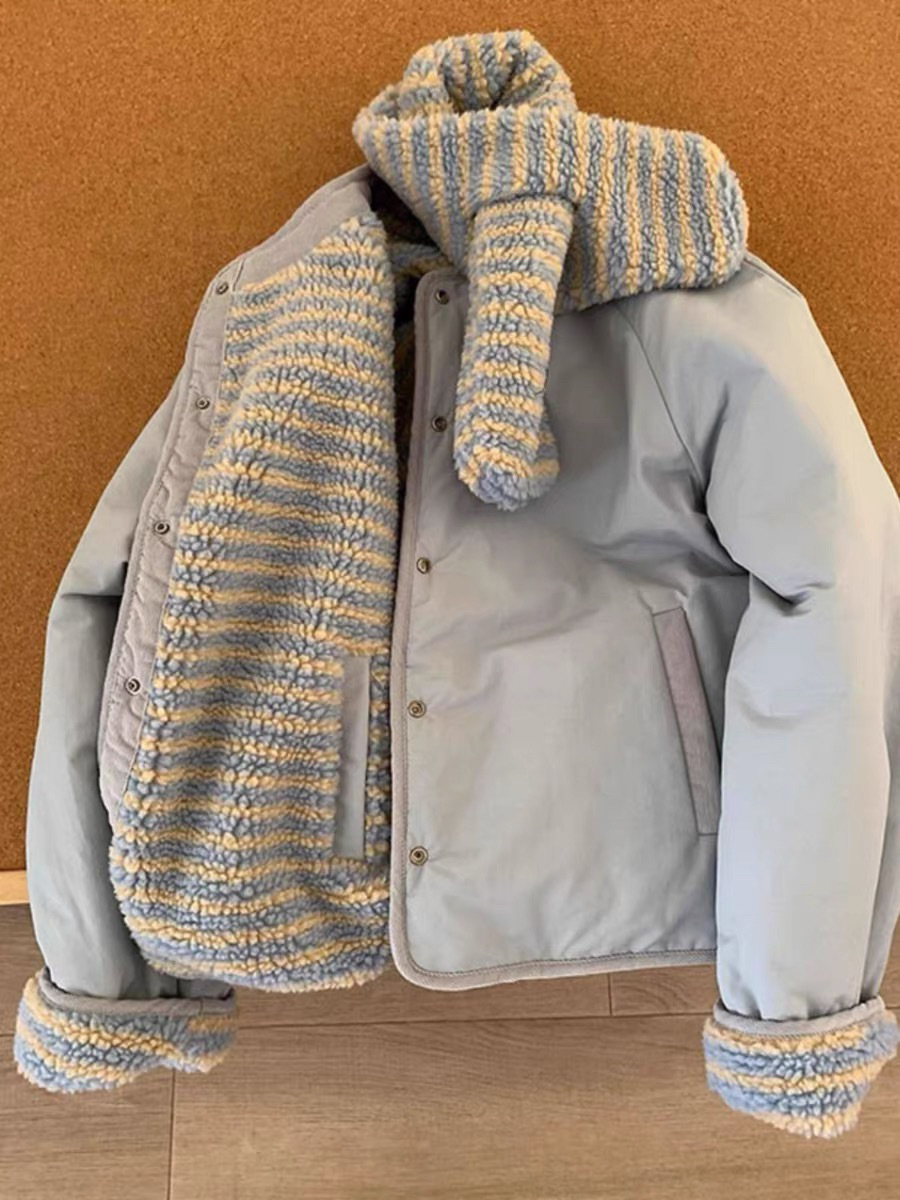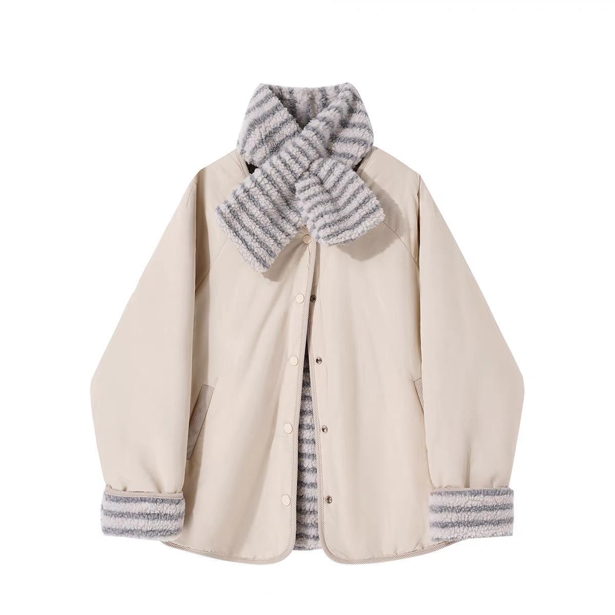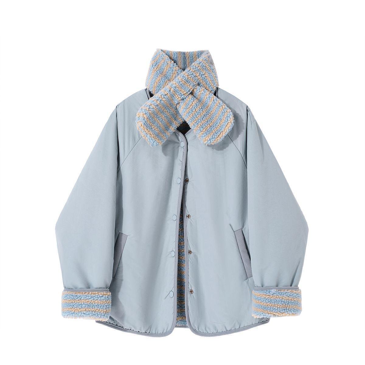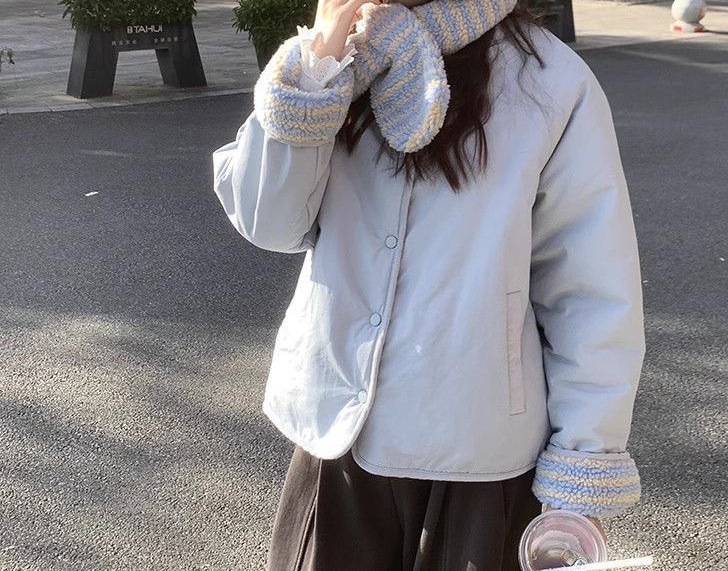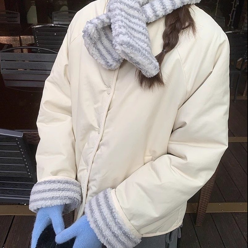 Корейская повседневная хлопчатобумажная одежда с обеих сторон, женский короткий шарф с зимним новым нишевым свободным круглым вырезом Другие