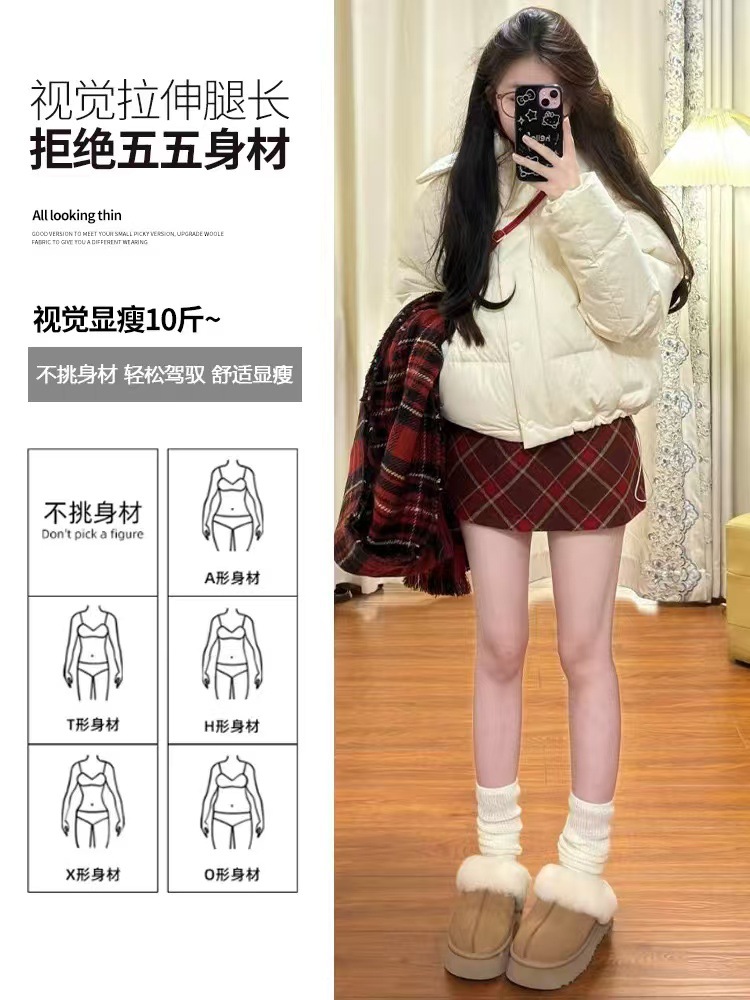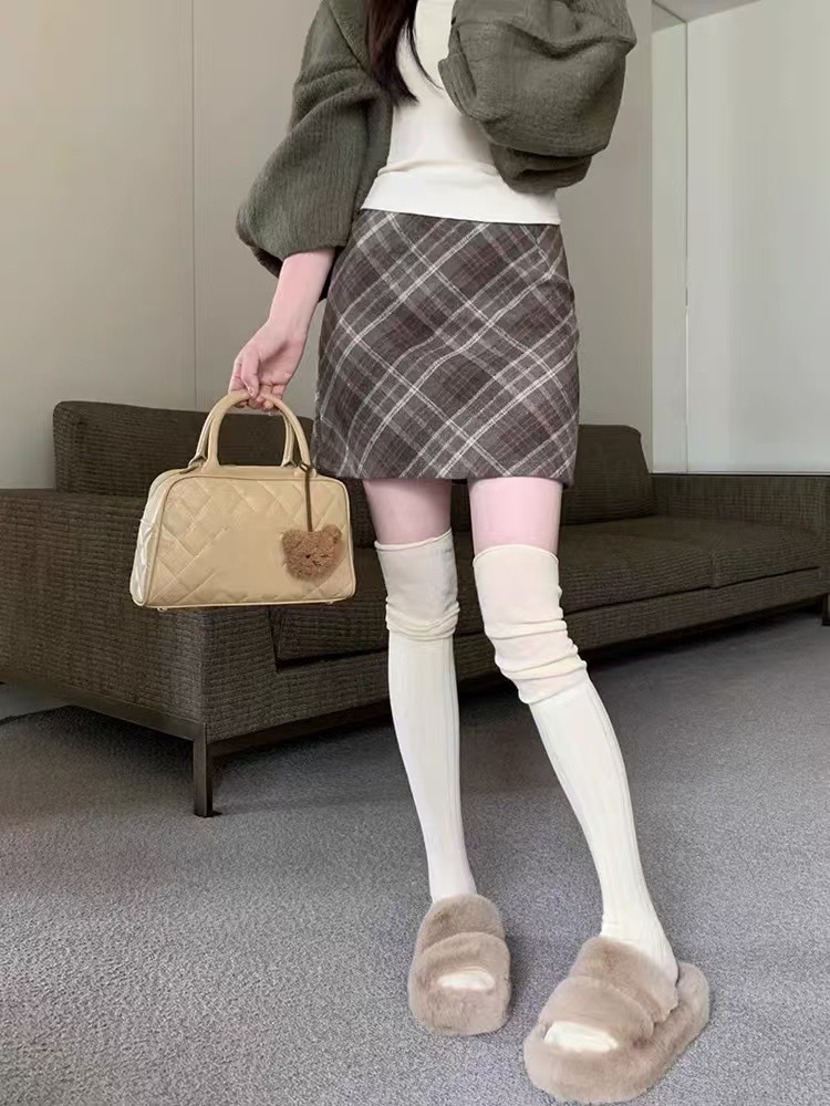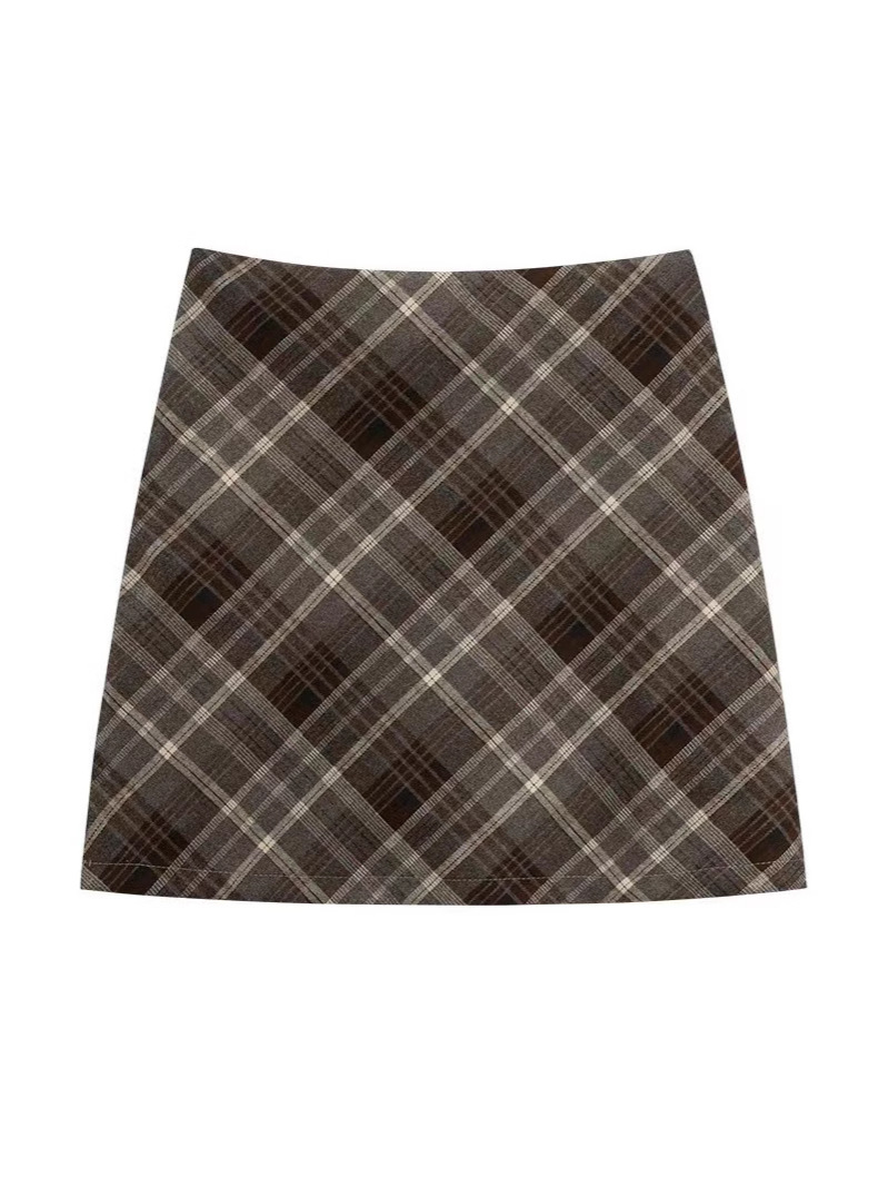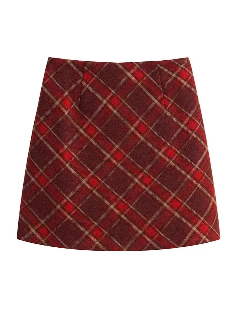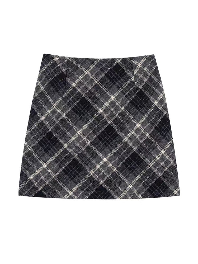 Ретро-юбка из шерстяной ткани в клетку для женщин на осень и зиму 2024 года, короткая юбка облегающая бедра маленького размера, юбка А-силуэта с высокой талией и широким подолом