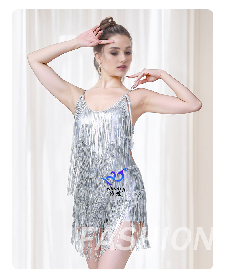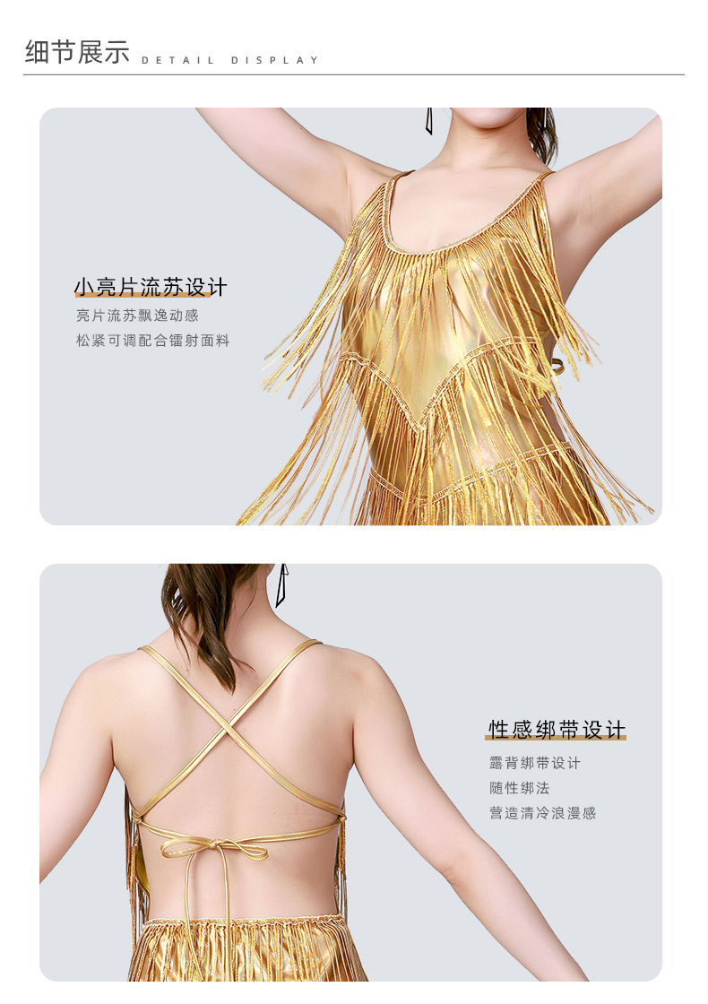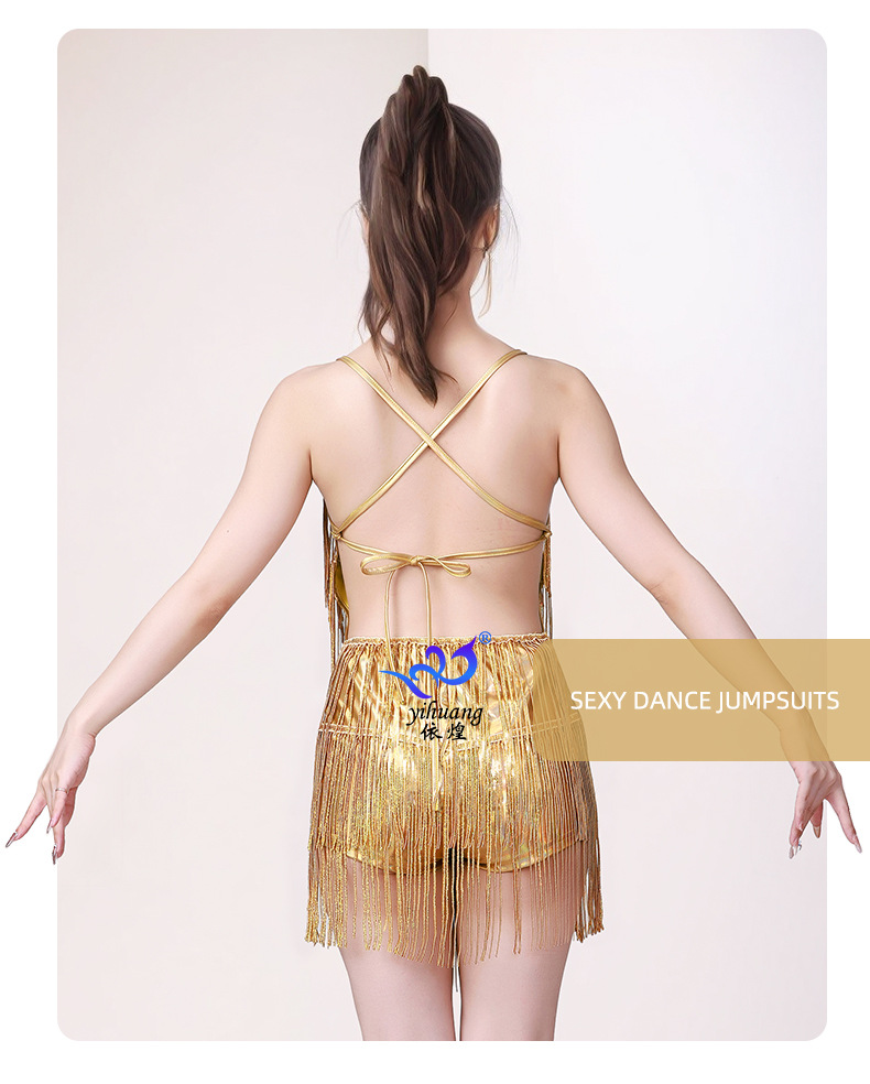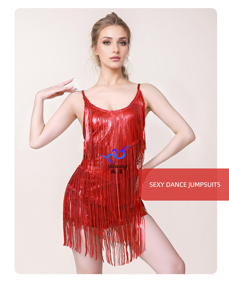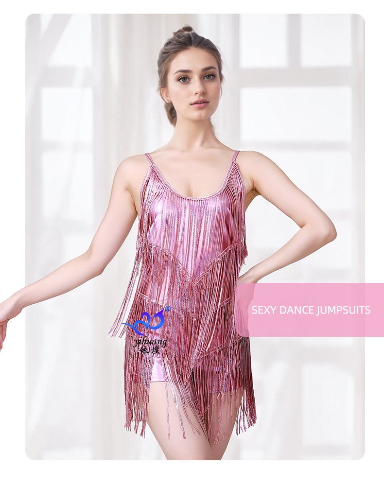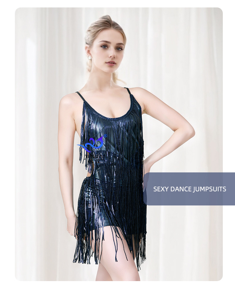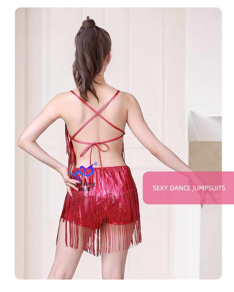 Костюм для латиноамериканских танцев с пайетками и бахромой, комбинезон для выпускного бала, костюм для выступлений из лакированной кожи, сценический костюм для ролевых представлений