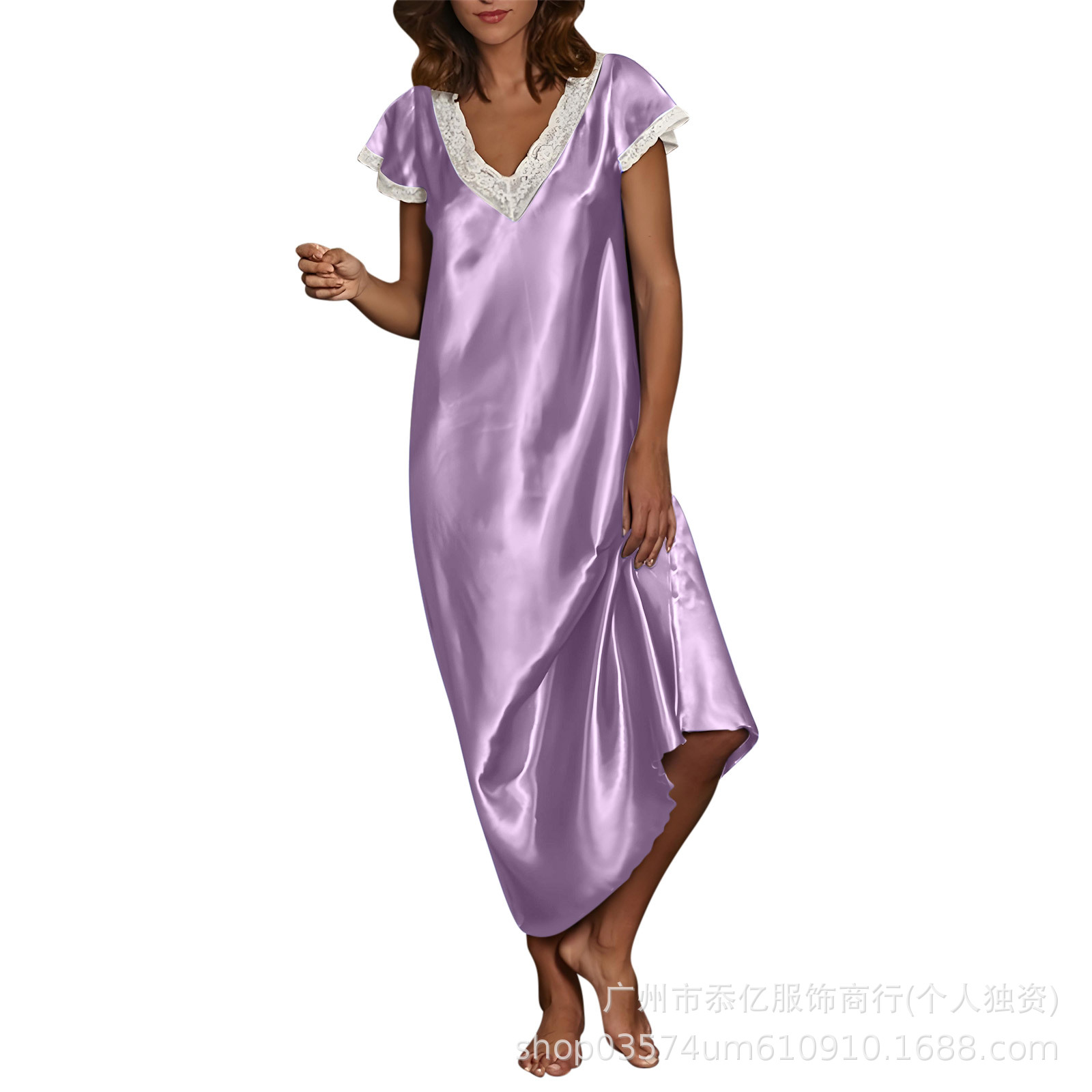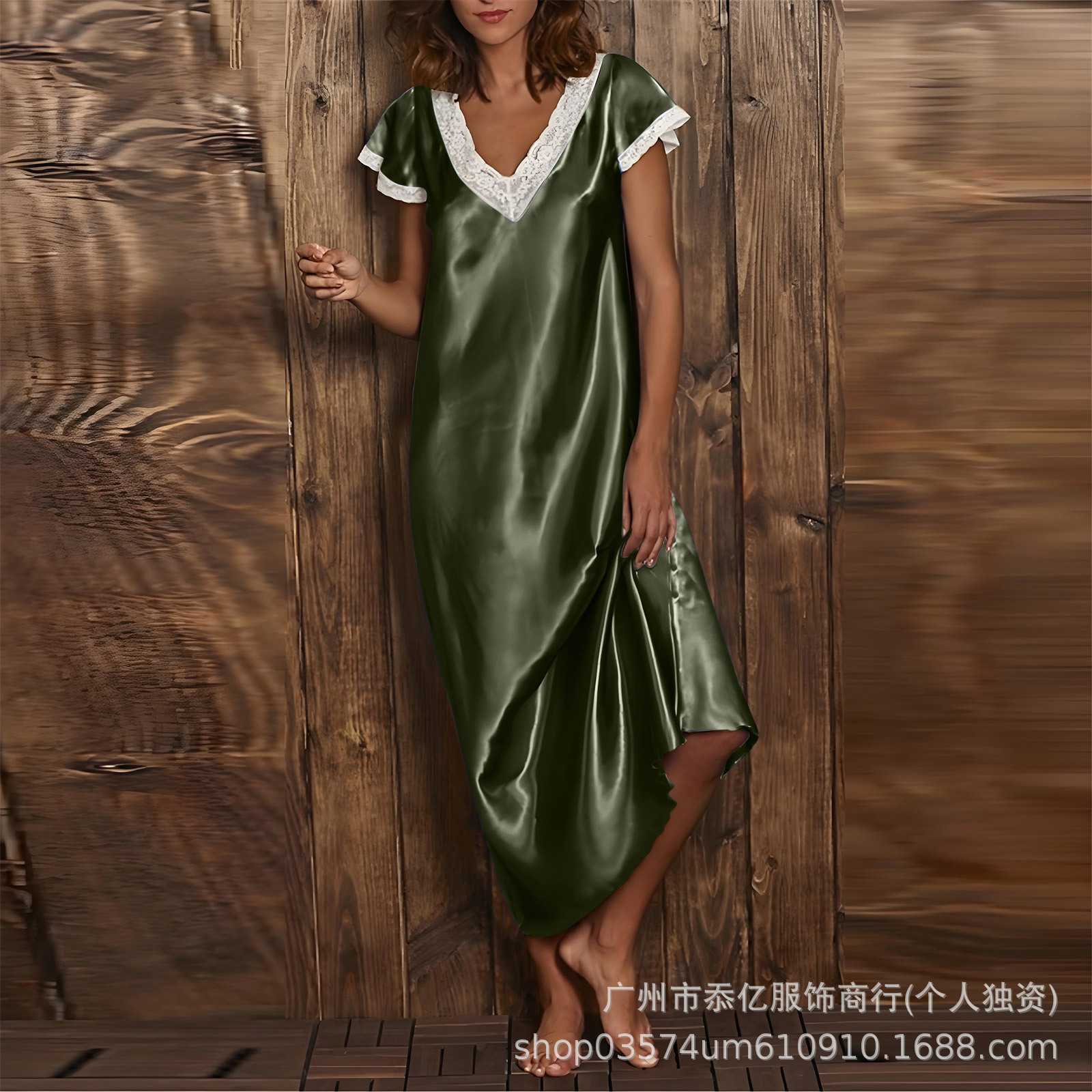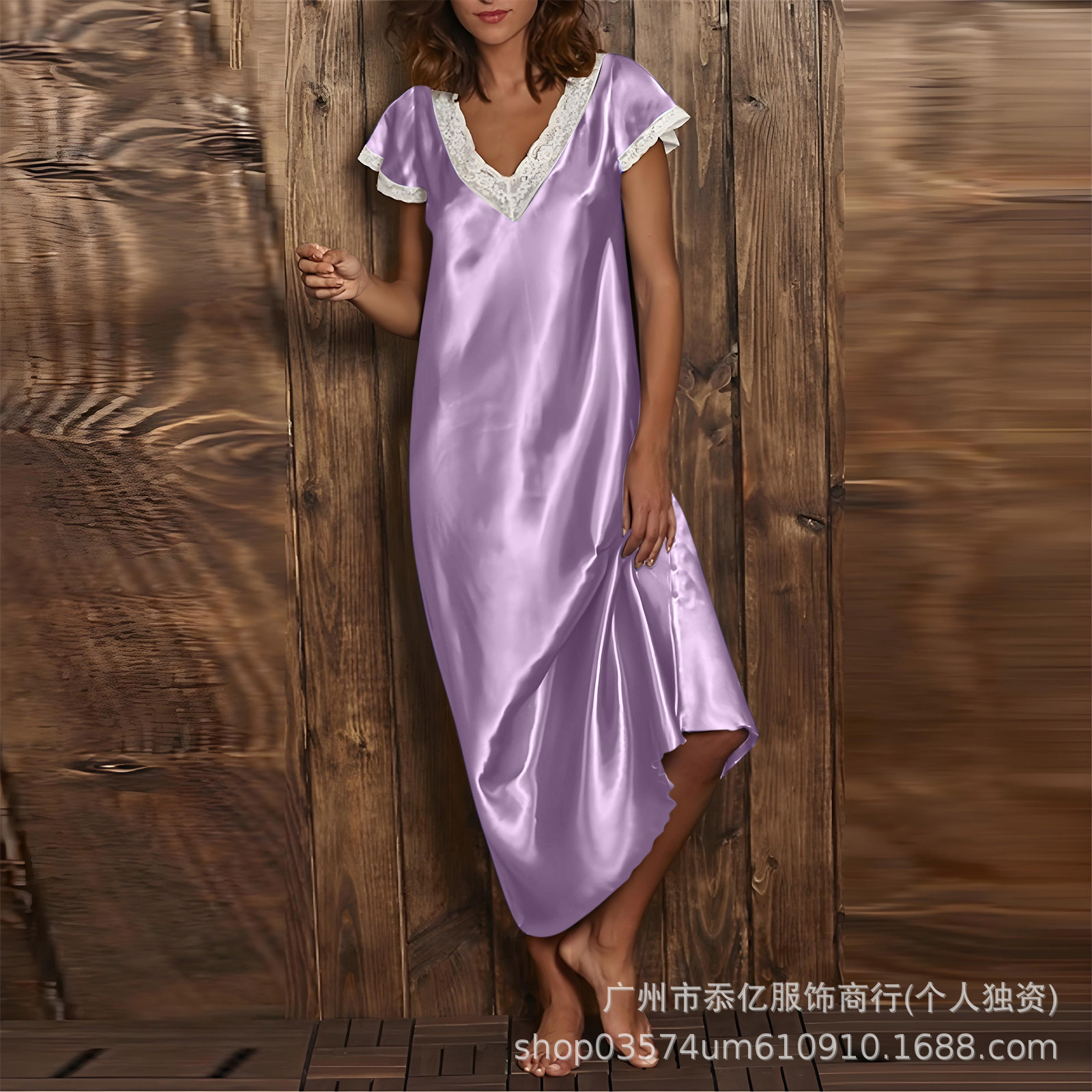 Европейская и американская внешняя торговля 2025 новая летняя домашняя пижама длинная юбка кружево с V-образным вырезом с короткими рукавами