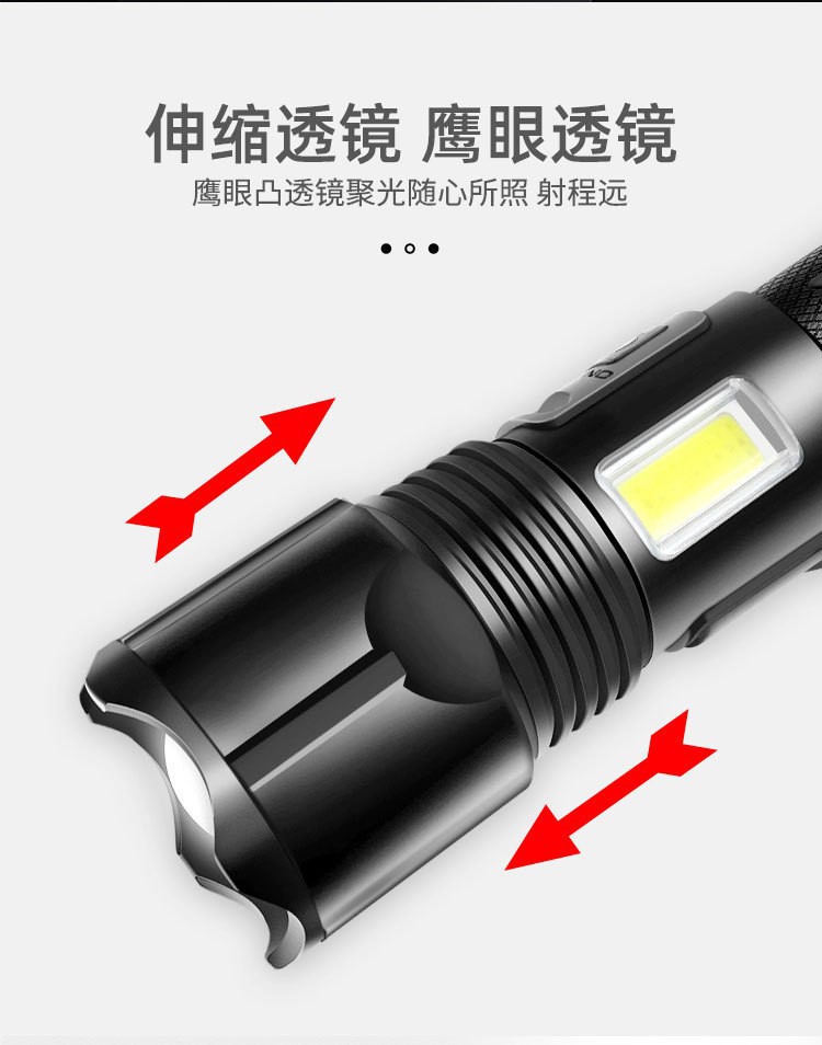 Трансграничный фонарик USB зарядный фонарик портативный наружный яркий фонарик масштабирования аварийного дальнего света фонарик