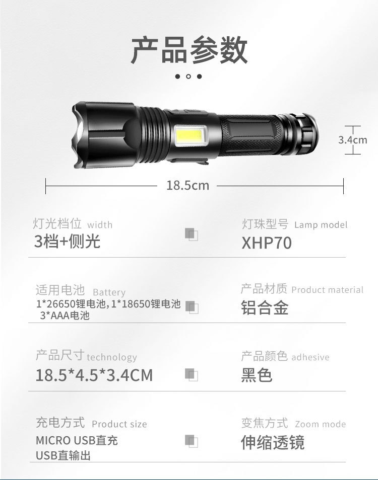 Фонарик + USB-кабель + белая коробка (батарейки в комплект не входят); Фонарик + USB-кабель + белая коробка + литиевая батарея 26650; Фонарик не поставляется с боковым фонарем COB + USB-кабелем + белой коробкой (батарейки в комплект не входят); Фонарик не поставляется с боковым фонарем COB + USB-кабелем + белой коробкой + литиевой батареей 26650.